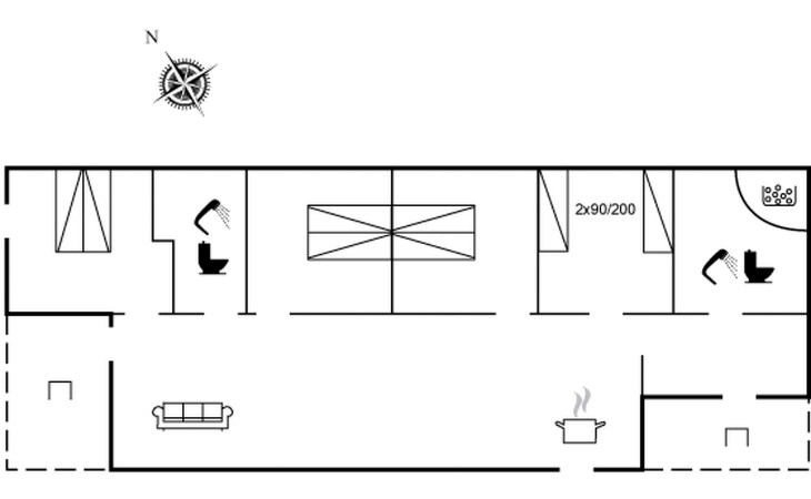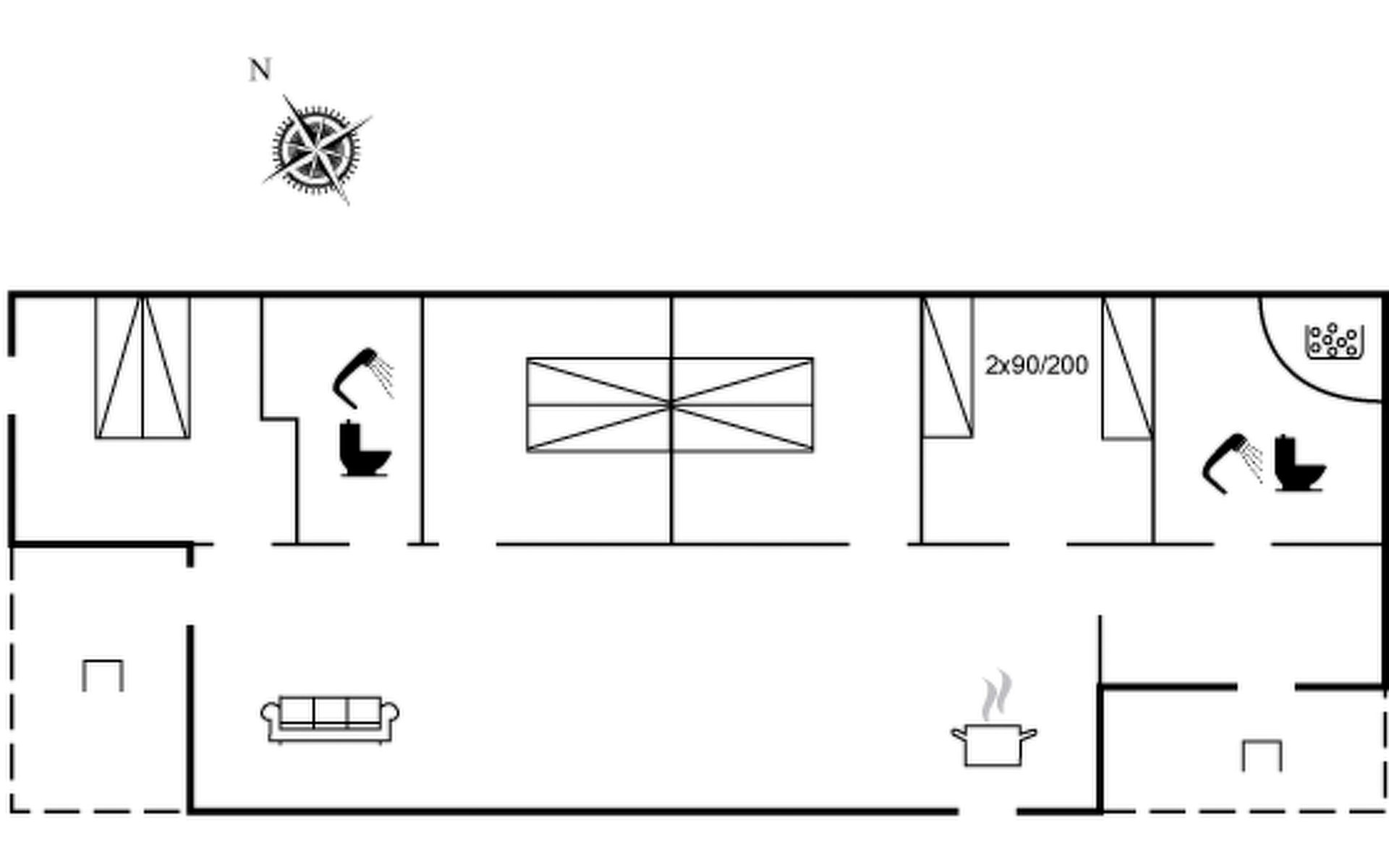 Eengezinswoning, bouwjaar 2021. Voor alleengebruik: wild terrein 1.070 m2. Buitendouche, terras (75 m2), kinderspeelplaats (glijbaan, schommel). In het huis: wasmachine, droger. Parkeerplaats bij het huis. Oplaadstation. Levensmiddelenwinkel 1.5 km. Golfterrein 1.5 km. De eigenaar accepteert geen jeugdgroepen.