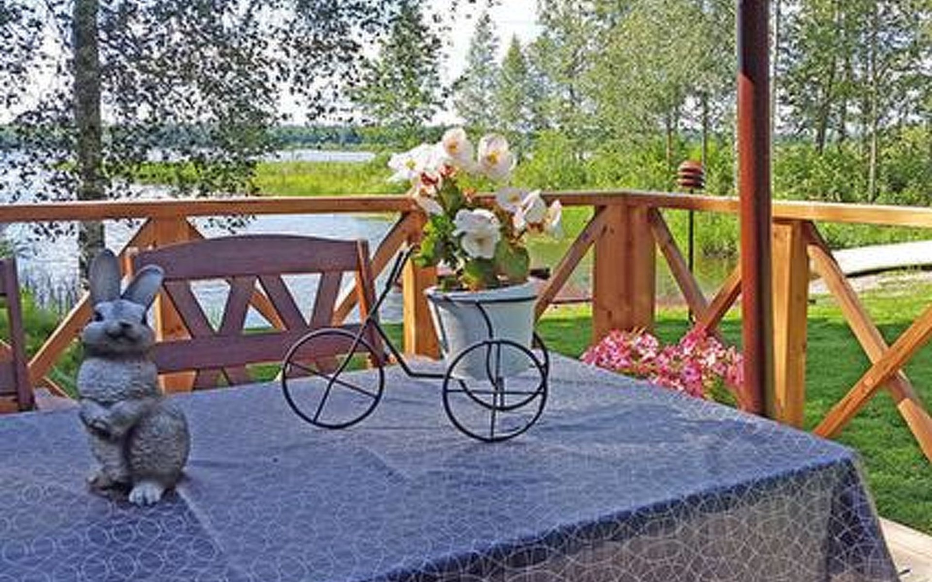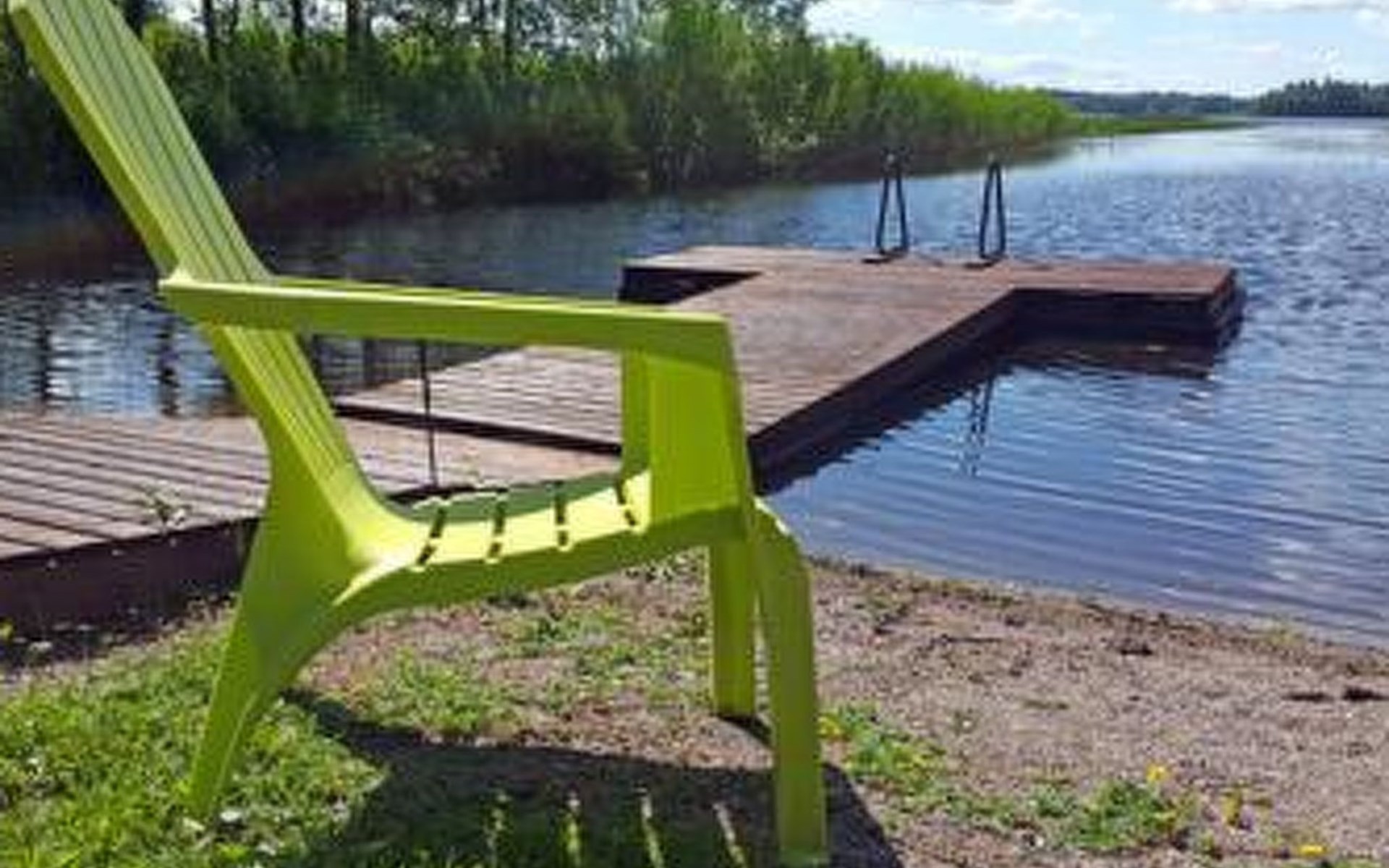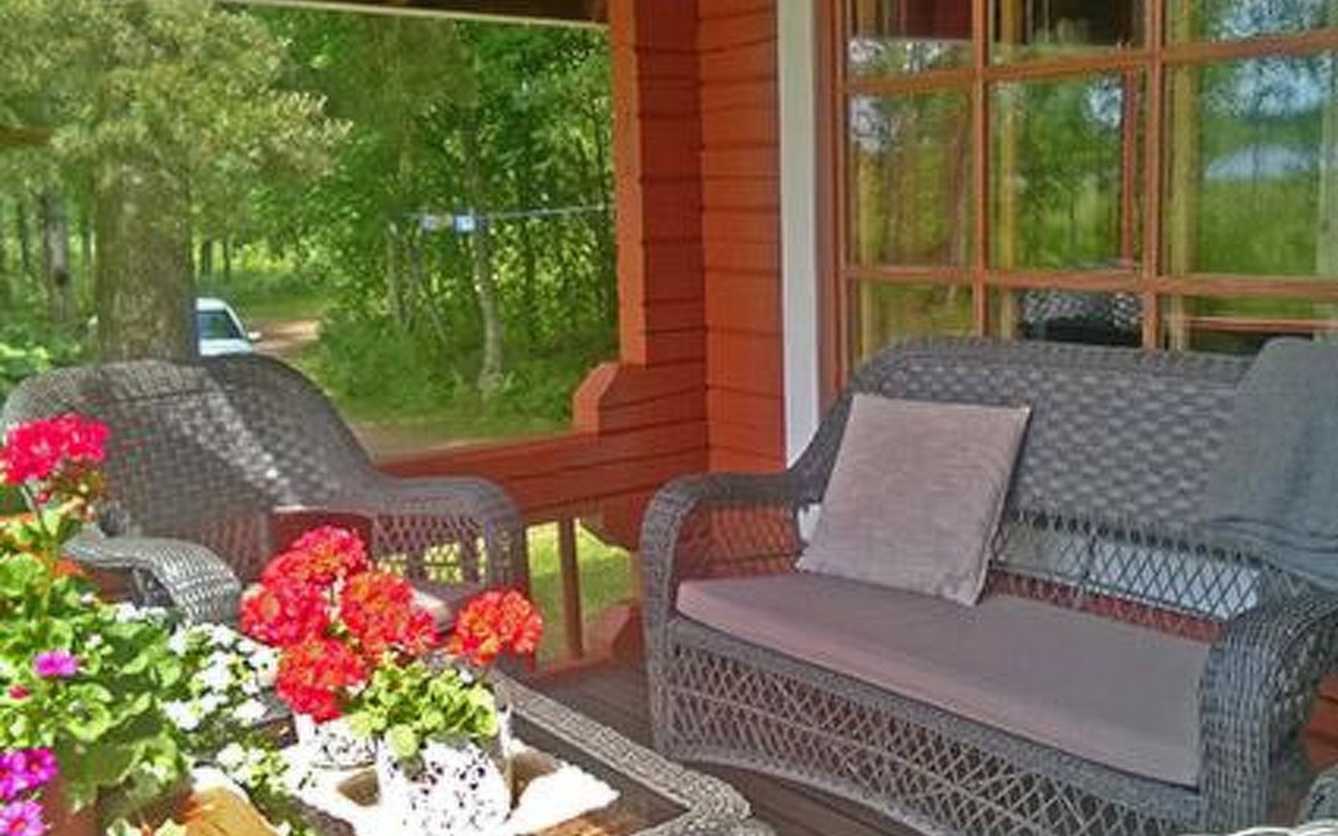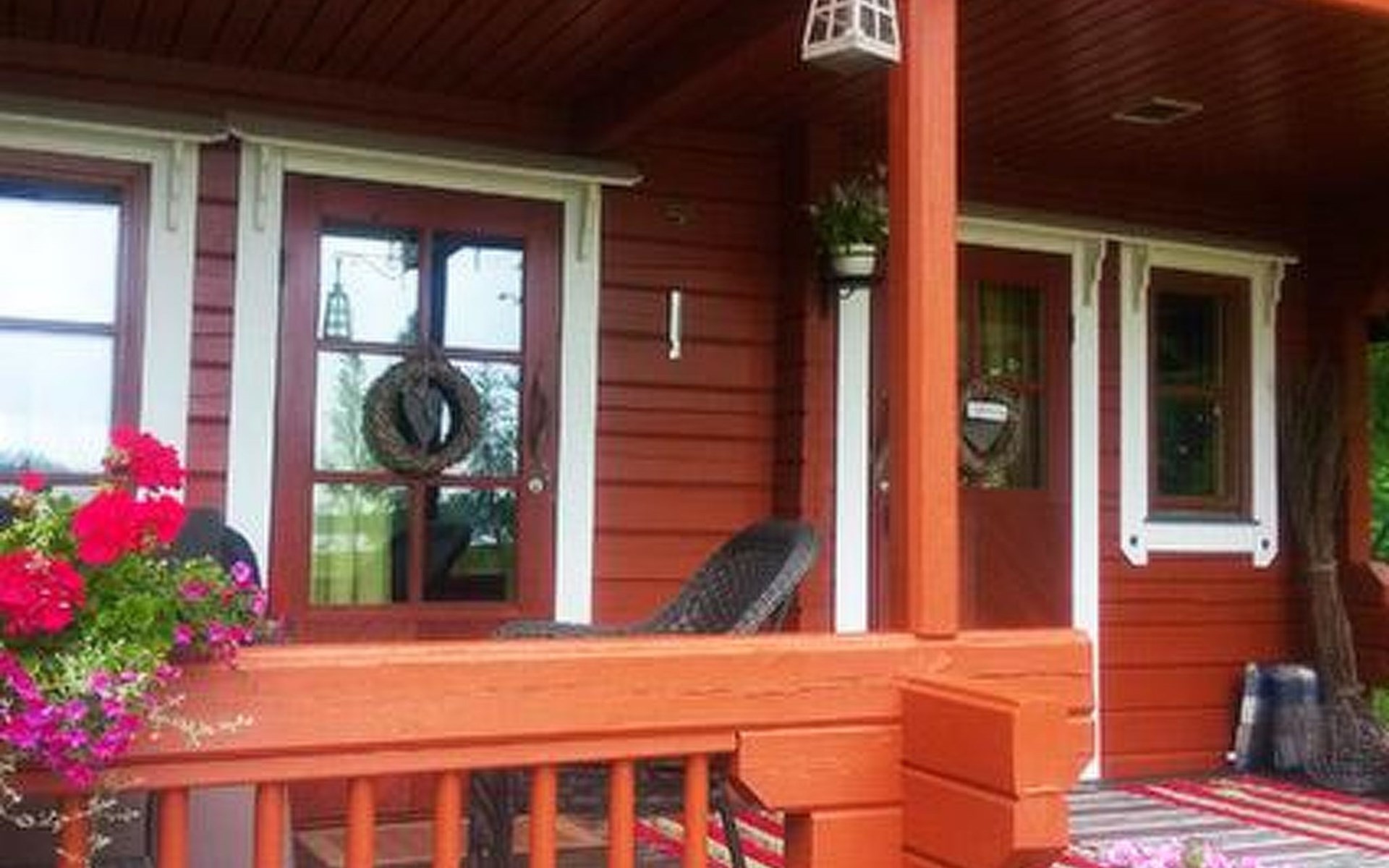 Log cabin 1987, living room/kitchen with convertible sofa, loft with double bed + 3 beds, sauna (shower inside sauna), open veranda. Total area 50 m² of which 15 m² on the loft.