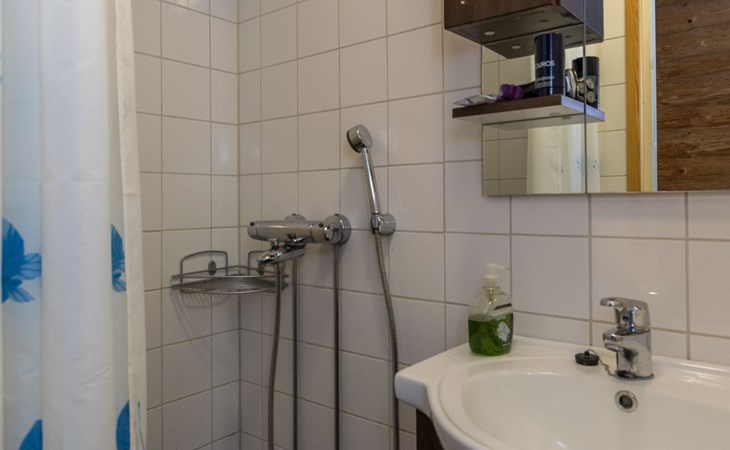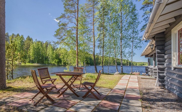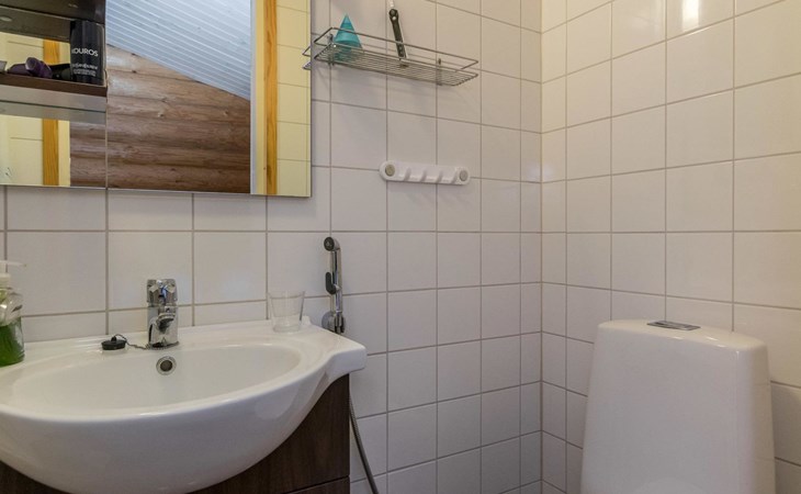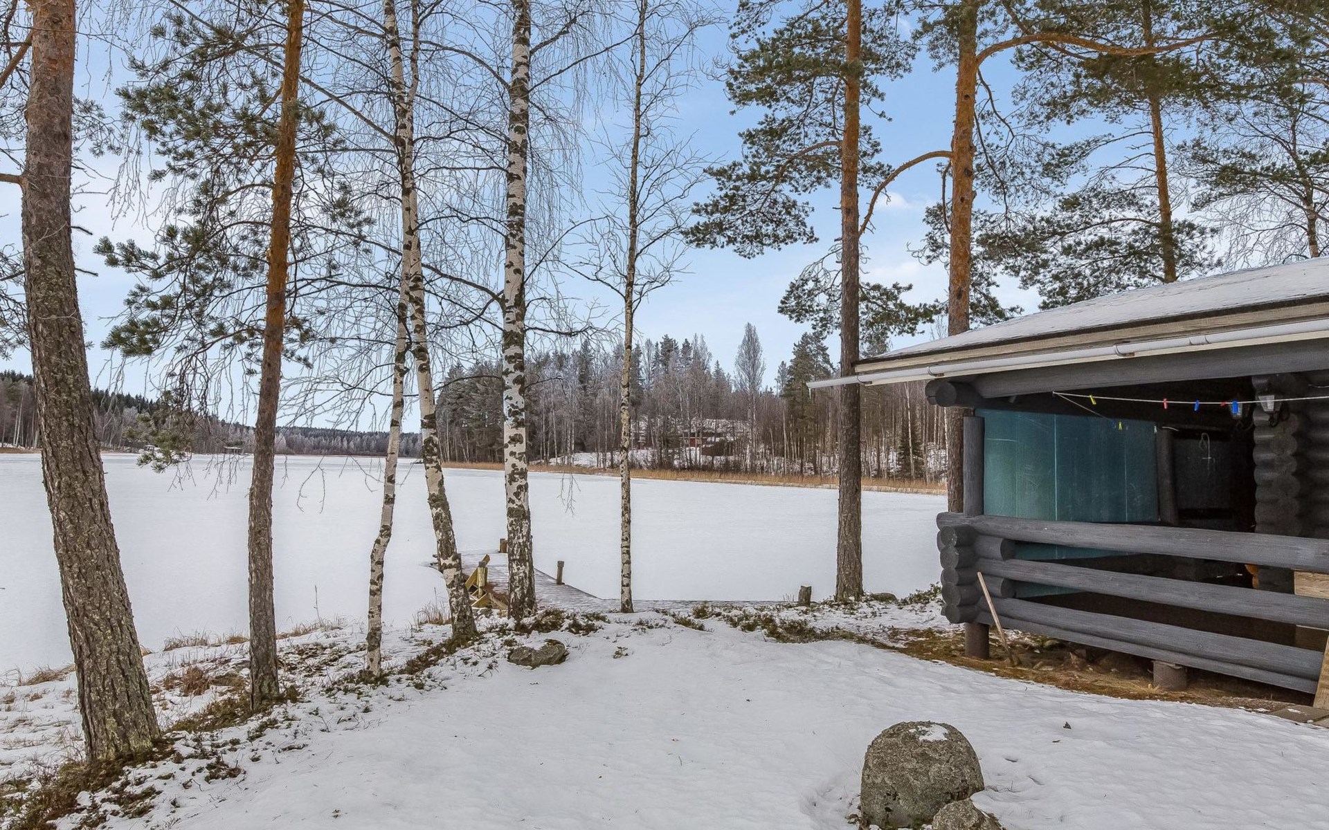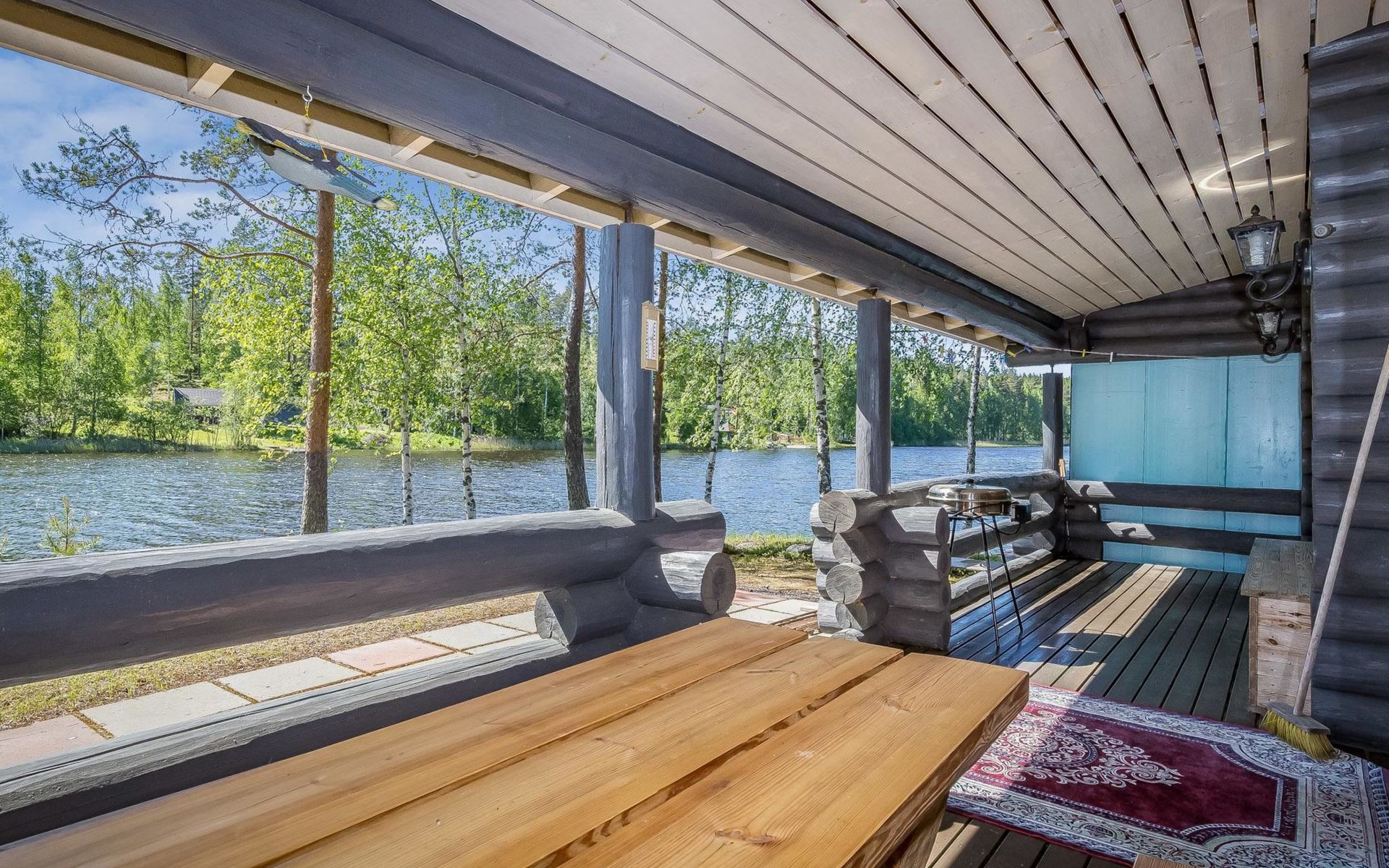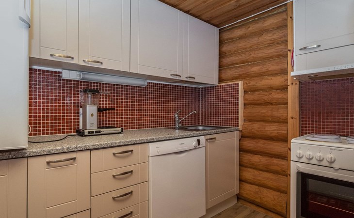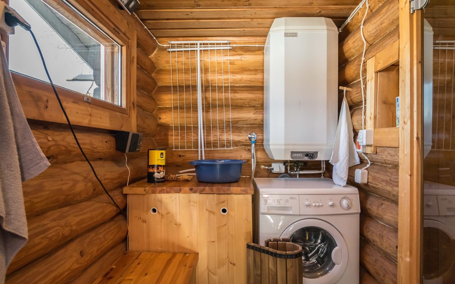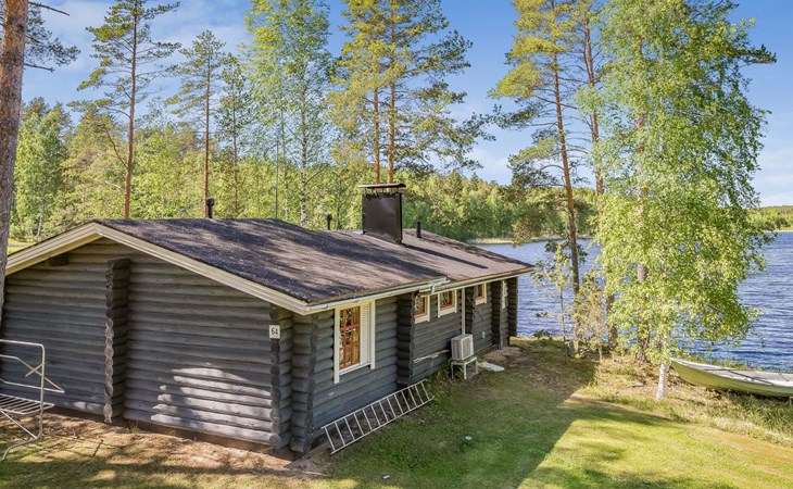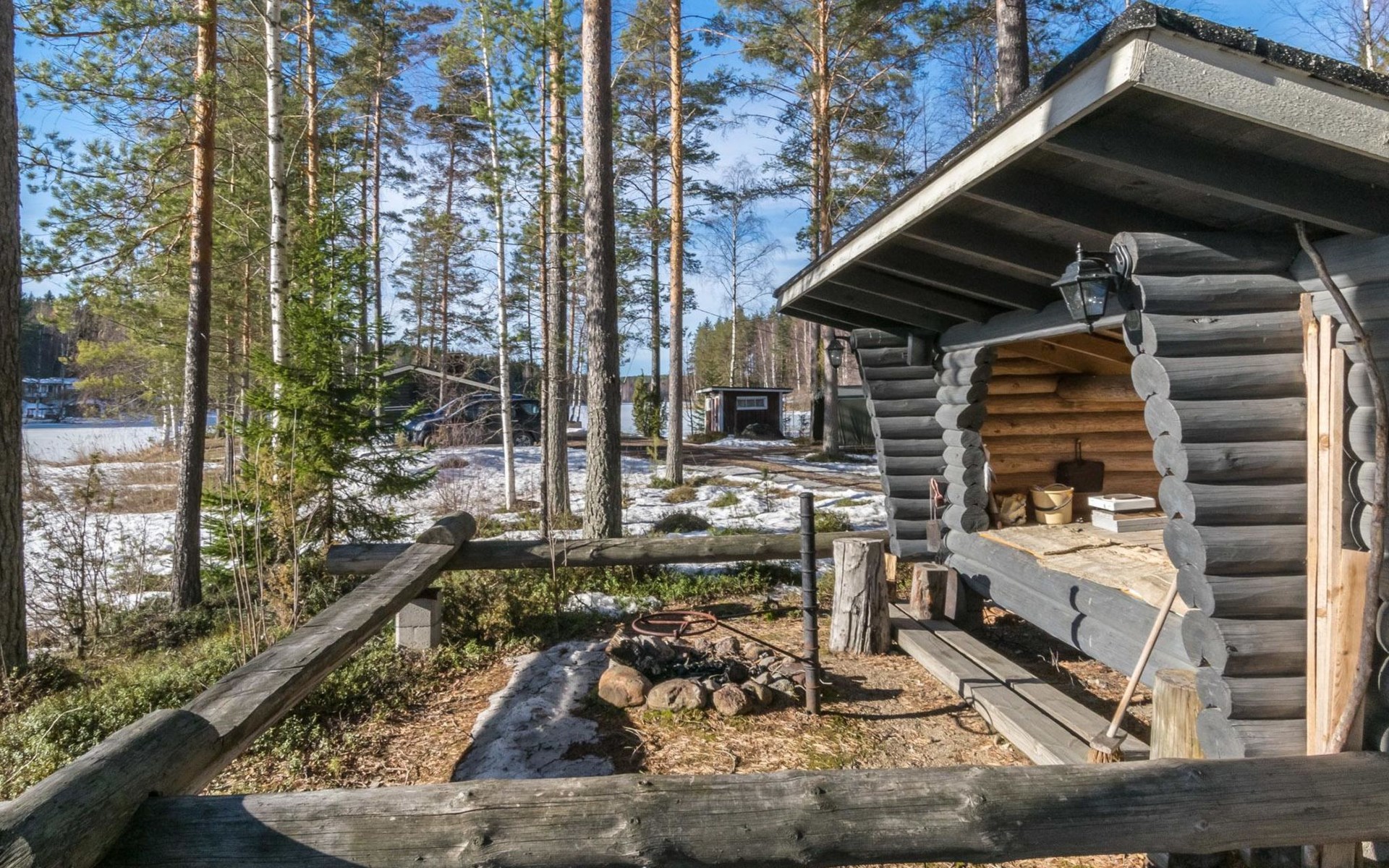 Log cabin 1977, extended 1993, renovated 2013, kitchenette, living room with 130 cm wide spreadable bed (while spread, there is space for two), bedroom (12.5 m²) with double bed, another bedroom (10 m²) with spreadable sofa (while spread, there space for two), washroom with shower and WC, covered terrace. Another entrance to the bedroom and washroom is through the first bedroom.