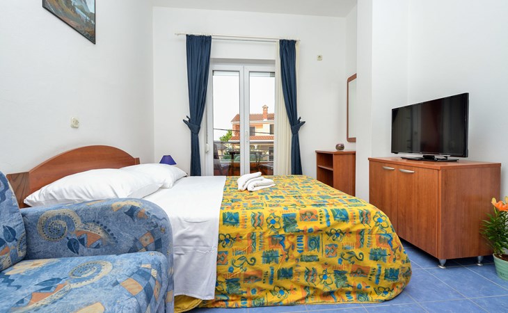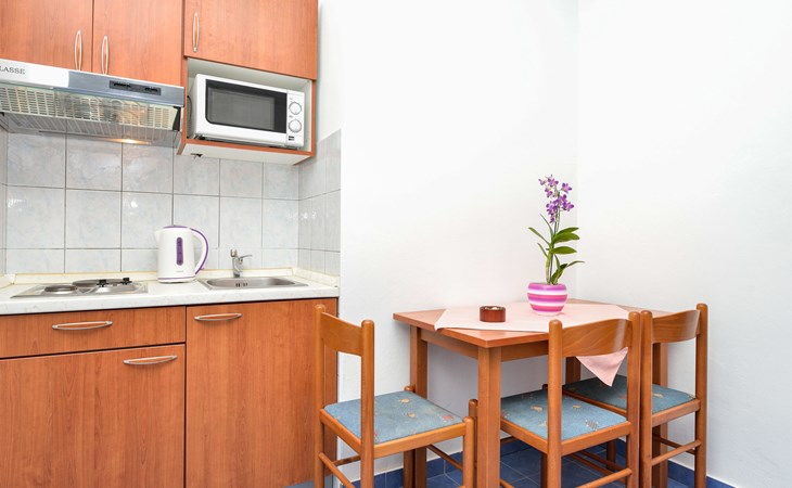 Flatgebouw "Bonex". In de plaats, zonnige ligging, 85 m van zee, 85 m van het strand. Voor medegebruik: terrein 1.000 m2 (omheind) met gazon en planten, openluchtzwembad (10 x 5 m, 150 cm diepte, seizoensgebonden beschikbaarheid: 01.Apr. - 28.Okt.) met trap. Buitendouche, prieel, tuinmeubelen, barbecue (glijbaan, schommel). In het huis: receptie, internetaansluiting, trampoline. Parkeerplaats bij het huis op het terrein. Winkel 50 m, restaurant 600 m, bushalte 4.2 km, zandstrand, kiezelstrand 85 m. Tennis 10 km. Vergelijkbare accommodaties kunnen worden geboekt.