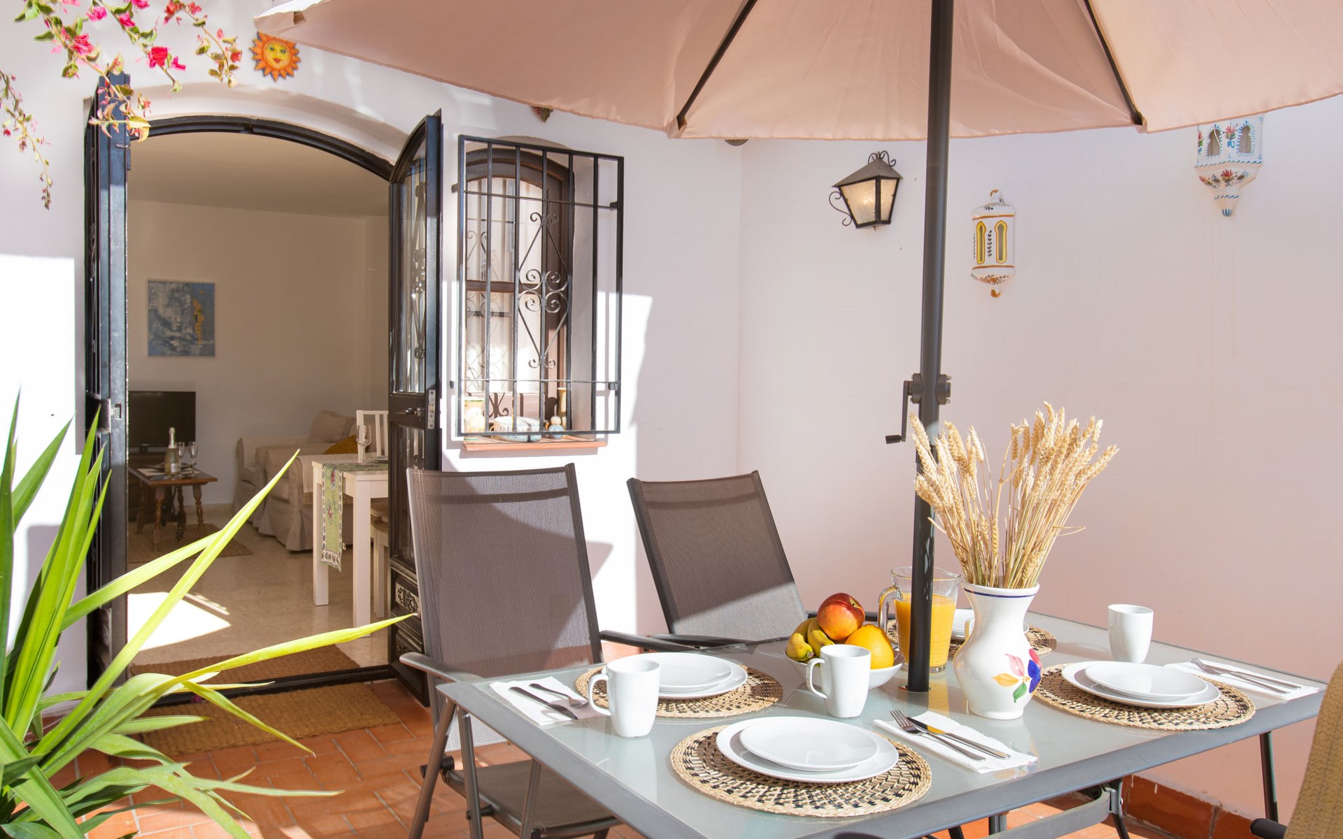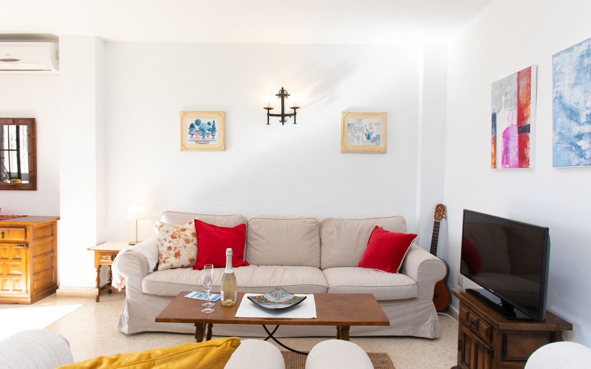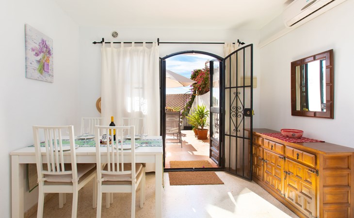 Nerja: Mooi, comfortabel flatgebouw "Casita Feliz". Aan de rand van de plaats, 2.5 km van het centrum van Nerja, 2.5 km van zee, 2.5 km van het strand. Voor medegebruik: ligweide, openluchtzwembad (15 x 8 m, 100 - 175 cm diepte, seizoensgebonden beschikbaarheid: 01.Apr. - 09.Nov.). Douche/WC bij het zwembad. Voor alleengebruik: kleine, mooie, verzorgde tuin. In het huis: air-conditioning. Winkel 500 m, levensmiddelenwinkel 500 m, supermarkt, winkelcentrum 24 km, restaurant 100 m, bar 100 m, bakkerij 500 m, café, voetgangersgebied 2 km, fietsverhuur 1 km, biertuin 100 m, bushalte 50 m, station "Málaga" 50 km, veerboot "Málaga" 50 km, zandstrand "Burriana" 2 km, duikschool 2 km, openluchtzwembad, thermaalbad 1 km. Jachthaven 20 km, jachthaven 20 km, golfterrein (18 holes) 24 km, surfschool 20 km, zeilschool 20 km, tennis 500 m, wandelroutes 100 m vanaf het huis. Attracties in de buurt: Frigiliana, La Herradura, Maro, Almuñecar, Granada. Bekende skigebieden kunnen gemakkelijk worden bereikt: Sierra Nevada. Wandelgebied Sierra Almijara, Sierra Tejeda. Baby uitrusting (incl.). De eigenaar accepteert geen jeugdgroepen. Laden en lossen van de baggage is mogelijk bij het huis.