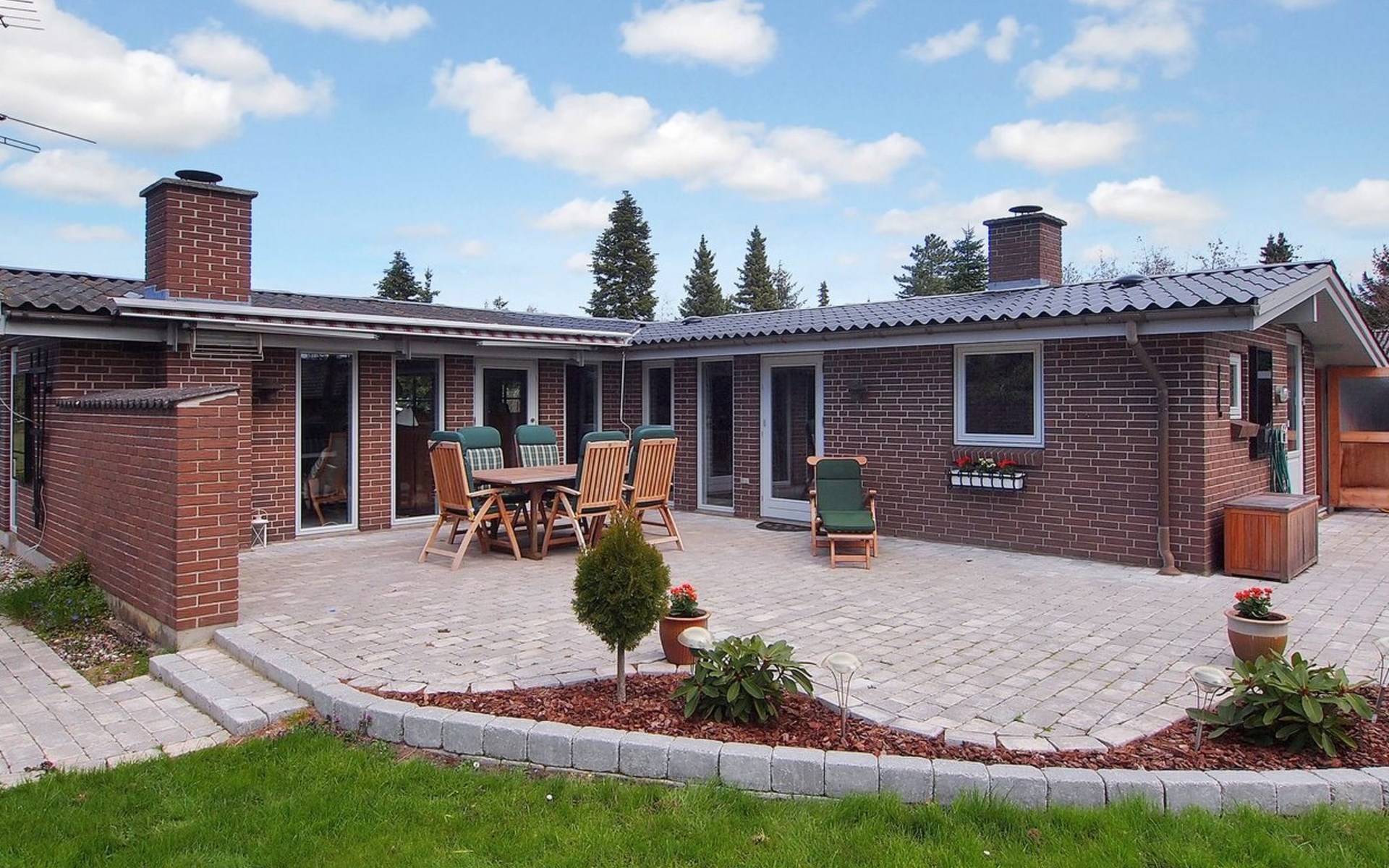 Eengezinswoning, bouwjaar 1986. 800 m van zee. Voor alleengebruik: terrein 1.000 m2, verzorgde tuin. Terras (30 m2), kinderspeelplaats (schommel), parkeerplaats bij het huis. Levensmiddelenwinkel 1.6 km. De eigenaar accepteert geen jeugdgroepen.