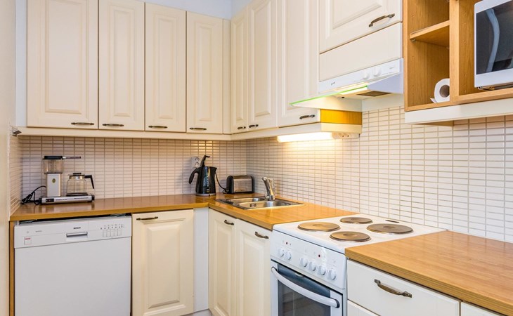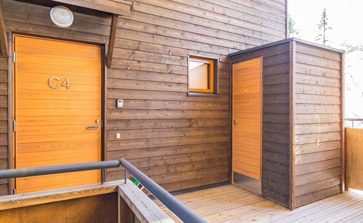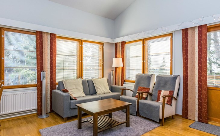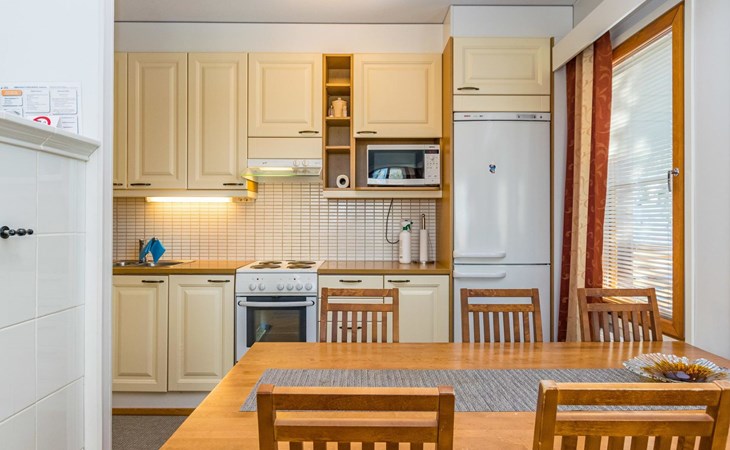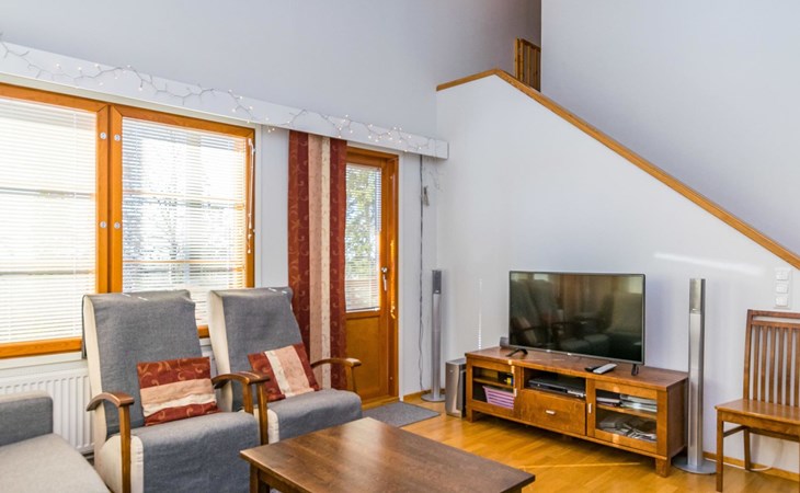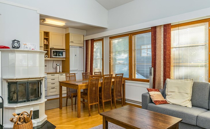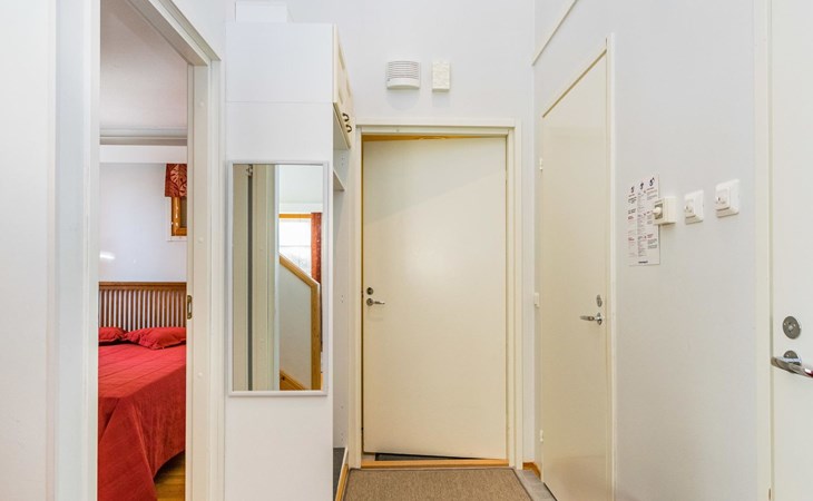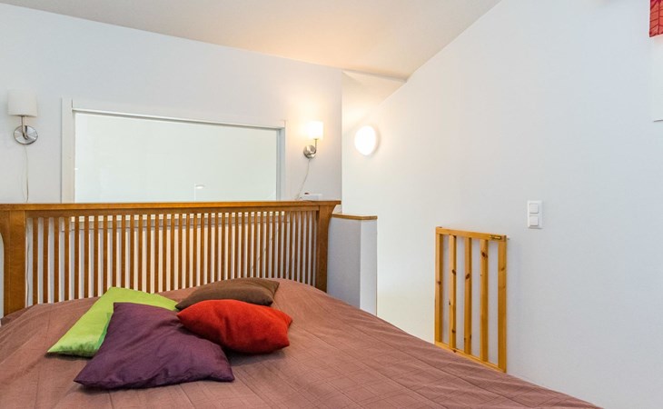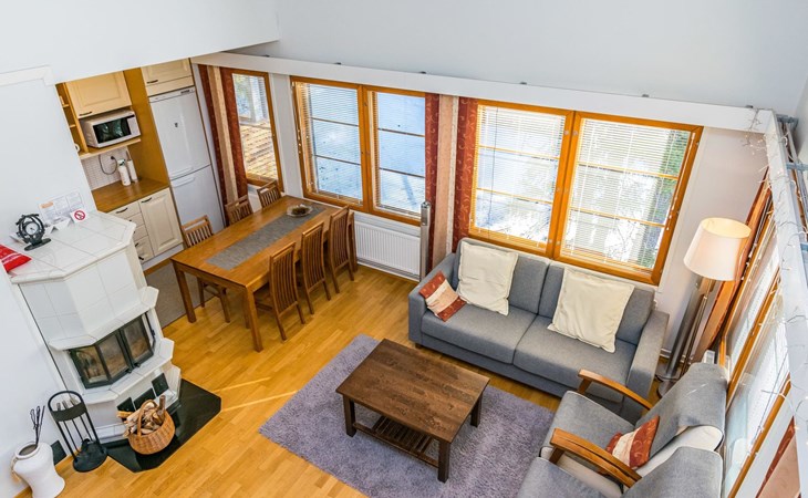 Holiday apartment, built in 2006, bedroom: double bed, loft: double bed, combined kitchen/living room, electric sauna. Downstairs 48 m² and upstairs 10 m². Construction will be taking place in the area in 2025-26, which may cause occasional noise disturbance.