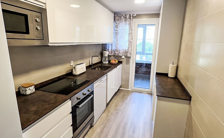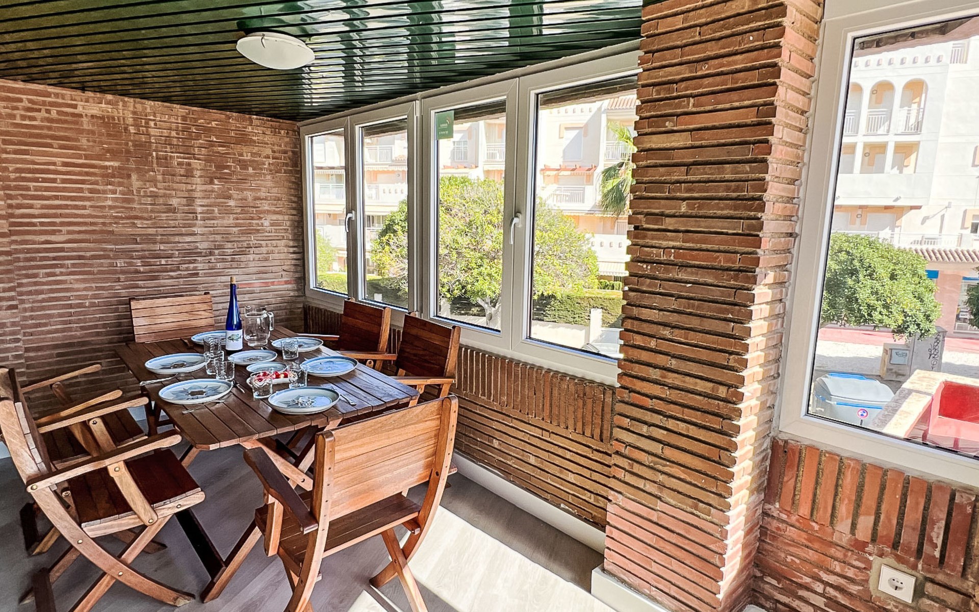 Gezellig, comfortabel flatgebouw "Las Pergolas", gerenoveerd in 2025. In het centrum van El Arenal - Jávea, centrale, drukke ligging, 70 m van zee, 70 m van het strand, de straat oversteken. Parkeerplaats op het terrein. Winkel 30 m, supermarkt 100 m, restaurant, bar, café 50 m, voetgangersgebied 100 m, bushalte 200 m, zandstrand "Arenal" 100 m. Surfschool, zeilschool 100 m, tennis 500 m. Geen lift.