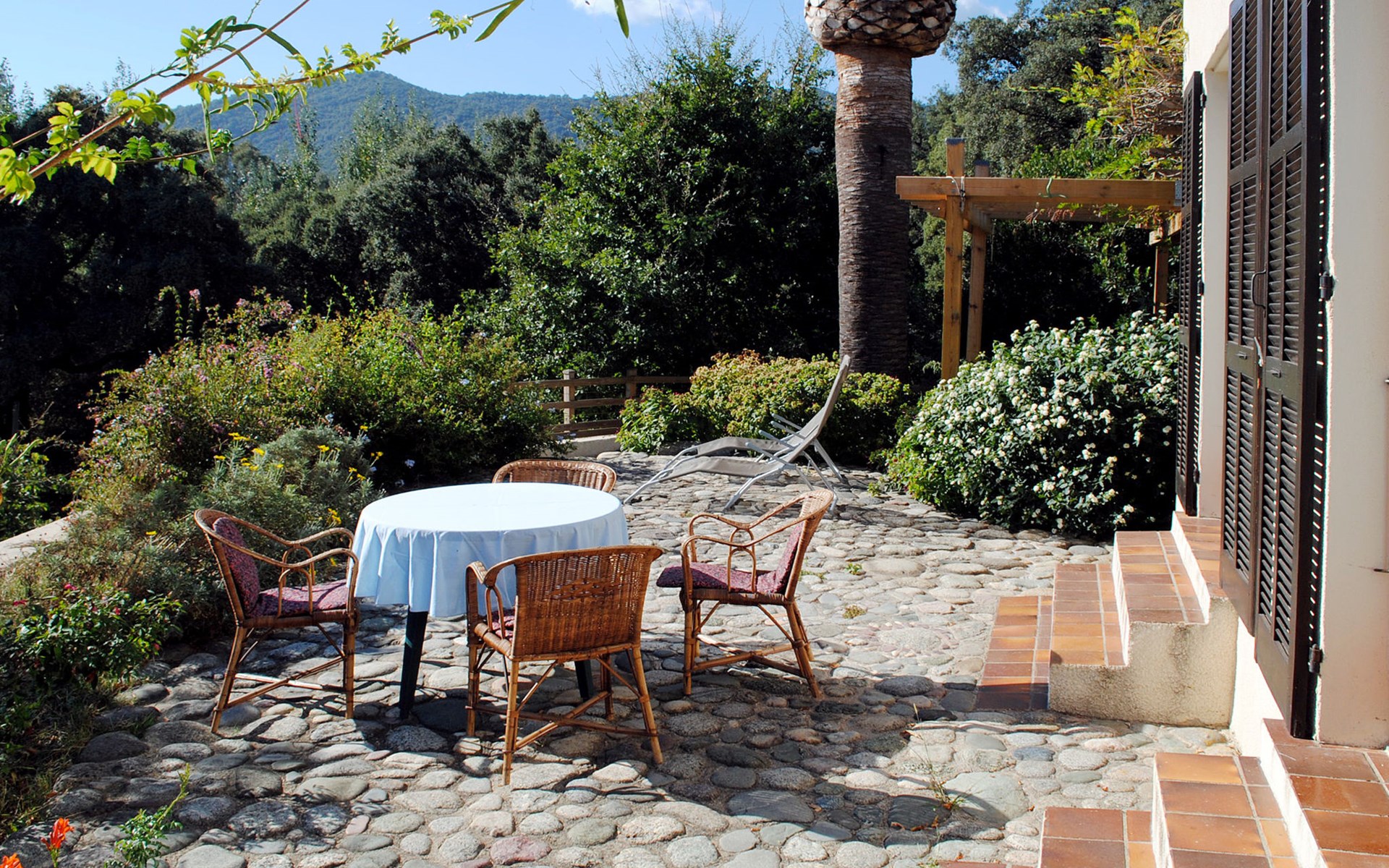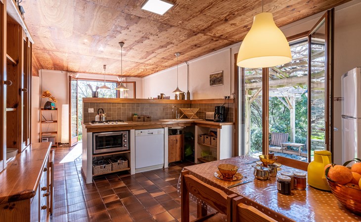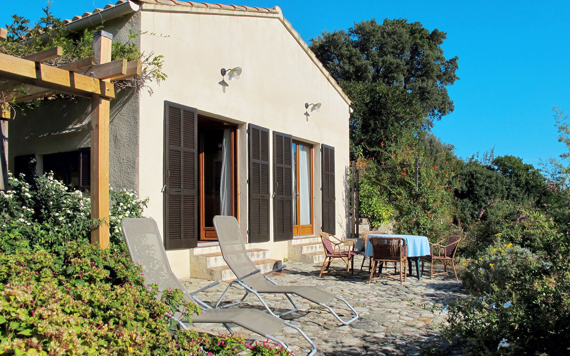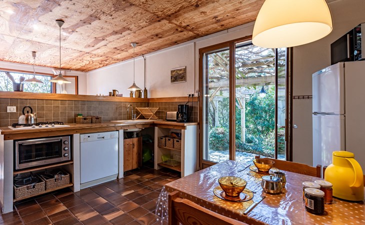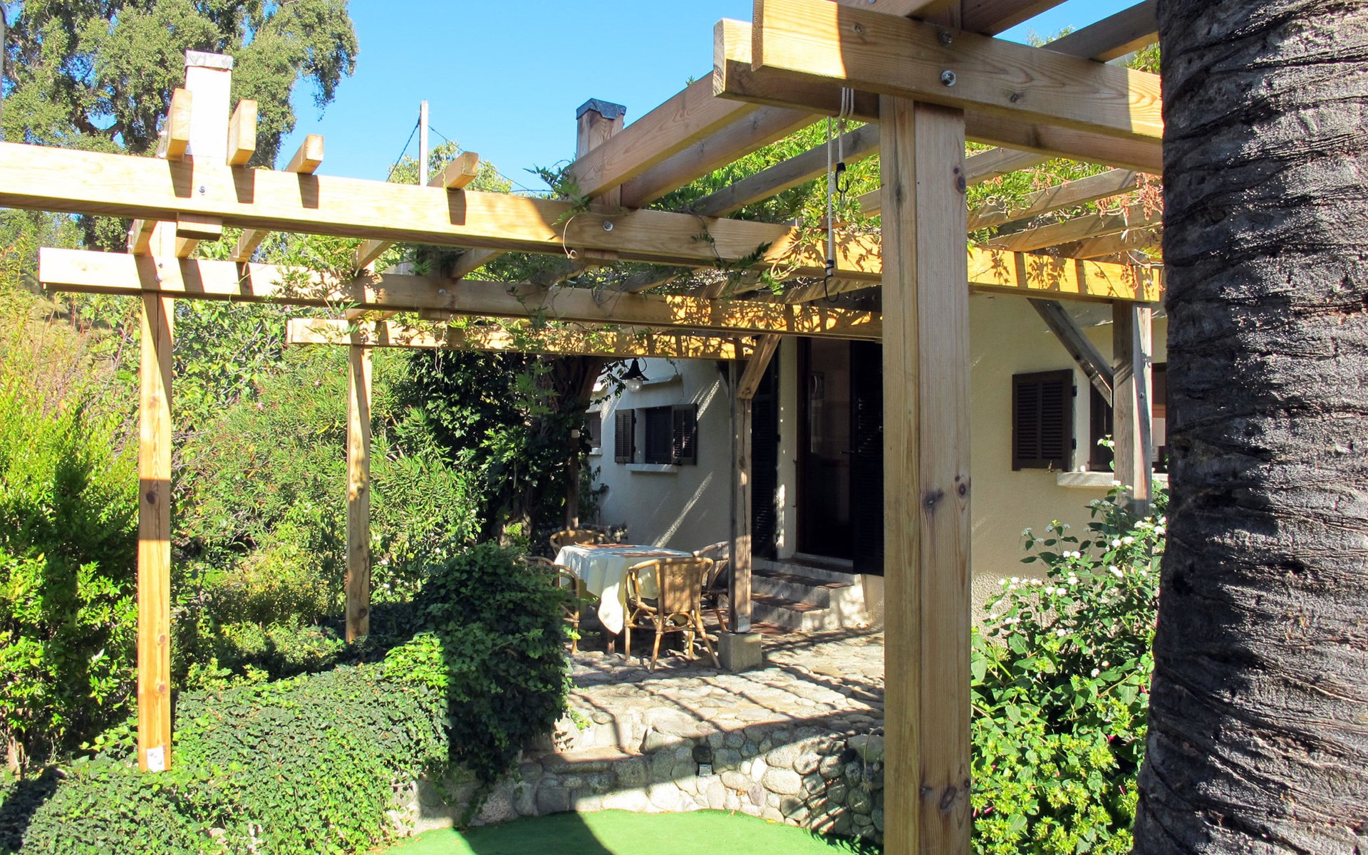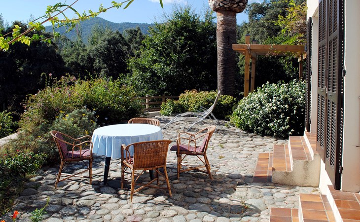 Abbazia 6 km van Ghisonaccia: Gezellige eengezinswoning "Svyntha", omgeven door bomen en velden. In het gehucht Abbazia (500 m), 6 km van het centrum van Ghisonaccia, 70 km van het centrum van Porto Vecchio, buiten de plaats, 100 km van het centrum van Bastia, op een heuvel, 7 km van zee, 4 km van de rivier, te midden van groen. Voor alleengebruik: tuin op verschillende niveaus, 2.000 m2 met planten en bomen, wilde tuin, parkeerplaats op het terrein. Supermarkt 1 km, bushalte 6 km, zandstrand "Plage de Quercioni, Calzarello" 7 km. Attracties in de buurt: Abatescu River (bathing possibility) 4 km. Auto noodzakelijk. De discrete eigenares verzorgt de bijenkorven op het grondstuk (ca. 200 m. van het huis).