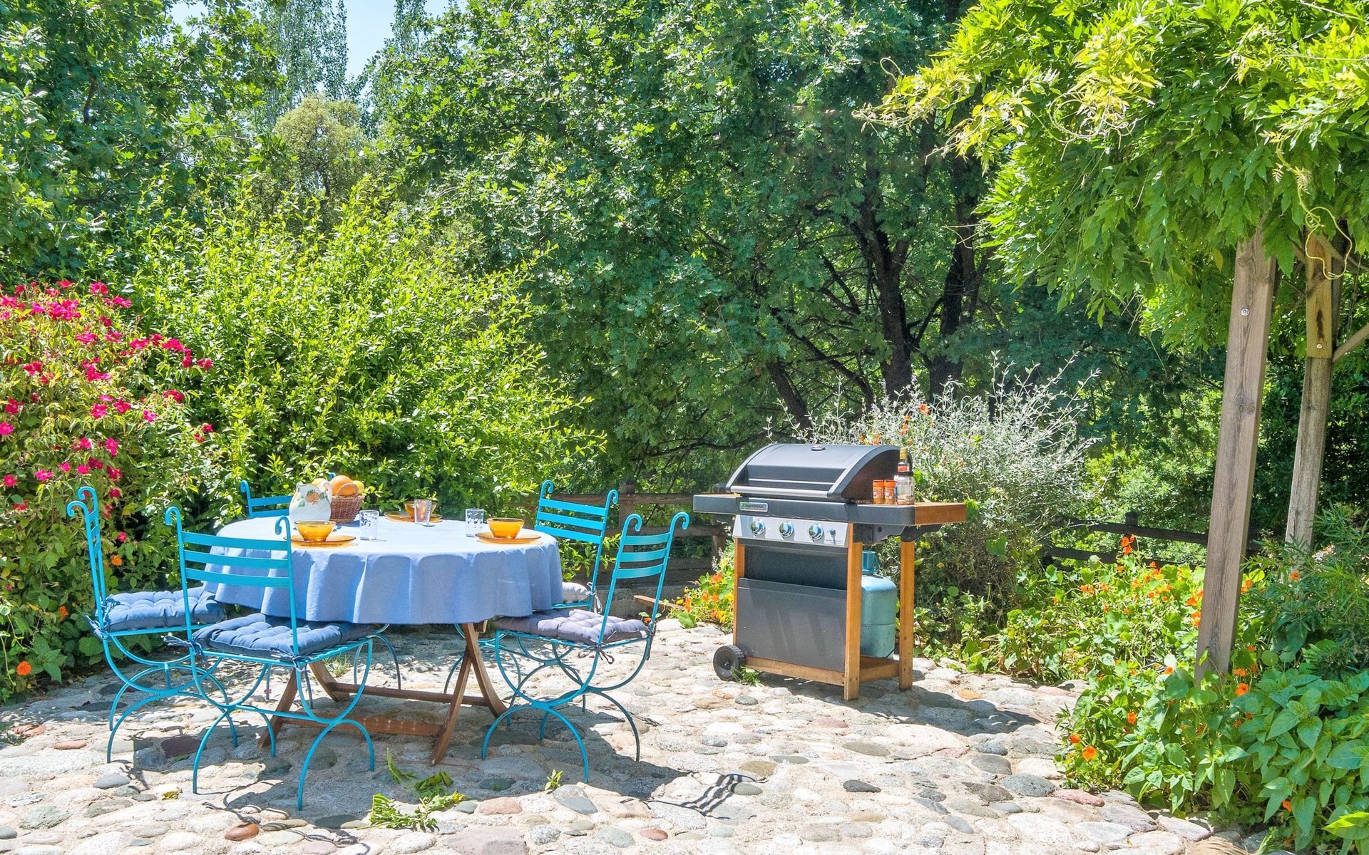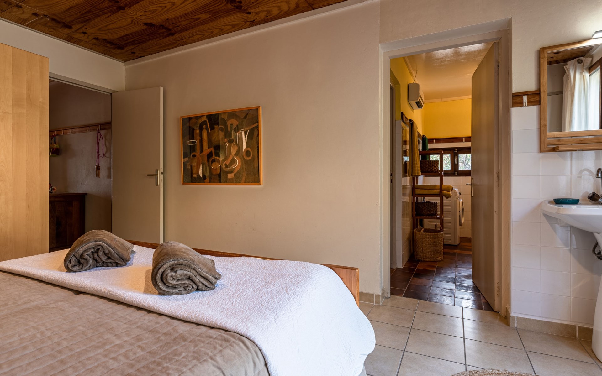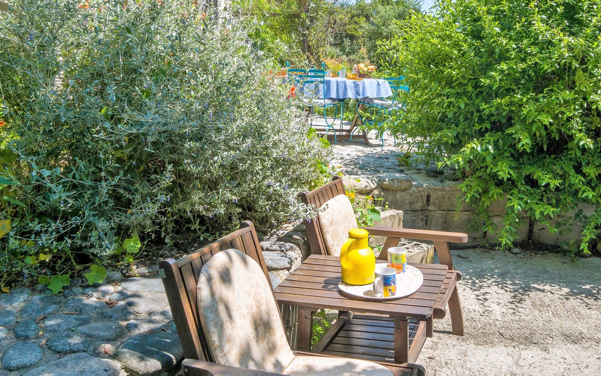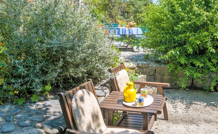 Abbazia 6 km van Ghisonaccia: Gezellige eengezinswoning "Svyntha", omgeven door bomen en velden. In het gehucht Abbazia (500 m), 6 km van het centrum van Ghisonaccia, 70 km van het centrum van Porto Vecchio, buiten de plaats, 100 km van het centrum van Bastia, op een heuvel, 7 km van zee, 4 km van de rivier, te midden van groen. Voor alleengebruik: tuin op verschillende niveaus, 2.000 m2 met planten en bomen, wilde tuin, parkeerplaats op het terrein. Supermarkt 1 km, bushalte 6 km, zandstrand "Plage de Quercioni, Calzarello" 7 km. Attracties in de buurt: Abatescu River (bathing possibility) 4 km. Auto noodzakelijk. De discrete eigenares verzorgt de bijenkorven op het grondstuk (ca. 200 m. van het huis).
