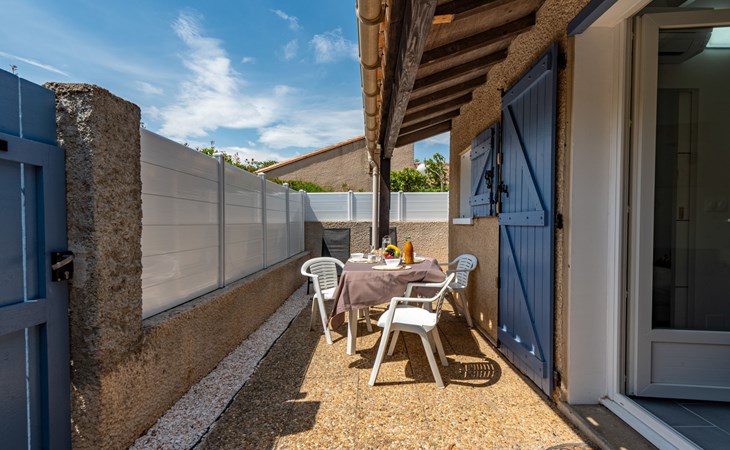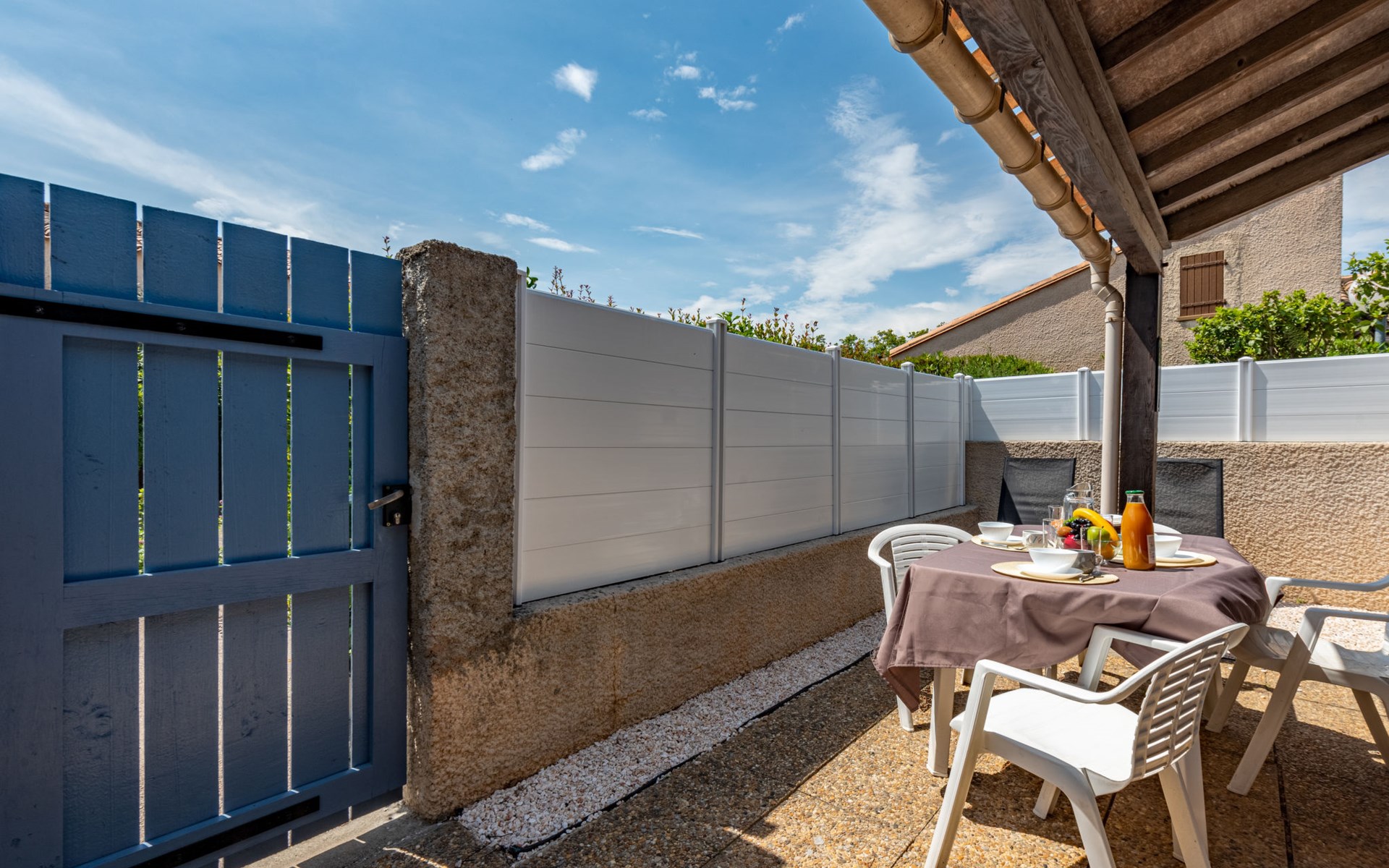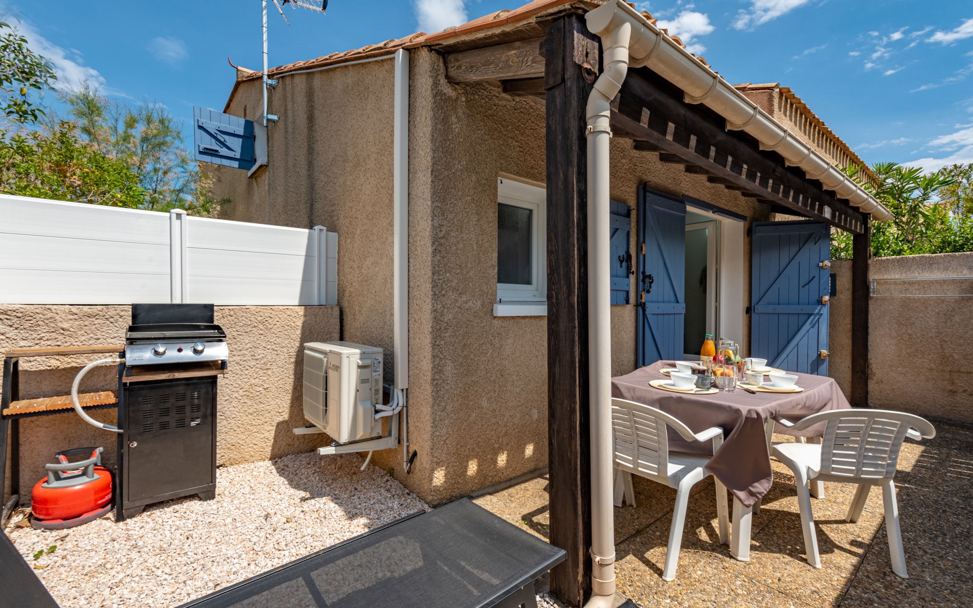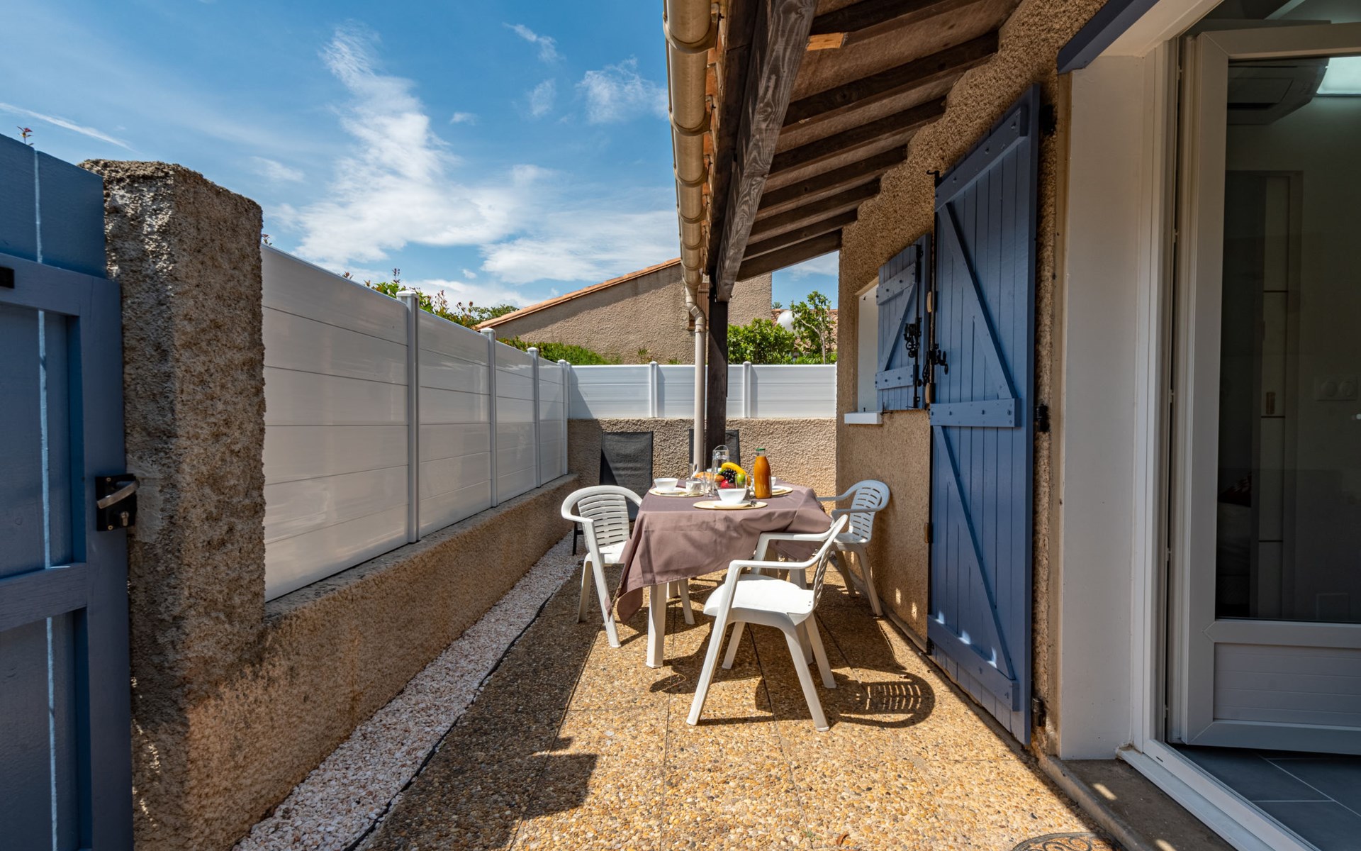Residentie "Les Capellanes". In de wijk Les Capellans, 700 m van zee, van het strand. Winkel 1.5 km, supermarkt 800 m, restaurant 900 m, bushalte 160 m, station "Elne" 7 km, zandstrand "Plage du pont tournant" 700 m. Jachthaven 1.5 km, golfterrein (27 holes) 4.5 km, zeilschool 1 km, midgetgolf 3.3 km, manege 1.5 km, sportcentrum 1.3 km. Attracties in de buurt: Aqualand 2.5 km, Espagne 43 km, Barcelone 200 km.