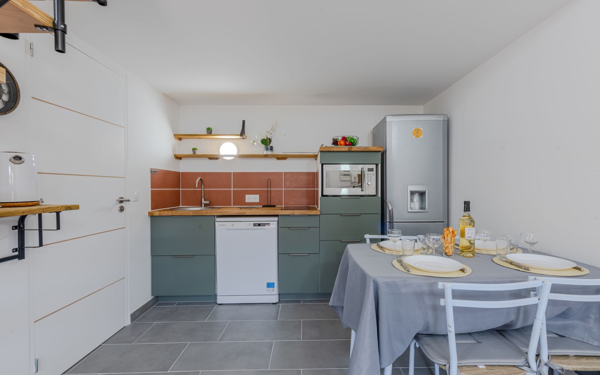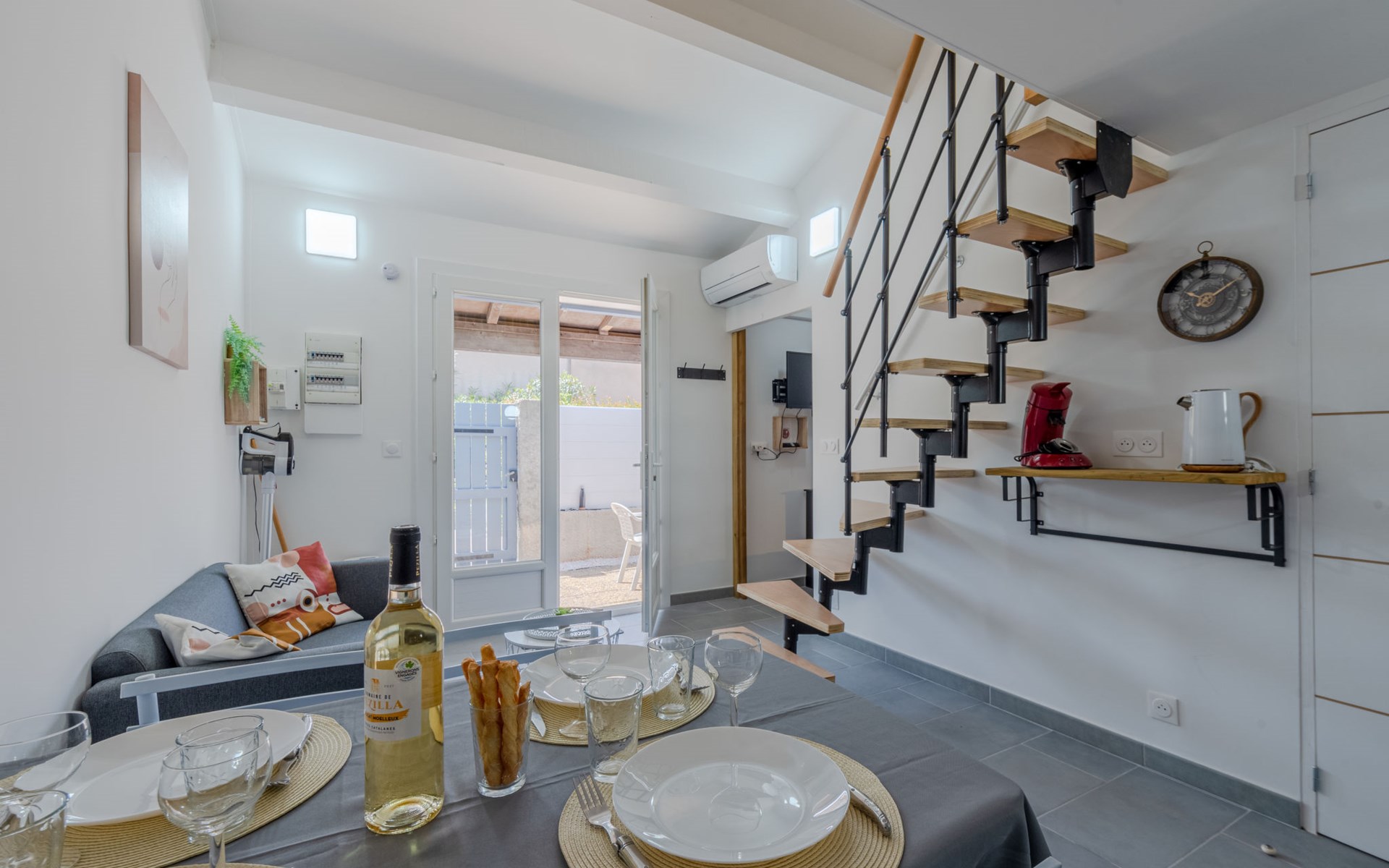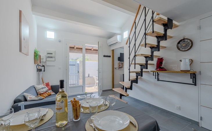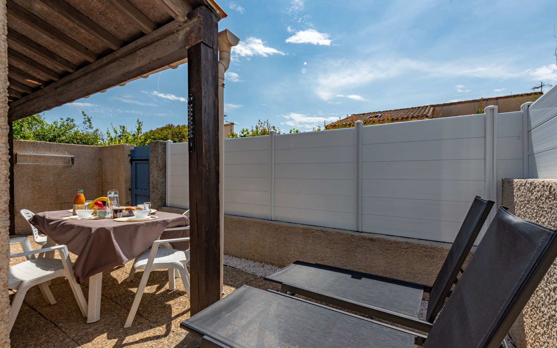 Residentie "Les Capellanes". In de wijk Les Capellans, 700 m van zee, van het strand. Winkel 1.5 km, supermarkt 800 m, restaurant 900 m, bushalte 160 m, station "Elne" 7 km, zandstrand "Plage du pont tournant" 700 m. Jachthaven 1.5 km, golfterrein (27 holes) 4.5 km, zeilschool 1 km, midgetgolf 3.3 km, manege 1.5 km, sportcentrum 1.3 km. Attracties in de buurt: Aqualand 2.5 km, Espagne 43 km, Barcelone 200 km.