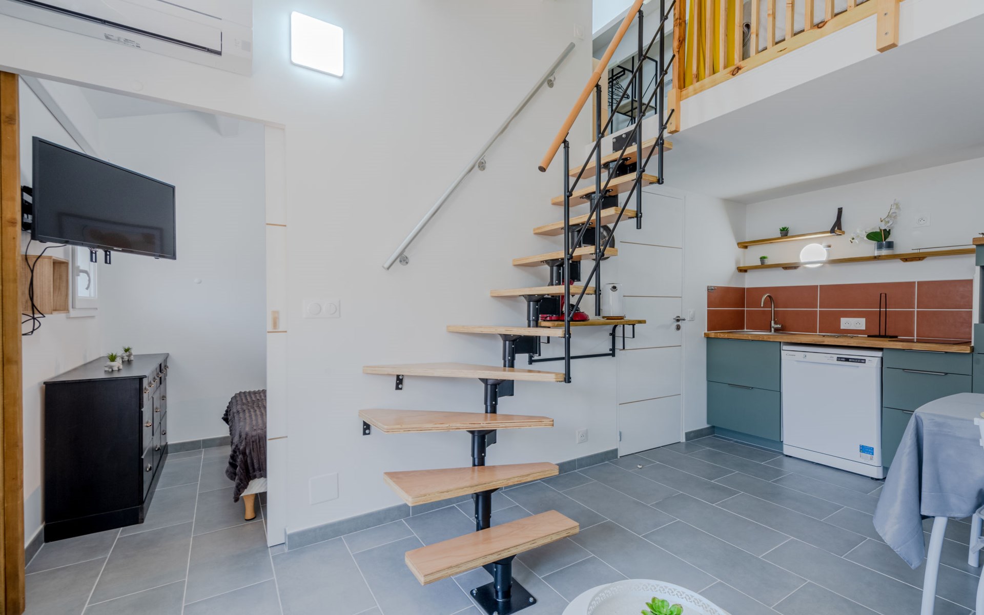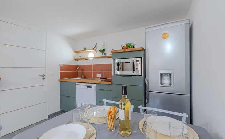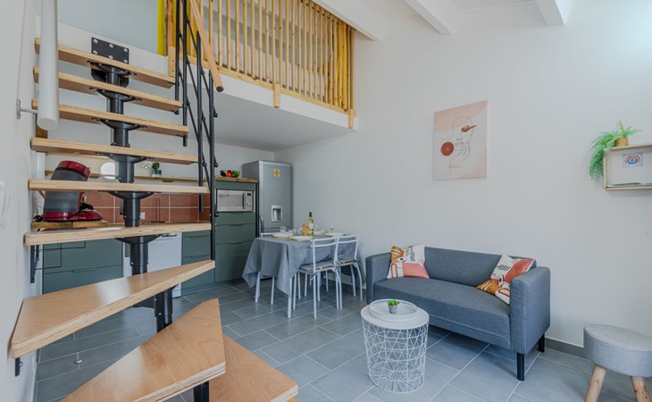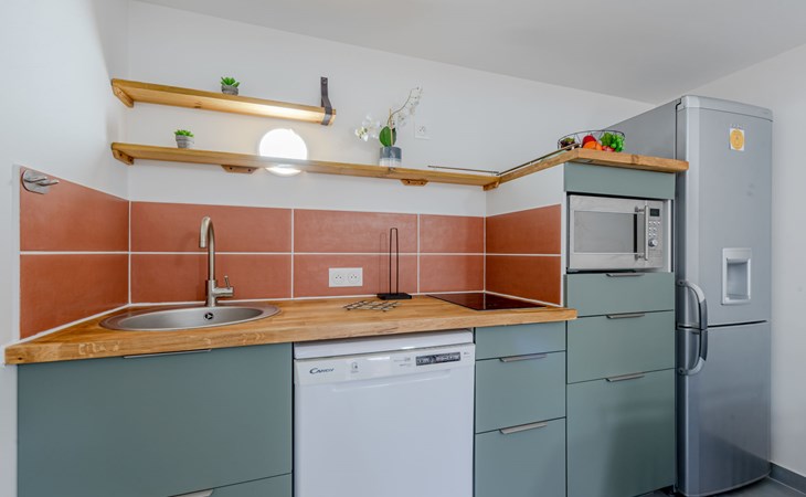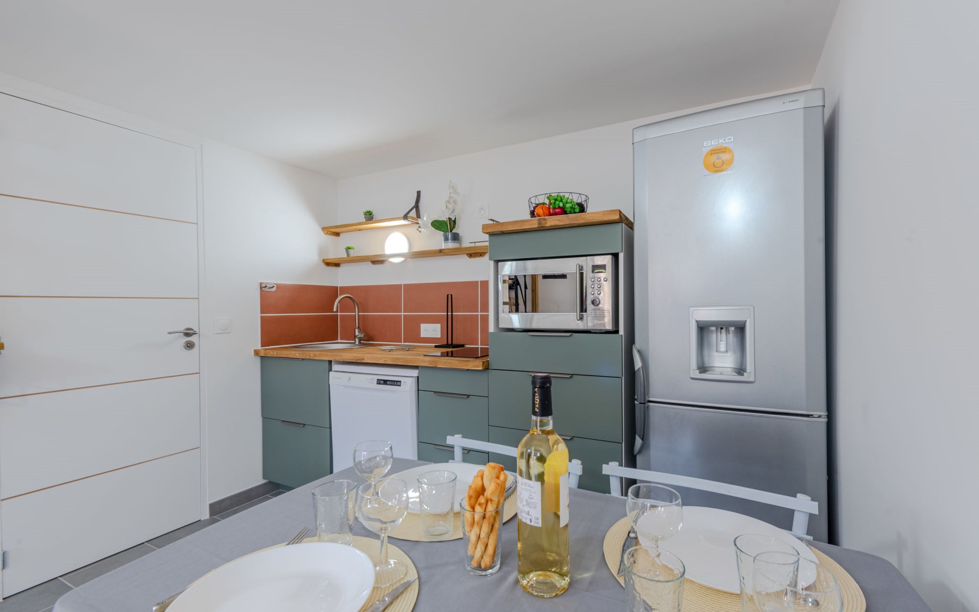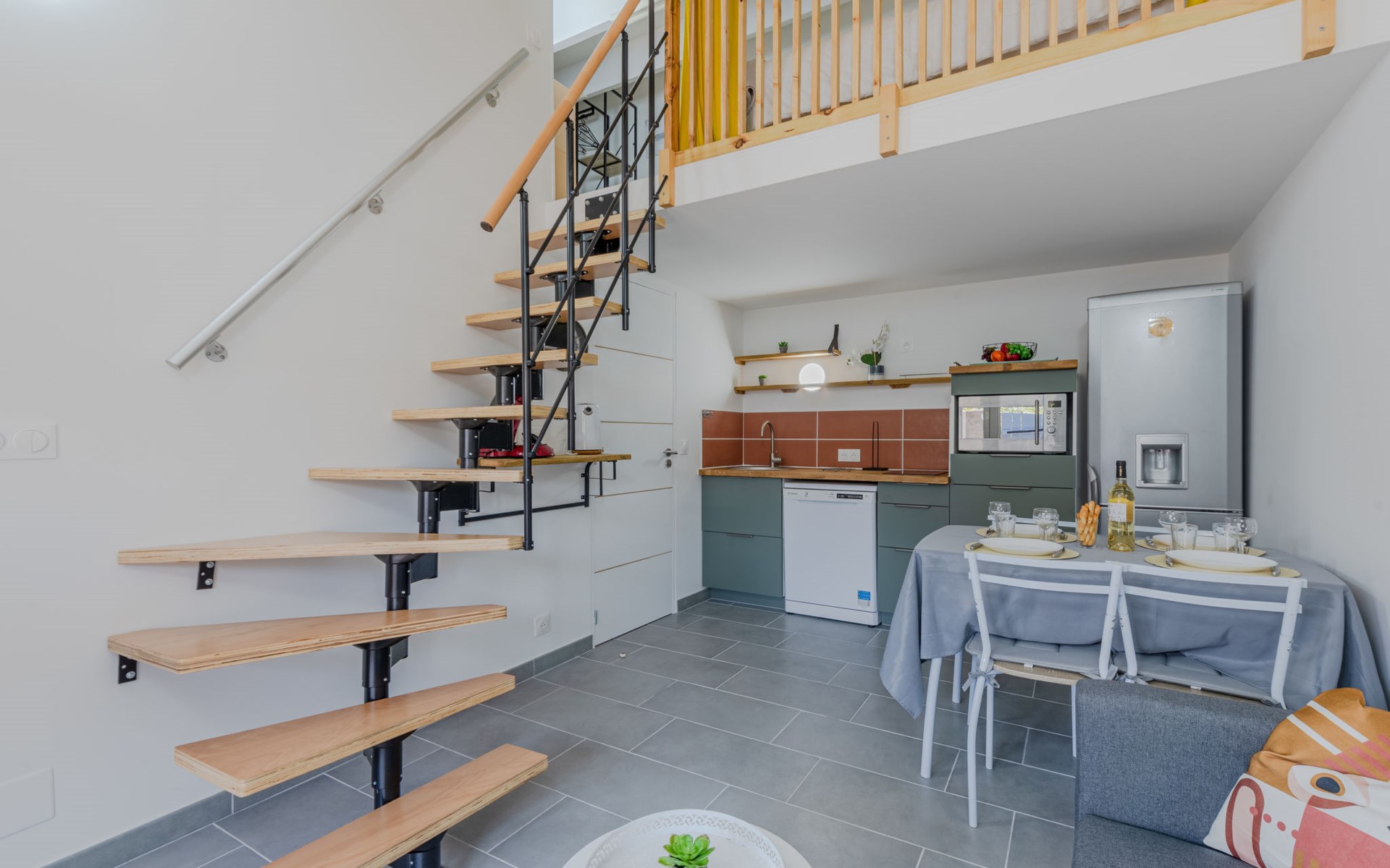 Residentie "Les Capellanes". In de wijk Les Capellans, 700 m van zee, van het strand. Winkel 1.5 km, supermarkt 800 m, restaurant 900 m, bushalte 160 m, station "Elne" 7 km, zandstrand "Plage du pont tournant" 700 m. Jachthaven 1.5 km, golfterrein (27 holes) 4.5 km, zeilschool 1 km, midgetgolf 3.3 km, manege 1.5 km, sportcentrum 1.3 km. Attracties in de buurt: Aqualand 2.5 km, Espagne 43 km, Barcelone 200 km.