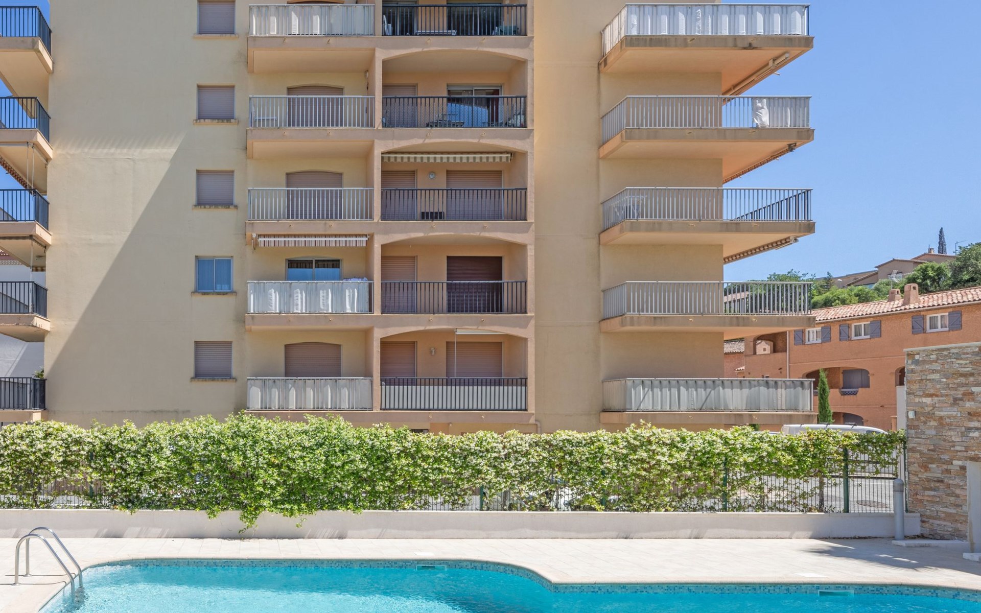 Residentie "La Palmeraie II". In de plaats, 600 m van het centrum van de Sainte-Maxime, 400 m van zee, 500 m van het strand. Voor medegebruik: openluchtzwembad niervormig (4 x 10 m, 110 - 200 cm diepte, seizoensgebonden beschikbaarheid: 15.Jun. - 30.Sep.). In het complex: lift. Parkeerplaats (beperkt aantal). Winkel 600 m, levensmiddelenwinkel, supermarkt 100 m, winkelcentrum 700 m, restaurant 50 m, bakkerij 100 m, bushalte 450 m, station "Saint-Raphael TGV" 20 km, zandstrand "Centre-ville" 400 m, thermaalbad "Thalasso Les Issambres" 7 km. Jachthaven 2 km, golfterrein (18 holes) 5 km, tennis 2 km. Attracties in de buurt: Aqualand waterpark 5 km, Azur Park attractions 13 km, Saint-Tropez/Ramatuelle 16 km, Port-Grimaud 11 km, Gorges du Verdon 95 km, Navette / shuttle boat St-Tropez 15min 2 km. Wandelgebied Massif des Maures 5 km, Massif de l'Esterel 38 km. Gesloten residentie met een elektrische deur. De sleuteloverdracht vindt plaats bij het agentschap Interhome in Sainte-Maxime. Vliegveld 70 km van het huis. Vergelijkbare accommodaties kunnen worden geboekt.