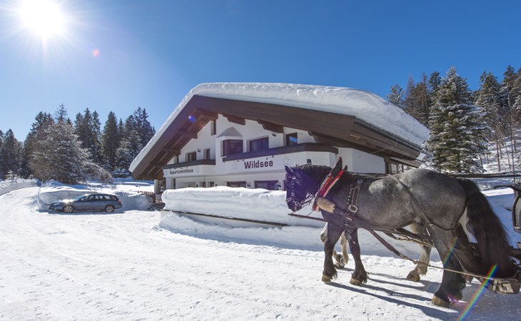 Groot flatgebouw "Wildsee", vrijstaand. Aan de rand van de plaats, 500 m van het centrum van Seefeld, gebied met weinig verkeer, 50 m van het meer. Voor medegebruik: wild terrein, ligweide. Kinderspeelplaats. In het huis: centrale verwarming. Parkeerplaats bij het huis. Supermarkt 700 m, restaurant 500 m, centrum te voet bereikbaar in 7 minuten, bushalte "Seefeld - Bahnhof" 1 km, treinstation "Seefeld" 1 km, overdekt zwembad 1 km, meer (zwemmen) "Wildsee" 50 m. Golfterrein (9 holes) 1 km, tennis 1.5 km, tennishal 1.5 km, midgetgolf 700 m, wandelroutes 100 m vanaf het huis, ski faciliteiten 1 km, langlaufloipe 1 km. Attracties in de buurt: Innsbruck 23 km, Garmisch-Partenkirchen 37 km, Adventurepark 39 km. Bekende skigebieden kunnen gemakkelijk worden bereikt: Rosshütte 1 km, Axamer Lizum 27 km, Kühtai 38 km. Wandelgebied Reither Moor 100 m, Karwendel 10 km.