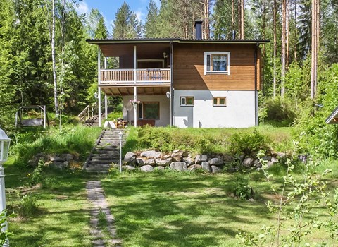 Semi detached house with a combined kitchen/living room, two bedrooms, one with a double bed and one with two single beds, A loft with low celing with three single beds. Electric sauna, shower and toilet, drying cabinet and a washing machine. 65 m2 and the loft 12 m2. Built in 2000