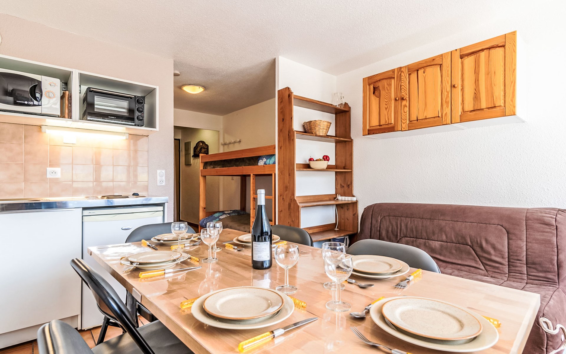 Tignes 1800-Boisses 8 km van Tignes le Lac: Residentie "Les Olympiques (Tignes 1800)", van 2 verdiepingen. In de plaats, rustige ligging, 200 m van het skigebied. Openbare parkeerplaatsen. Winkel, levensmiddelenwinkel, supermarkt 200 m, restaurant 100 m, bakkerij, bushalte 200 m. Tennis 200 m, ski faciliteiten 200 m, skibushalte 100 m, skischool. Gratis skibus. De sleuteloverdracht vindt plaats bij het agentschap Interhome in Tignes le Lac, 8 km. Vergelijkbare accommodaties kunnen worden geboekt. De woningen kunnen onderling van inrichting verschillen.