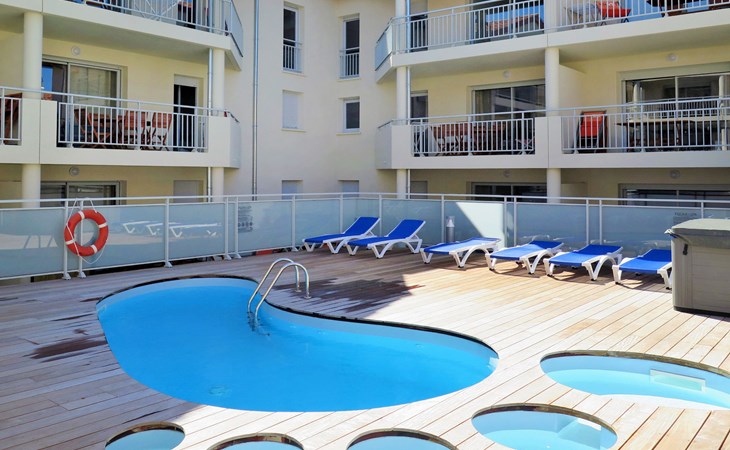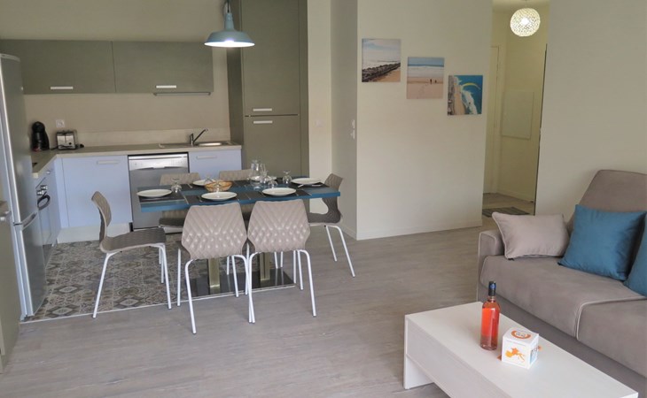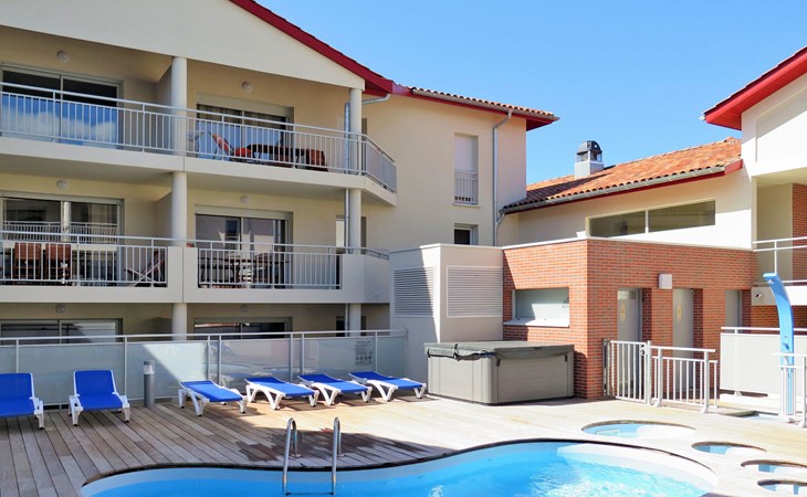 Residentie "Les Sables d’Or", van 3 verdiepingen, bouwjaar 2016. 51 appartementen in de woning. 900 m van het centrum van Vieux-Boucau, 8.5 km van het centrum van Soustons, 20 km van het centrum van Capbreton, centrale ligging, 350 m van zee. Voor medegebruik: openluchtzwembad (16 m2, seizoensgebonden beschikbaarheid: 01.Apr. - 15.Sep.). Onregelmatig zwembad. Buitendouche, hot tub. In het complex: fitnessruimte, lift. Ontbijt op verzoek (extra). Gemeenschappelijke garage, openbare parkeerplaatsen in de straat. Winkel 50 m, supermarkt 2 km, bushalte "Eglise (3)" 1.5 km, zandstrand 350 m, meer (zwemmen) "Lac Marin de Port d'Albret" 1 km. Golfterrein (18 holes) 9 km, tennis 750 m. De eigenaar accepteert geen jeugdgroepen. De afgebeelde foto is slechts een voorbeeld. De huurobjecten kunnen wb. Woonoppervlak, kamerindeling verschillen.