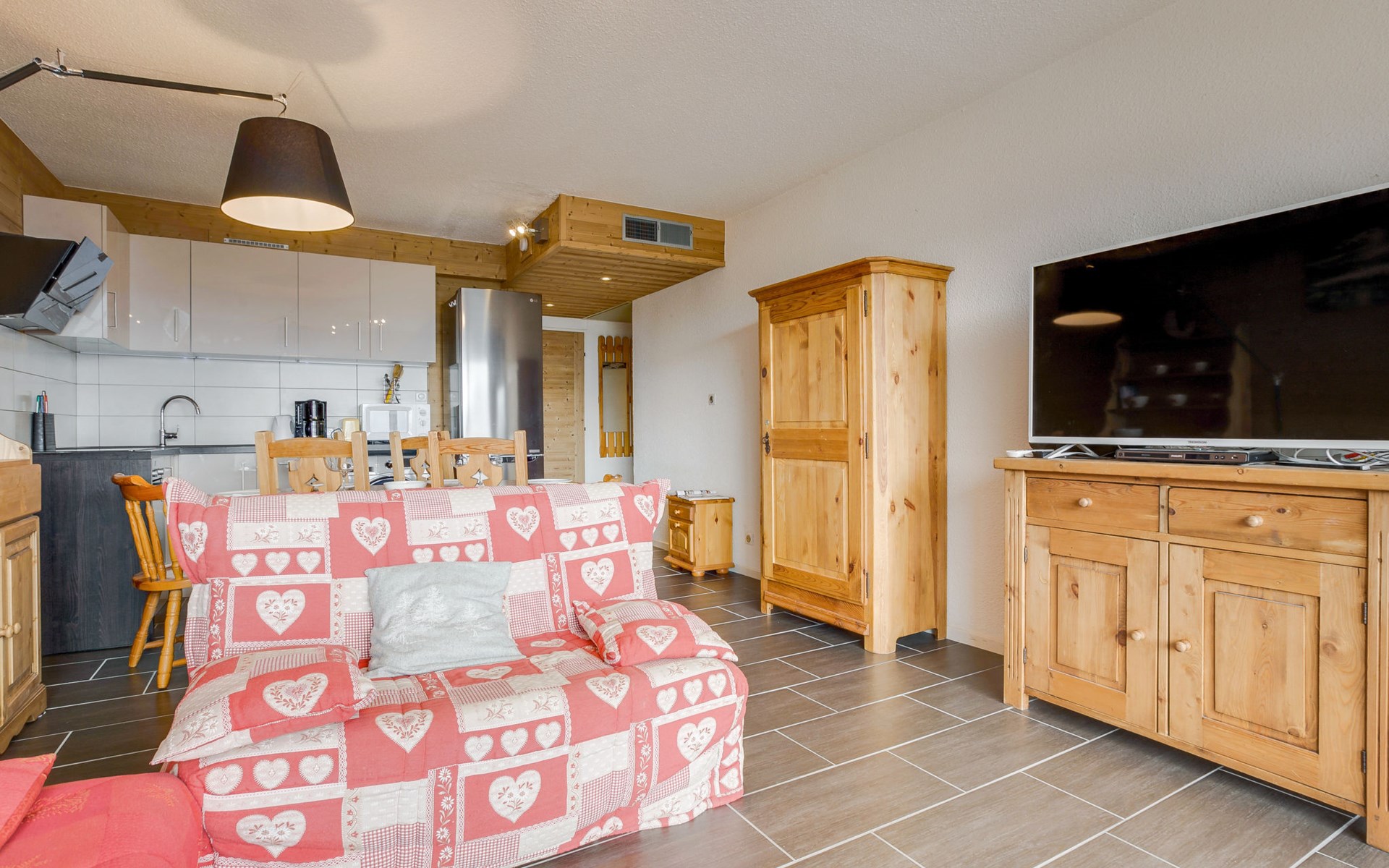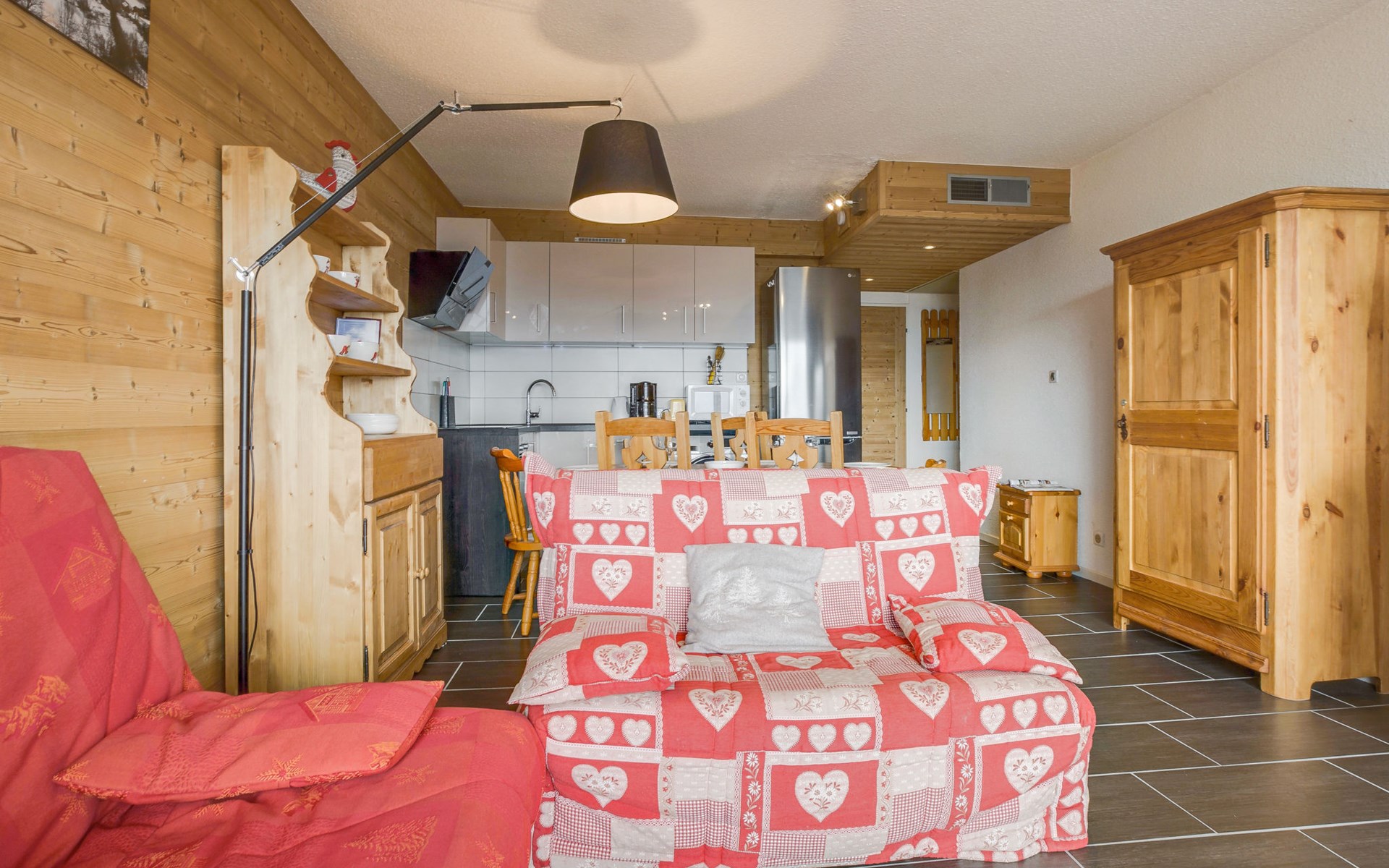 La Toussuire: Klein appartementencomplex "Champ Bozon", van 3 verdiepingen. Boven La Toussuire, verhoogde ligging, 400 m van het skigebied, op het zuiden. In het huis: lift, berging voor ski's. In de winter sneeuwkettingen aanbevolen. Openbare parkeerplaatsen. Winkel 400 m, levensmiddelenwinkel 150 m, restaurant 300 m, bar 500 m, bushalte 350 m, station "St Jean de Maurienne" 15 km. Stoeltjeslift 200 m, skipisten 400 m, skibushalte 100 m. Gratis skibus. De sleuteloverdracht vindt plaats bij het agentschap INTERHOME DU CORBIER in LA STATION VOISINE, 4 km.