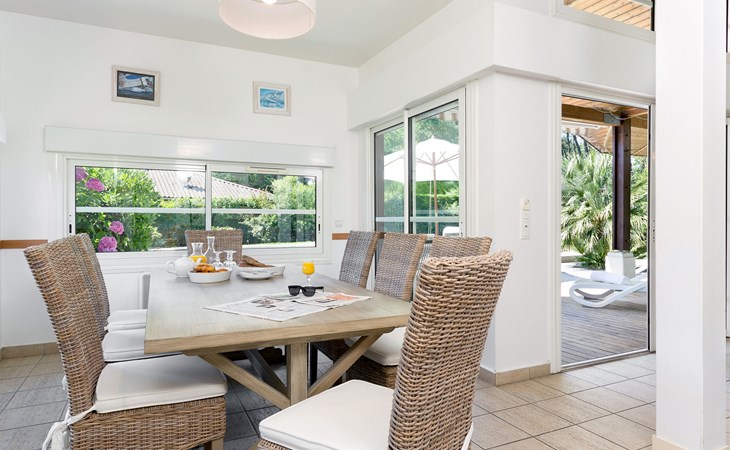 Mooi vakantiecomplex "Club Royal Océan La Prade". 85 huizen in de plaats. 2 km van het centrum van Moliets-Bourg, 8 km van het centrum van Vieux Boucau, 35 km van het centrum van Dax, 1.2 km van zee. Voor alleengebruik: tuin 600 m2 met gazon en bomen, openluchtzwembad (150 cm diepte, seizoensgebonden beschikbaarheid: 23.Mei. - 03.Okt.). In het complex: receptie, Internet (WiFi). Winkel 1.5 km, supermarkt 6 km, treinstation "Dax" 35 km, zandstrand 1.4 km. Golfterrein (18 holes) 700 m. De afgebeelde foto is slechts een voorbeeld. De huurobjecten kunnen wb. Woonoppervlak, kamerindeling verschillen.