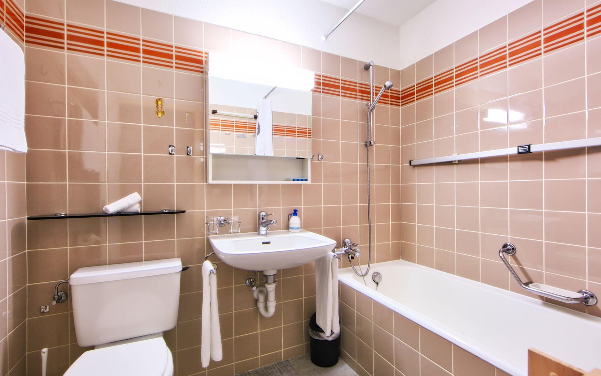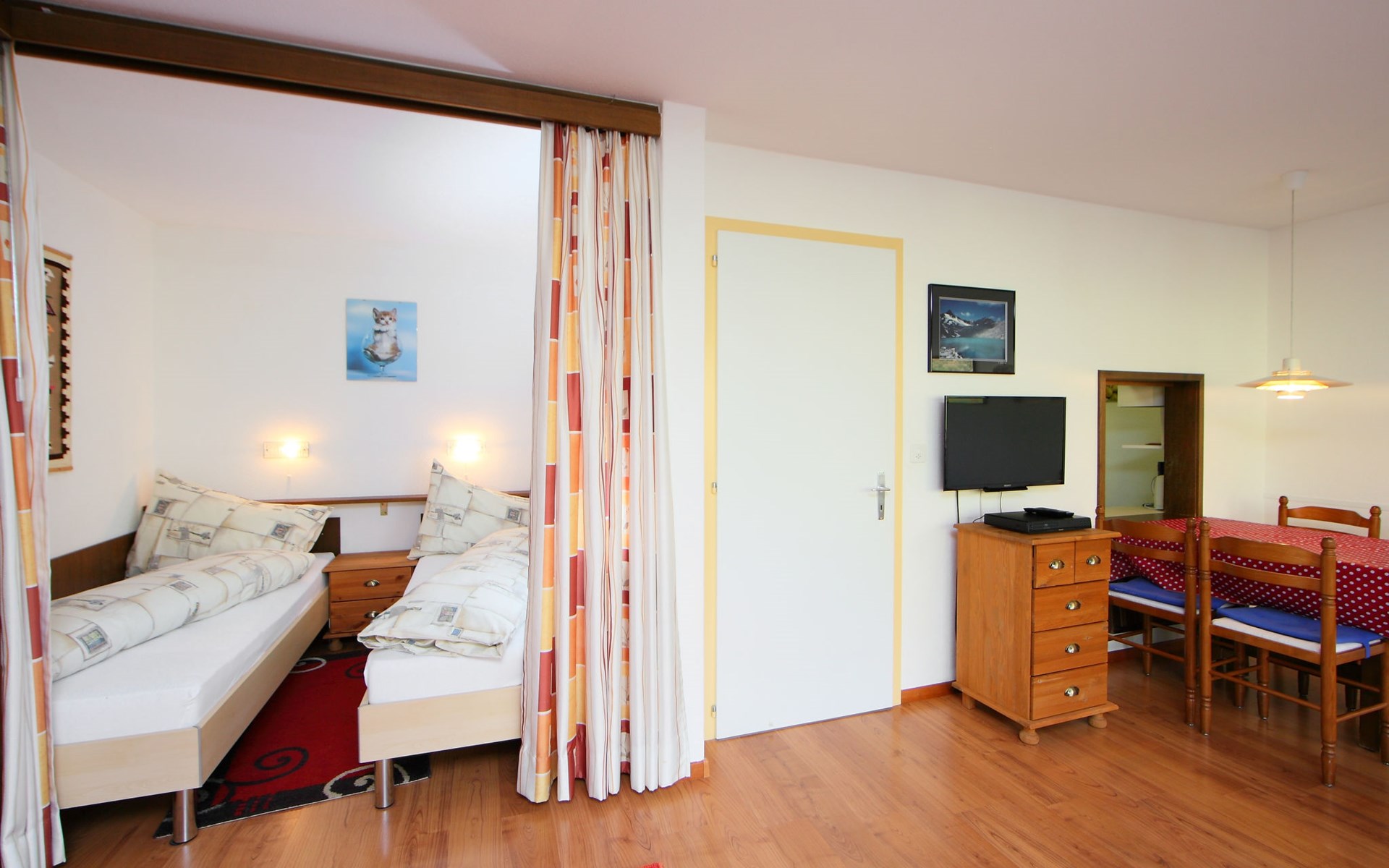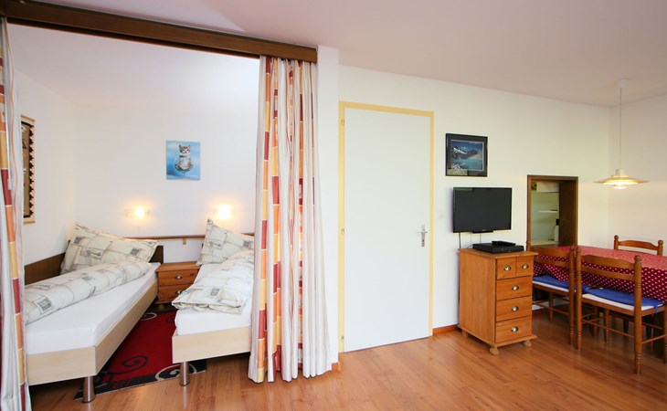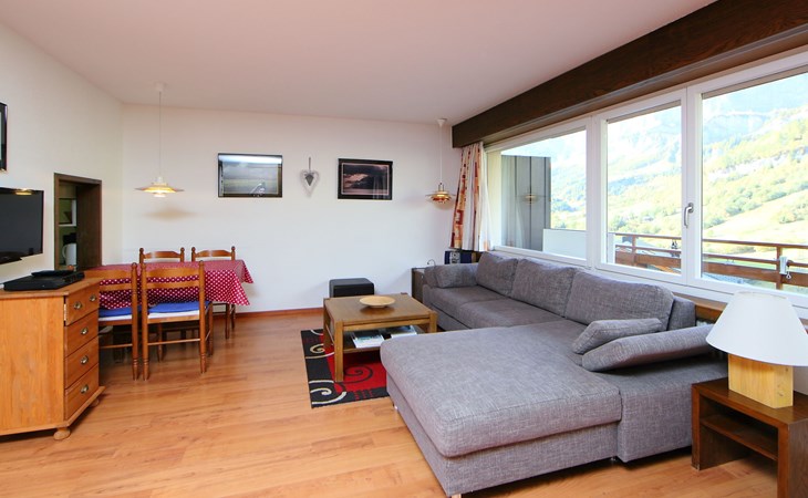Residentie "Ringstrasse (Utoring)". In de plaats, 500 m van het centrum, 20 m van het skigebied. In het huis: bar, salon, tafeltennis, speelkamer, lift, bergruimte voor fietsen, berging voor ski's, centrale verwarming, wasmachine, droger (extra). Broodjesservice en drankjesservice. Toegangsweg tot aan het huis (bergweg). In de winter sneeuwkettingen aanbevolen, 's winters 4x4 aanbevolen. Parkeerplaats bij het huis, Openbare parkeergarage op 50 m, extra. Levensmiddelenwinkel, supermarkt, restaurant 500 m, bushalte "Leukerbad, Bristol" 250 m, openluchtzwembad 500 m, thermaalbad 300 m. Tennis 500 m, kabelbaan, ski faciliteiten, skipisten 20 m, rodelbaan, langlaufloipe 500 m, ijsbaan 1 km. Bekende skigebieden kunnen gemakkelijk worden bereikt: Leukerbad Torrent. Wandelgebied Gemmi 1 km. Het huis staat op een beboste helling op het zuidwesten, direct naast de Torrent-kabelbanen. Slechts een korte trappenweg scheidt het huis van het dalstation. Parkeermogelijkheid: in de winter parkeerplaats CHF35.00/week, garage CHF 70.00/week, in de zomer parkeerplaats gratis, garage CHF 35.00/week.