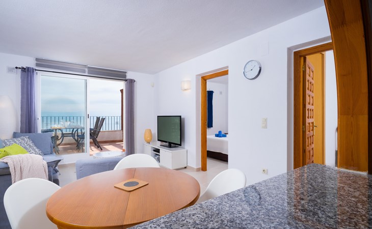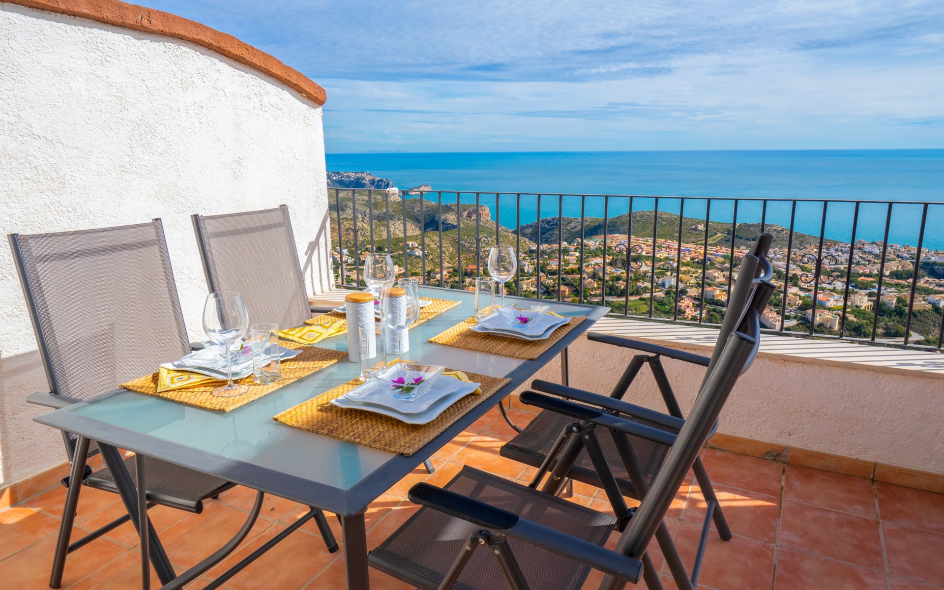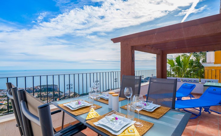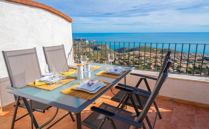 Flatgebouw "Pueblo Panorama". In de wijk Cumbre del Sol, rustige, zonnige ligging in een woonwijk, 4 km van zee, 4 km van het strand. Voor medegebruik: 2 zwembaden (8 x 18 m, 120 - 150 cm diepte, seizoensgebonden beschikbaarheid: 01.Jan. - 31.Dec.). In het huis: internetaansluiting, Internet (WiFi), wasmachine. Trappenweg (53 treden) naar het huis. Winkel 4.3 km, supermarkt 4.3 km, winkelcentrum 4.3 km, restaurant 4.3 km, bushalte "Benitachell" 4 km, station "Teulada" 8.5 km, veerboot "Denia" 22.5 km, zandstrand "Playa Ampolla" 8 km kiezelstrand "Cala Moraig" 4 km, openluchtzwembad 10 m. Auto noodzakelijk. Geschikt voor families, geschikt voor senioren. De eigenaar accepteert geen jeugdgroepen.