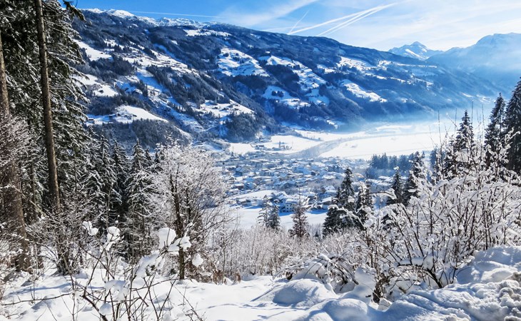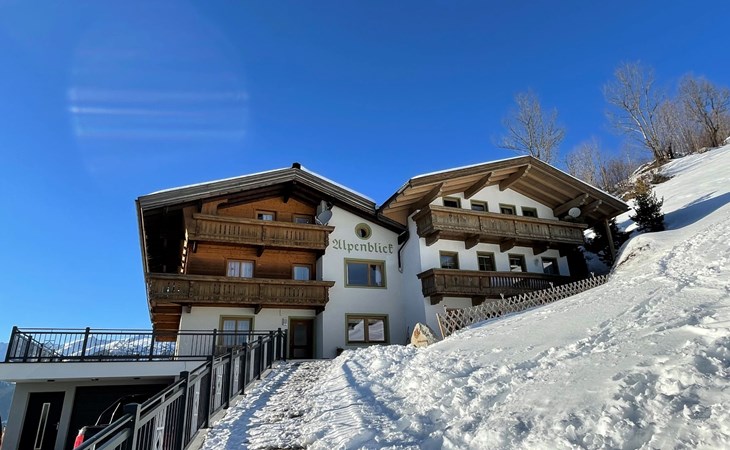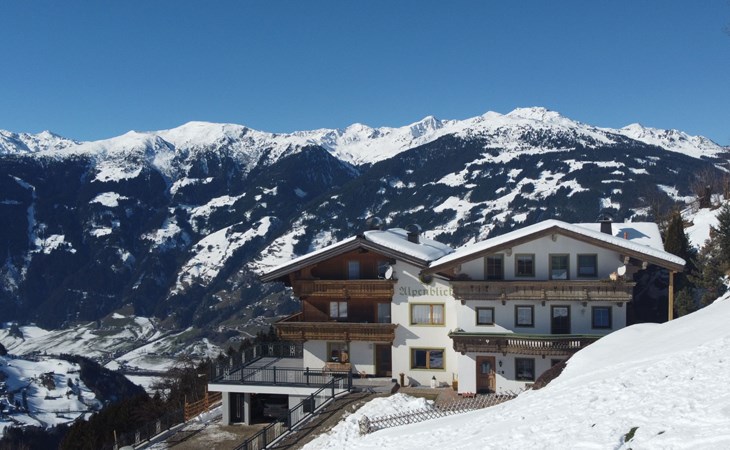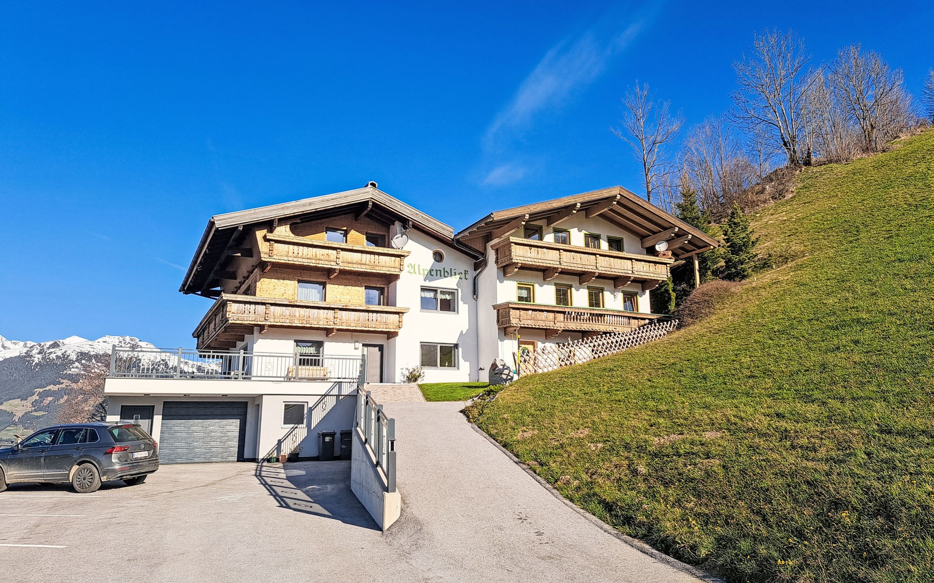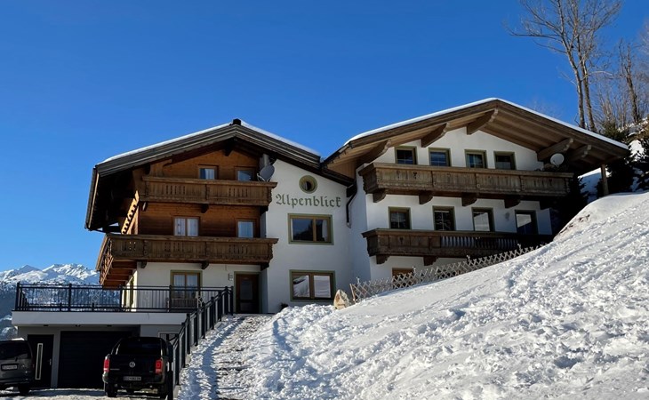 Zell am Ziller: Groot twee onder één kap woning "Alpenblick", 1.000 m boven zeeniveau. In de wijk Gerlosberg, 5 km van het centrum van Zell, 10 km van het centrum van Mayrhofen, geïsoleerde ligging tegen een helling. In het huis: berging voor ski's, centrale verwarming, skischoendroger. Broodjesservice op aanvraag. 4.5 km lange steile toegangsweg. In de winter sneeuwkettingen aanbevolen. Parkeerplaats (voor 4 auto's) op het terrein. Supermarkt 5 km, restaurant 200 m, bushalte "Gerlosberg Oberberg" 140 m, treinstation "Zell a.Z. Bahnhof" 7.5 km. Skilift 1.5 km, kabelbaan op 1.5 km, skipisten 1.5 km, skibushalte 30 m, skischool 1.5 km. Bekende skigebieden kunnen gemakkelijk worden bereikt: Zillertal-Arena 1.5 km. Wandelgebied Zillertaler Alpen. Gratis skibus. Bij goede skicondities is het huis bereikbaar per ski. De eigenaar woont in hetzelfde huis.