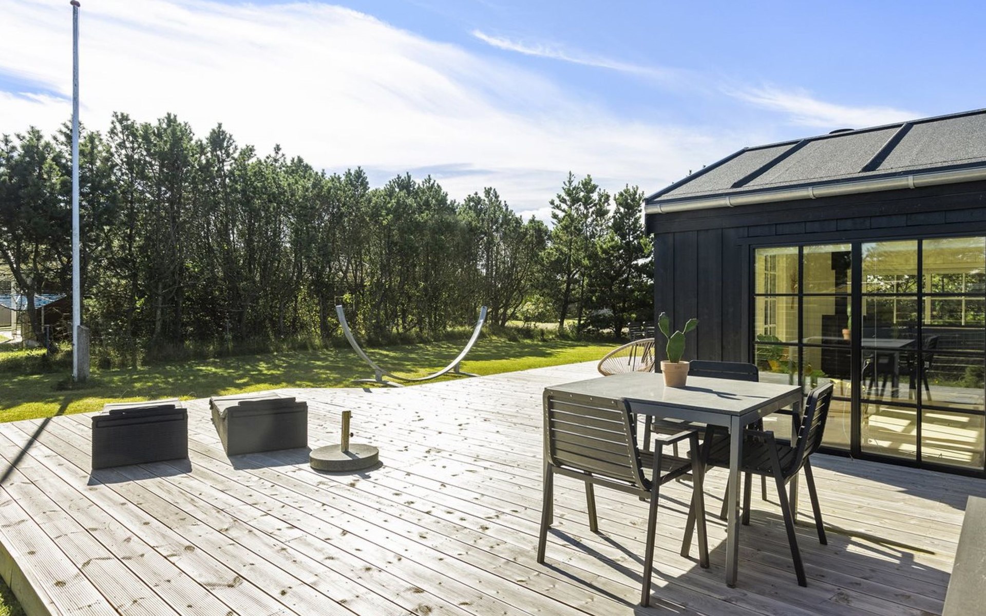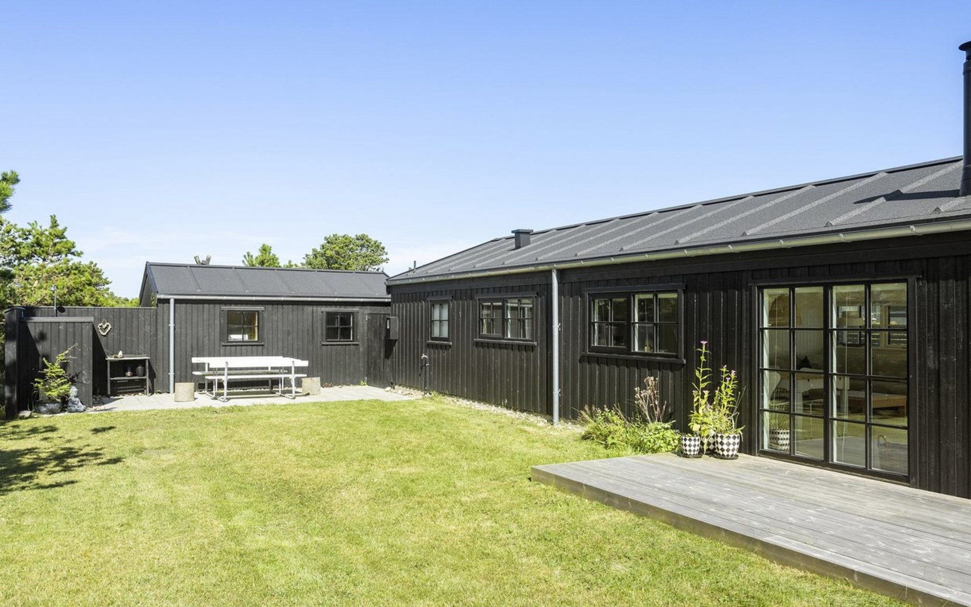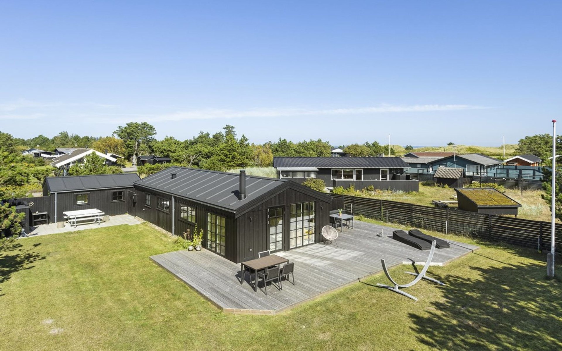Eengezinswoning, bouwjaar 1984. 150 m van zee. Voor medegebruik: tuin. Voor alleengebruik: terrein 850 m2, tuin (omheind). Buitendouche, terras (125 m2), barbecue, kinderspeelplaats (schommel). In het huis: wasmachine, droger. Parkeerplaats bij het huis. Oplaadstation. Levensmiddelenwinkel 8 km. De eigenaar accepteert geen jeugdgroepen.