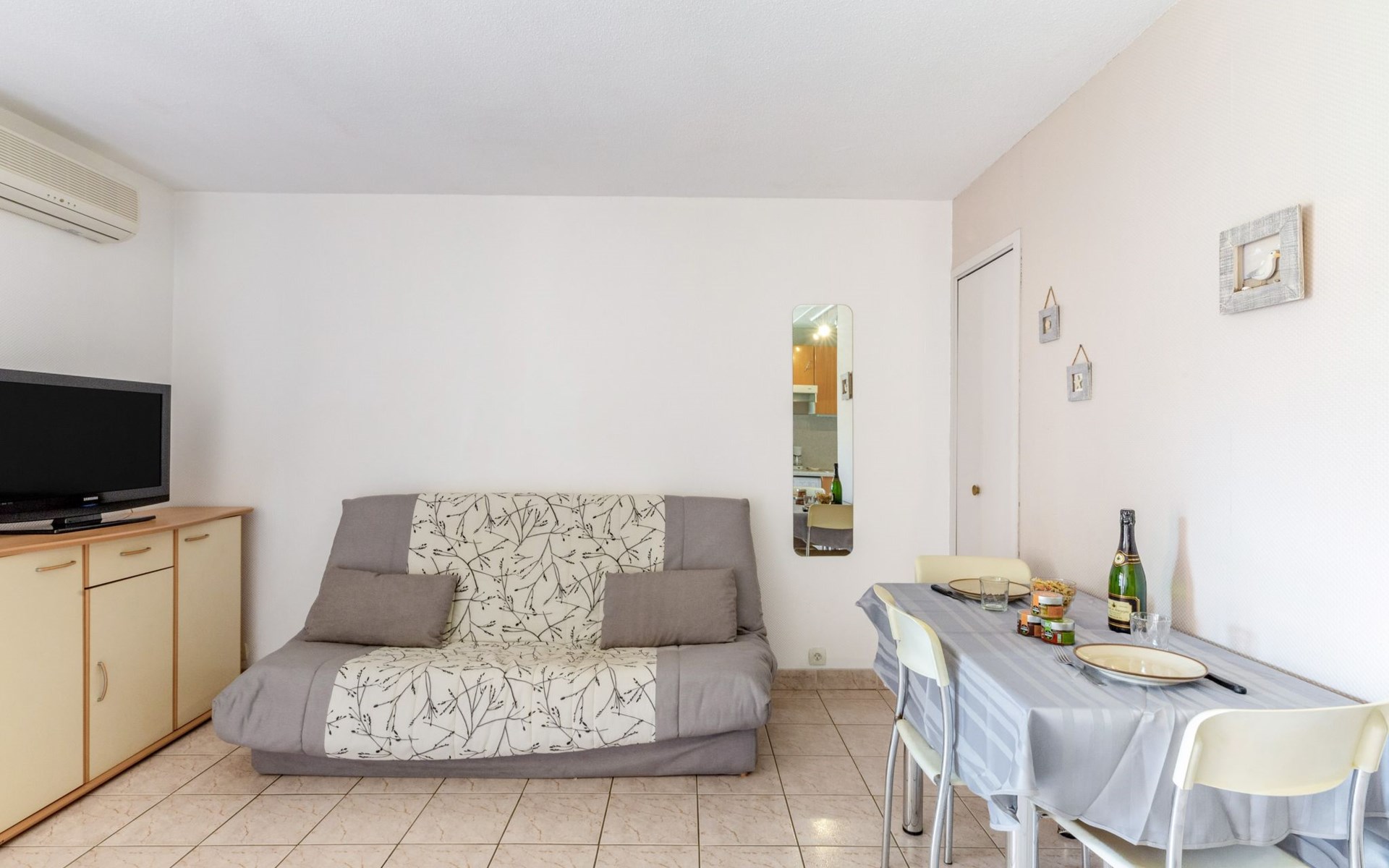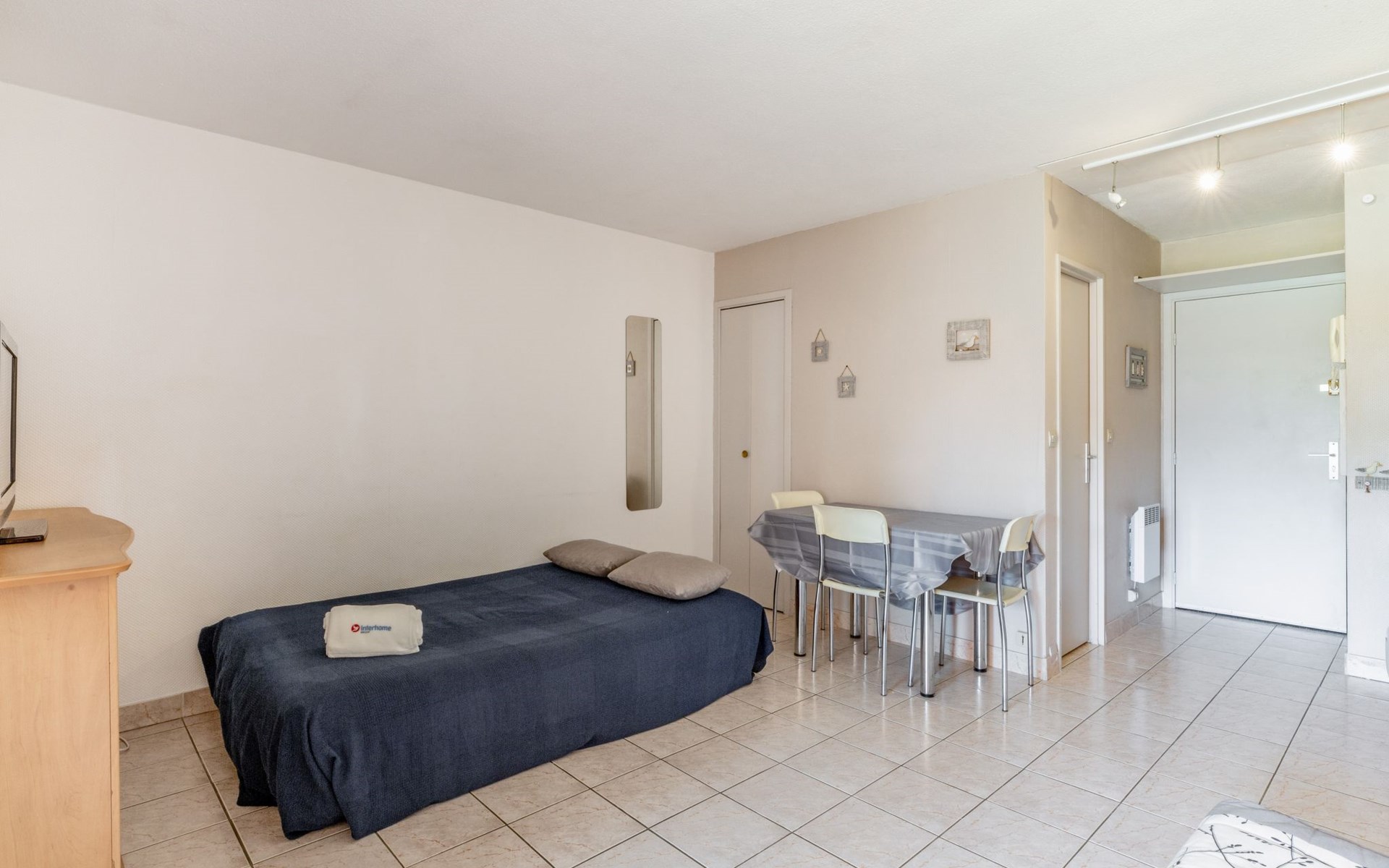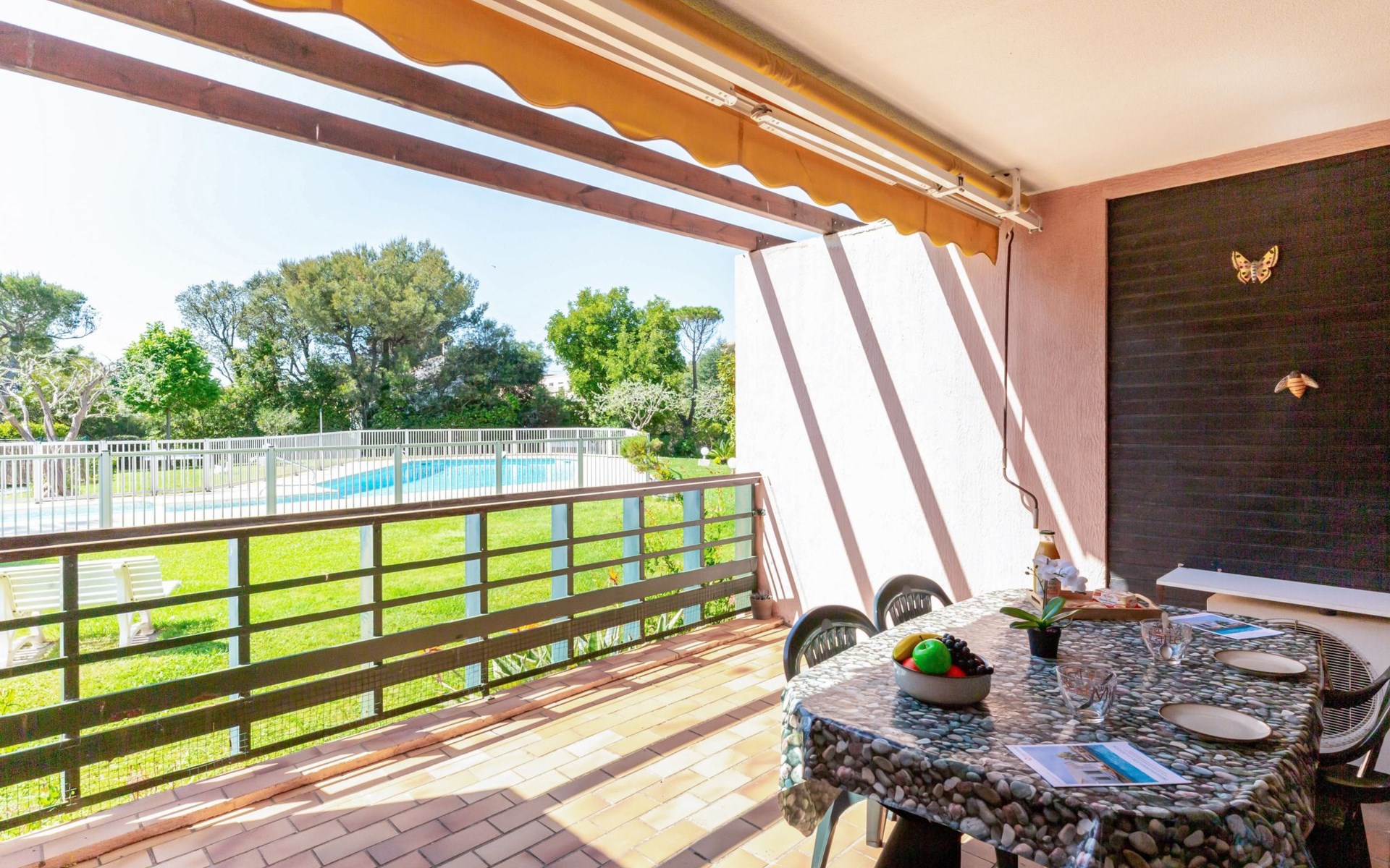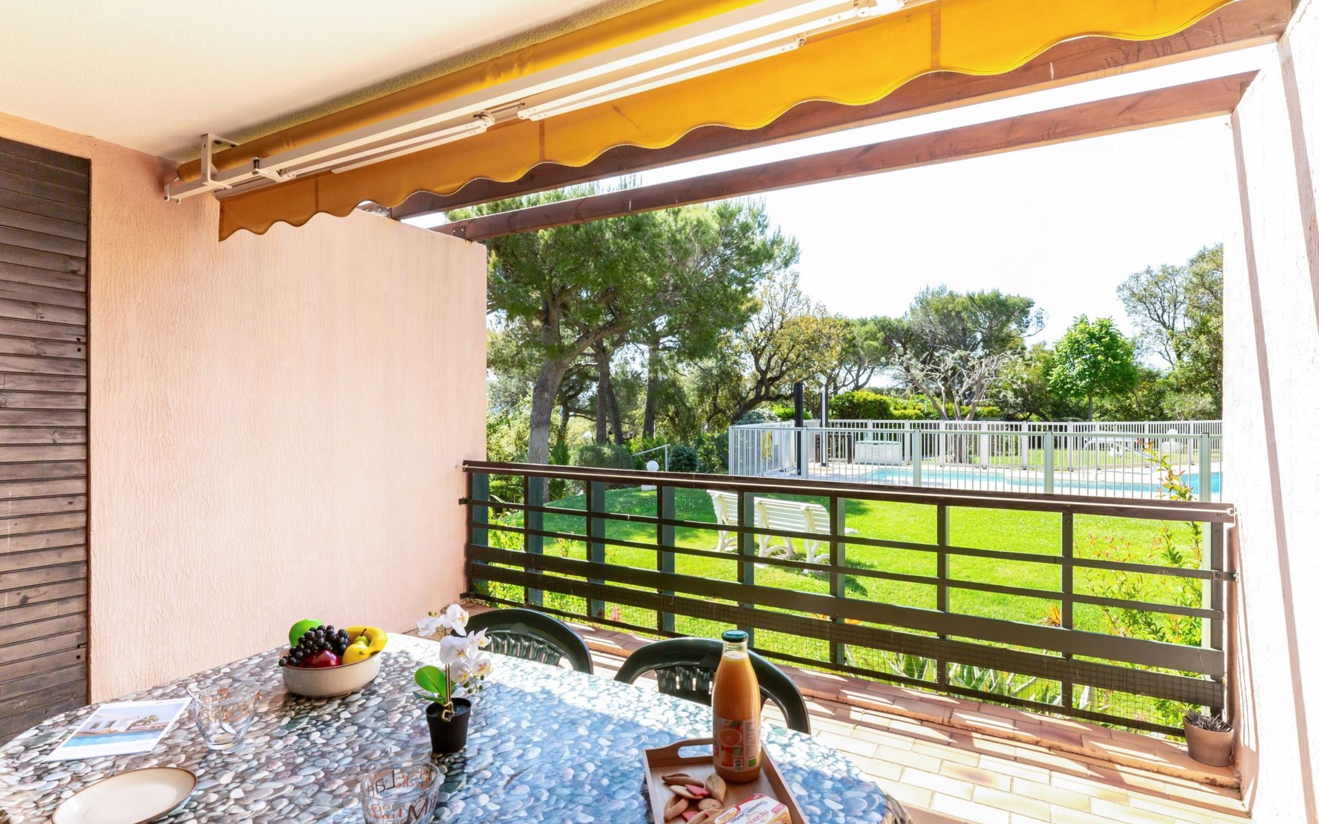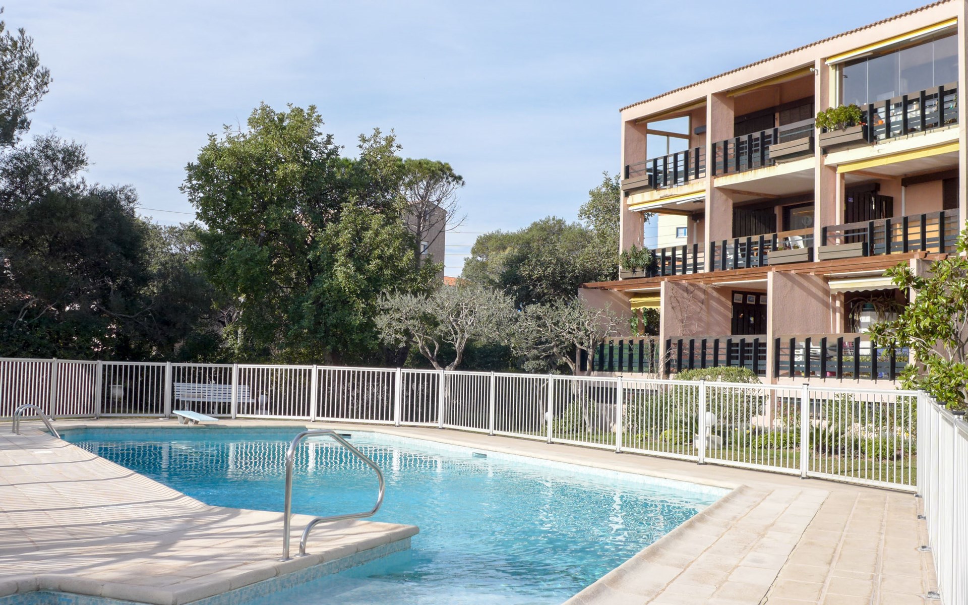 Residentie "Les Caroubiers", van 3 verdiepingen. In de plaats, 300 m van het centrum van Saint Aygulf, 200 m van zee, 200 m van het strand. Voor medegebruik: openluchtzwembad hoekig verwarmd, omheind (6 x 12 m, 80 - 180 cm diepte, seizoensgebonden beschikbaarheid: 15.Mei. - 15.Okt. openingstijden zwembad: 09:00-20:00). Kinderzwembad, buitendouche, jeu de boules. In het huis: bergruimte voor fietsen. Winkel, levensmiddelenwinkel 200 m, supermarkt 300 m, winkelcentrum 4.5 km, restaurant 200 m, bar 400 m, bakkerij, café 200 m, centrum te voet bereikbaar in 5 minuten, bushalte "Saint-Aygulf La Poste" 400 m, zandstrand "Saint Aygulf" 1.5 km kiezelstrand "Calanque des Corailleurs" 200 m, park "Areca" 900 m, thermaalbad "Thalasso de Port Fréjus" 5 km. Jachthaven 1.6 km, golfterrein (18 holes) 7.5 km, zeilschool 6 km, manege 7 km. Attracties in de buurt: Lunapark, Aqualand 4.5 km, Nice 71 km, Fréjus 5 km, Saint Raphaël 7 km, Saint Tropez 30 km, Cannes 47 km. Bekende skigebieden kunnen gemakkelijk worden bereikt: Auron, Isola 2000 150 km. Bekende meren kunnen gemakkelijk worden bereikt: Lac de St Cassien 45 km, Lac du Du Verdon 90 km. Wandelgebied Estérel 16 km, Sentier du Littoral 200 m. Gesloten residentie met een elektrische deur. De sleuteloverdracht vindt plaats bij het agentschap Interhome in Saint Aygulf.