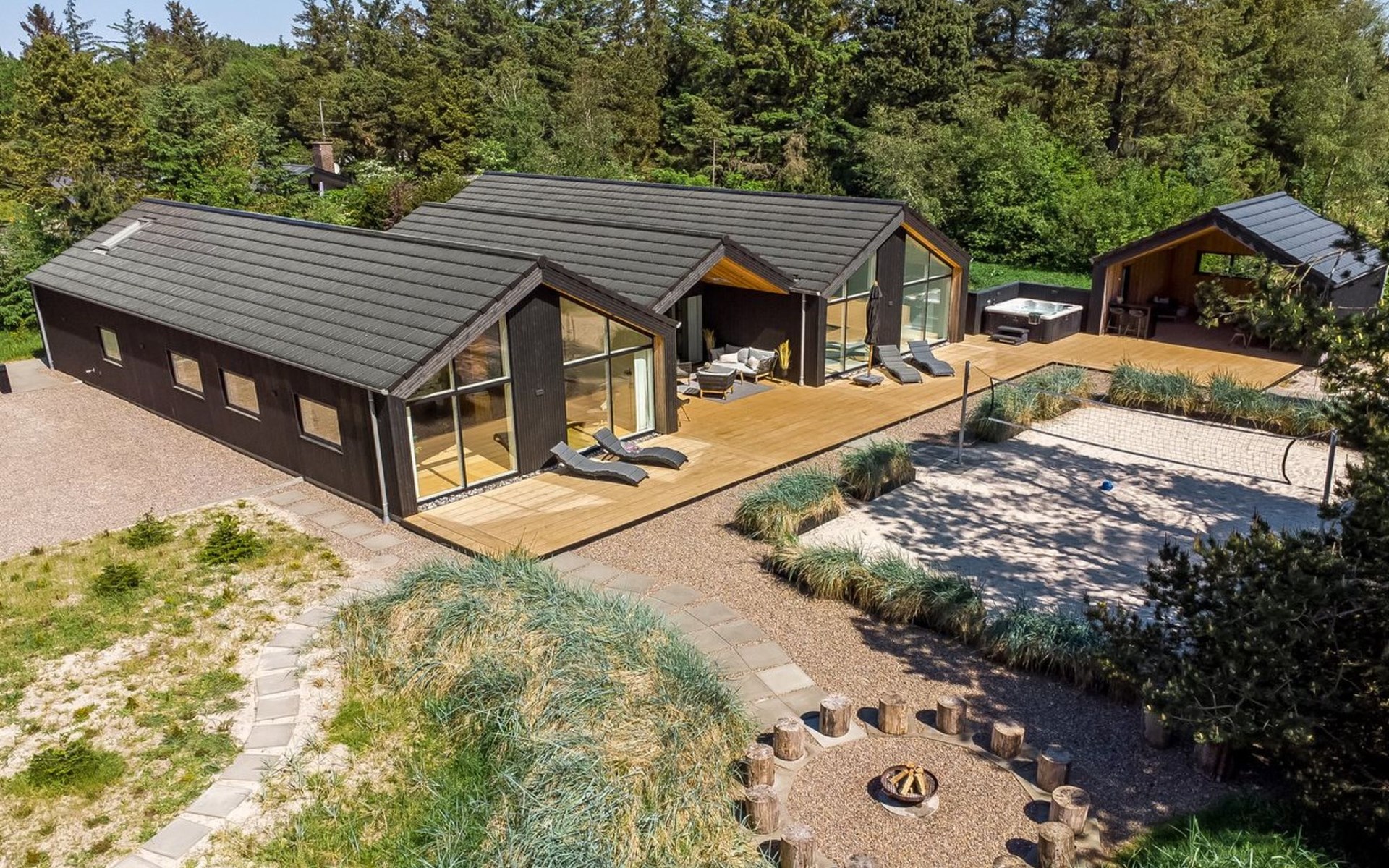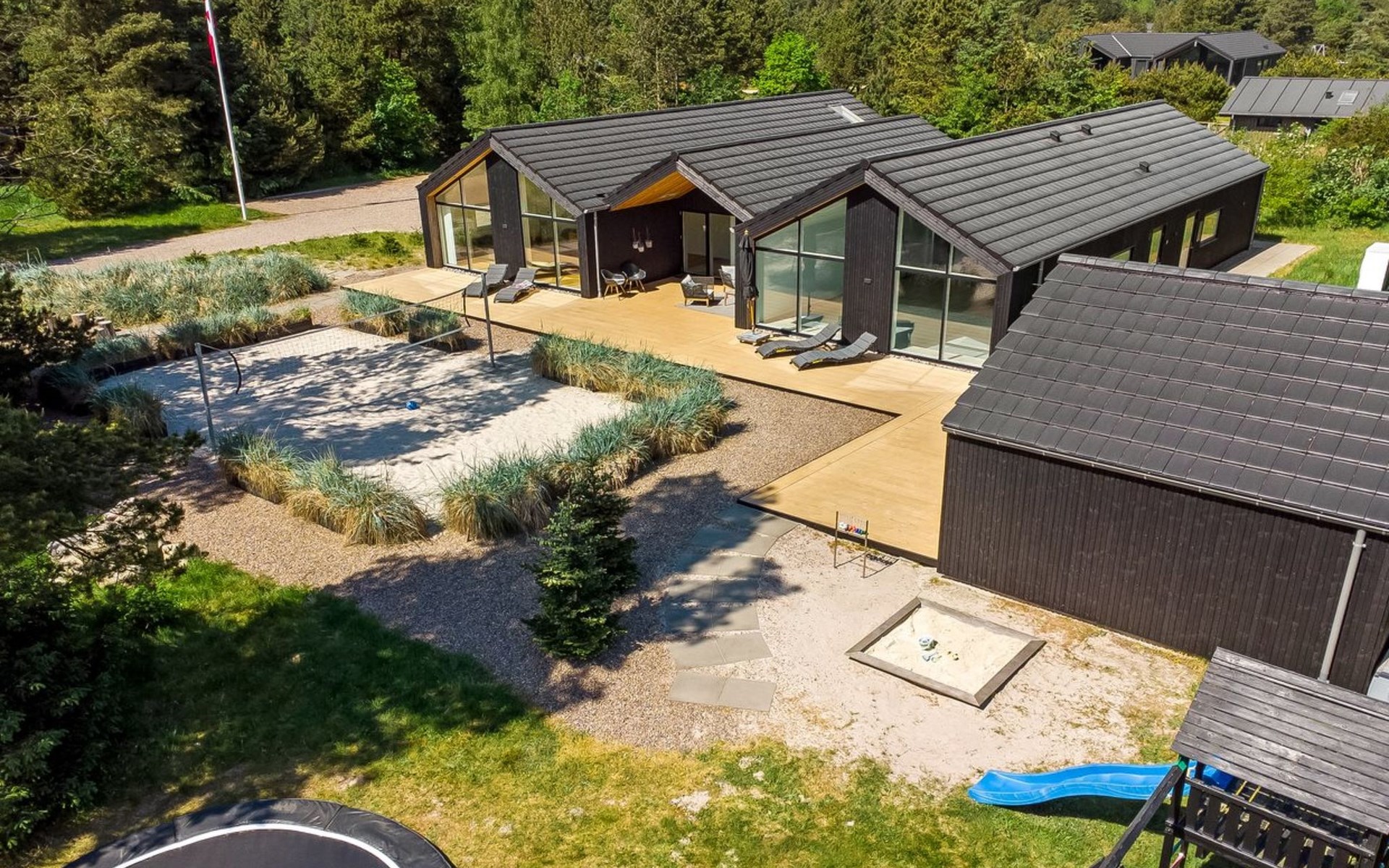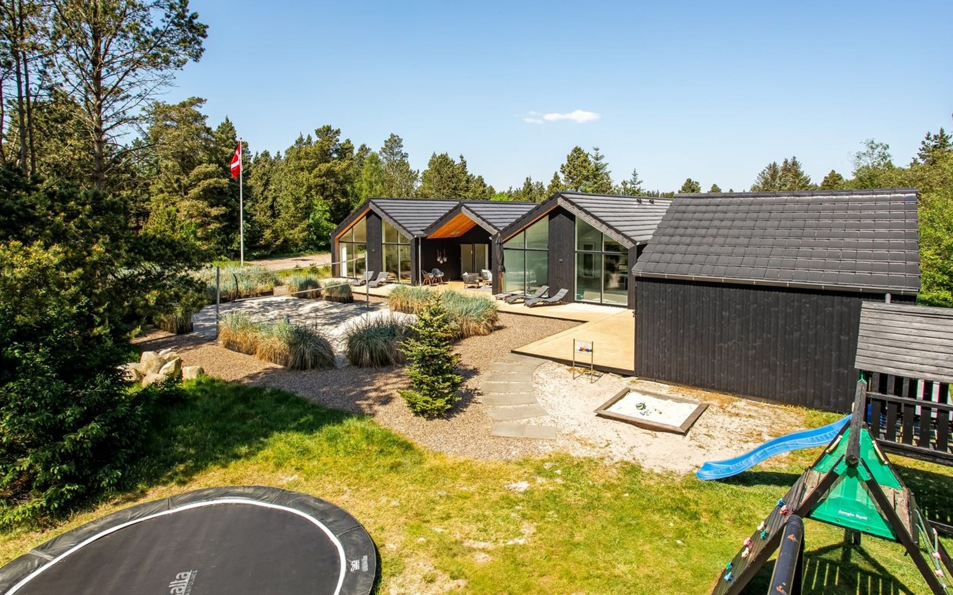 Eengezinswoning, bouwjaar 2020. 1.4 km van zee. Voor alleengebruik: wild terrein 2.900 m2, overdekt zwembad (3 x 5 m, 1.9.3 m2, 145 - 145 cm diepte). Buitendouche, terras (200 m2), barbecue, stookplaats, kinderspeelplaats (glijbaan, schommel). In het huis: sauna, tafelvoetbal, trampoline, wasmachine, droger. Parkeerplaats bij het huis. Oplaadstation. Levensmiddelenwinkel 1.4 km. De eigenaar accepteert geen jeugdgroepen.