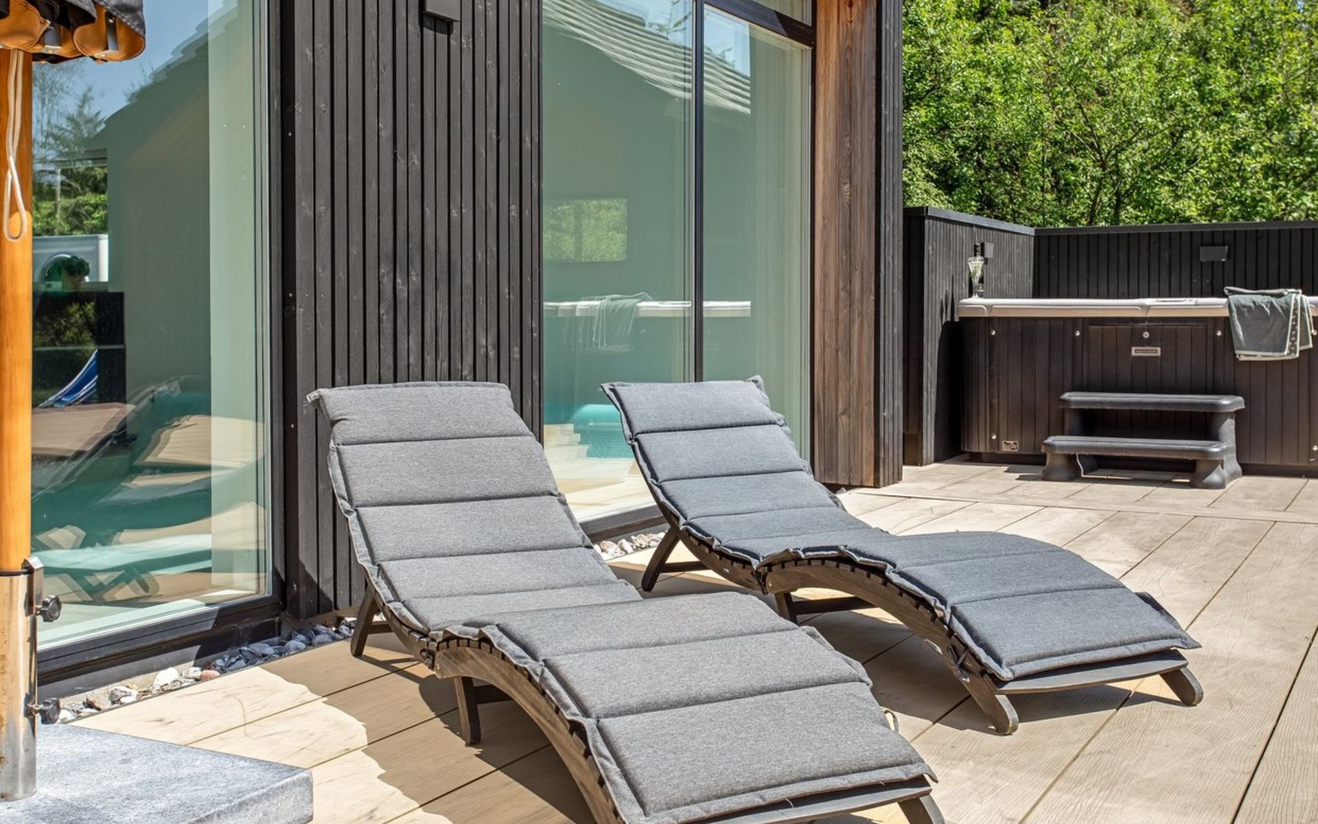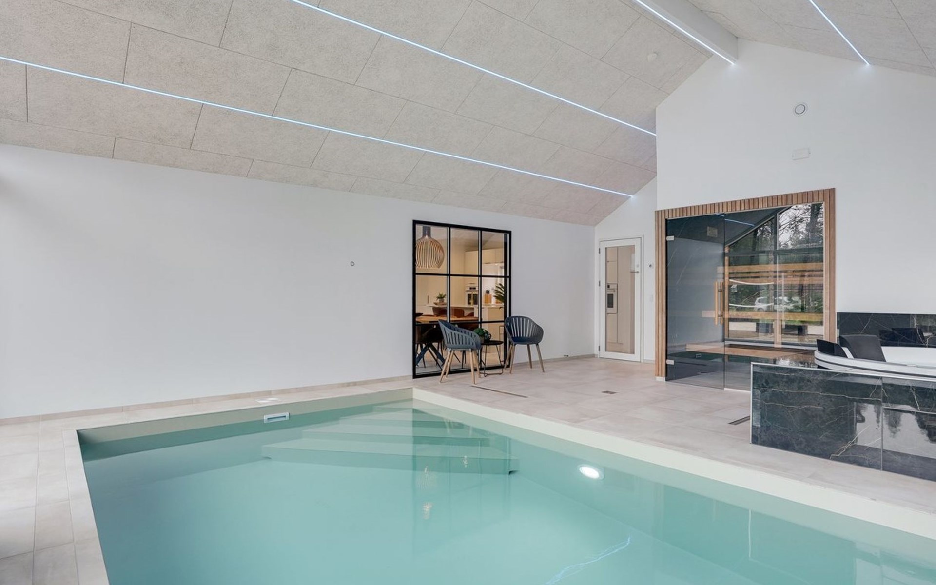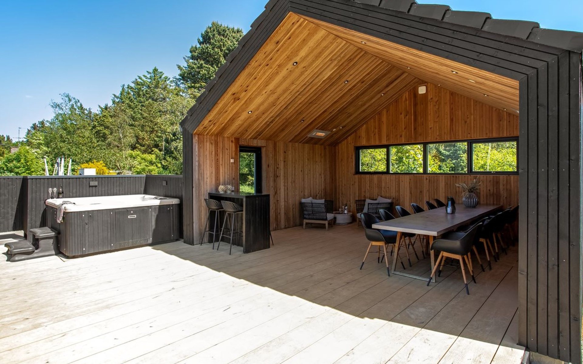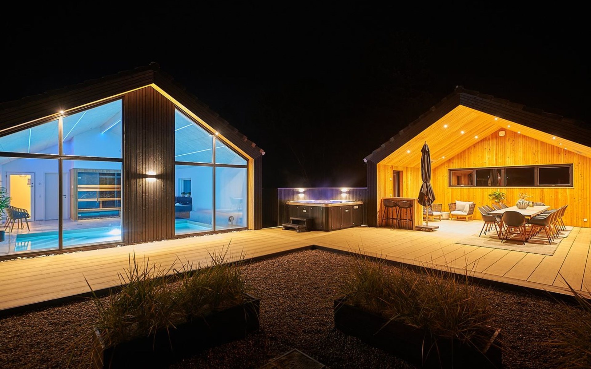 Eengezinswoning, bouwjaar 2020. 1.4 km van zee. Voor alleengebruik: wild terrein 2.900 m2, overdekt zwembad (3 x 5 m, 1.9.3 m2, 145 - 145 cm diepte). Buitendouche, terras (200 m2), barbecue, stookplaats, kinderspeelplaats (glijbaan, schommel). In het huis: sauna, tafelvoetbal, trampoline, wasmachine, droger. Parkeerplaats bij het huis. Oplaadstation. Levensmiddelenwinkel 1.4 km. De eigenaar accepteert geen jeugdgroepen.