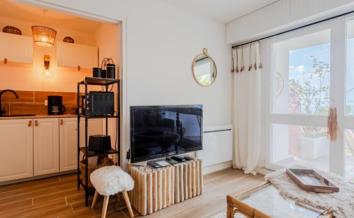 Trouville sur Mer: Residentie "Les Flots Bleus", van 4 verdiepingen. Buiten de plaats, op een heuvel, 900 m van zee, 900 m van het strand. In het complex: lift. (5 treden). Winkel 2 km, levensmiddelenwinkel 2.1 km, supermarkt 2.1 km, bushalte "Trouville Prémanoir" 300 m, station "Deauville-Trouville" 2.4 km, zandstrand "Trouville-sur-mer" 1 km, overdekt zwembad 2 km, thermaalbad "Trouville sur Mer" 2 km. Golfterrein (18 holes) 6.1 km, zeilschool 1.5 km, tennis 1.5 km. Attracties in de buurt: Honfleur 13 km, Mémorial de Caen 64 km, Plage du débarquement d'Arromanches 97 km. Auto noodzakelijk. De sleuteloverdracht vindt plaats bij het agentschap Interhome in Deauville. Vergelijkbare accommodaties kunnen worden geboekt.