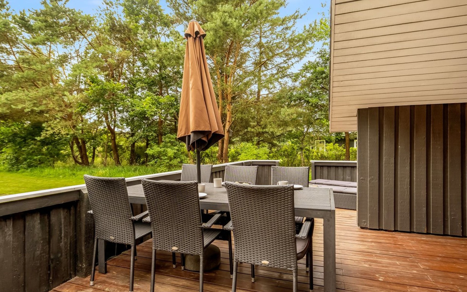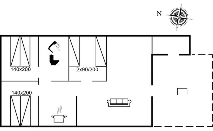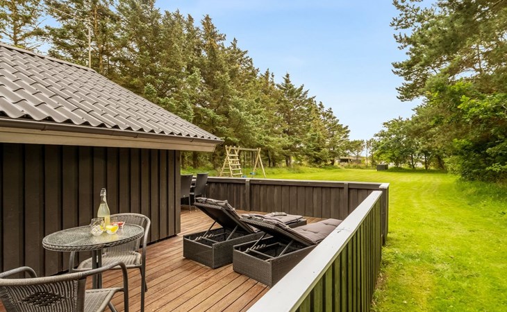 Eengezinswoning, bouwjaar 1988. 600 m van zee. Voor alleengebruik: wild terrein 2.710 m2. Terras (30 m2), kinderspeelplaats (schommel). In het huis: wasmachine. Parkeerplaats bij het huis. Levensmiddelenwinkel 6 km. De eigenaar accepteert geen jeugdgroepen.