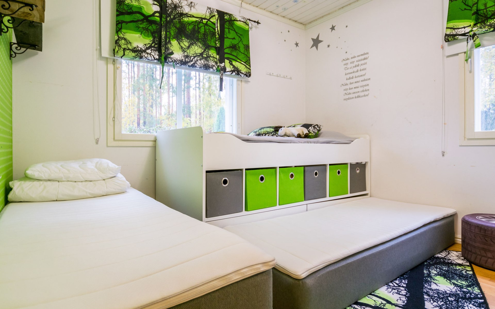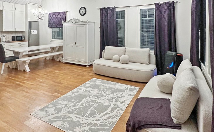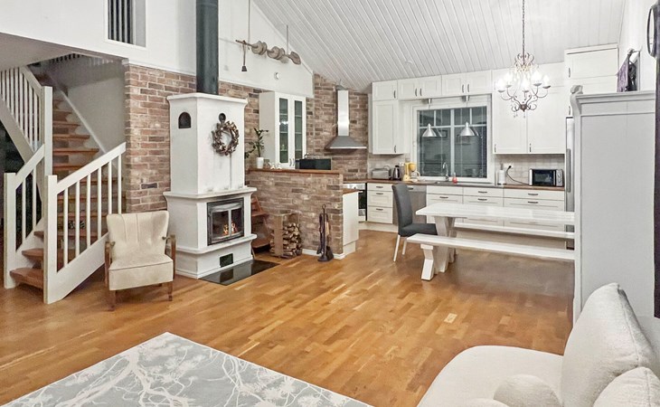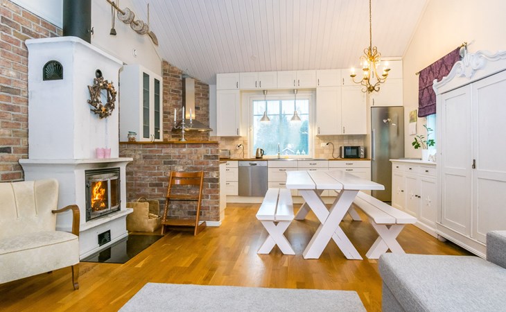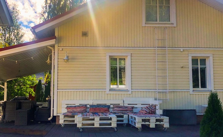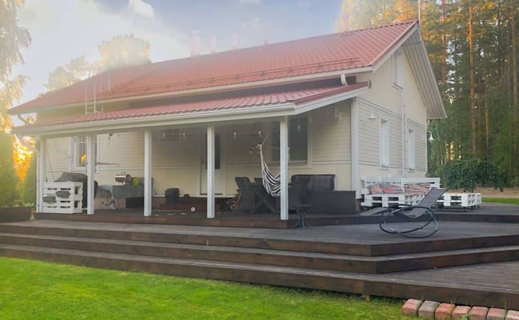 Located 10 km west of Kankaanpää, Lake Venesjärvi 550 m, featuring a public swimming beach and a private rowing boat. Tyttelsson is a spacious wooden villa (built in 2009) with an entrance hall, a large living room, and a combined kitchen/dining area. The kitchen is well-equipped with a long dining table that accommodates all guests for meals at once. The living room has a fireplace.