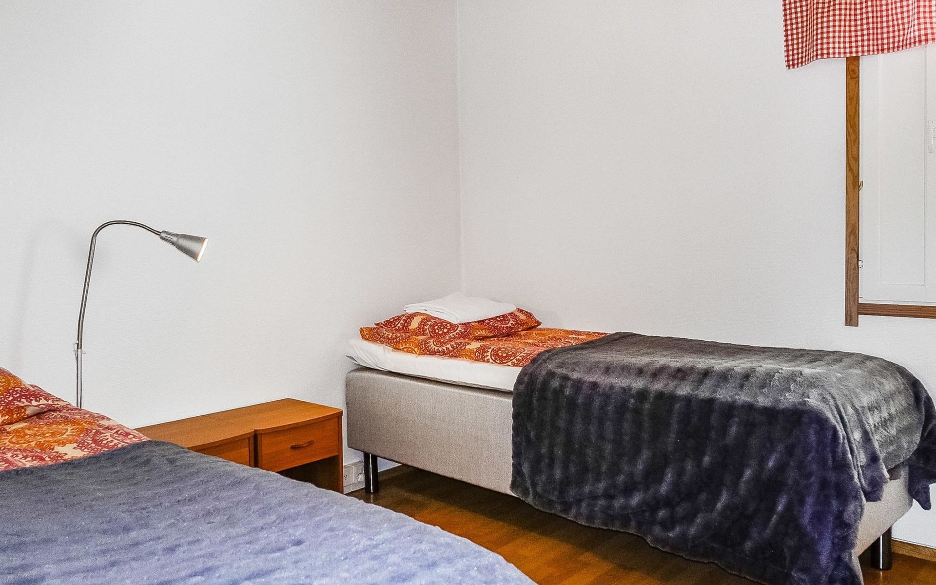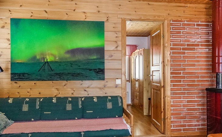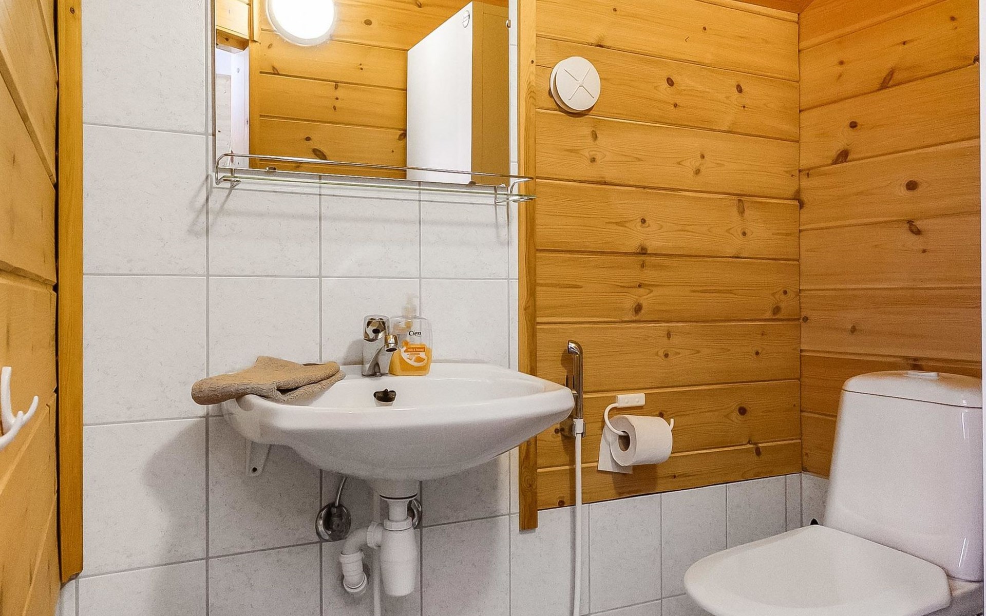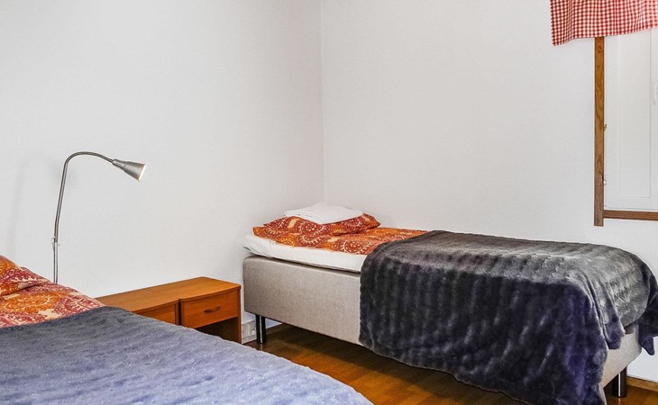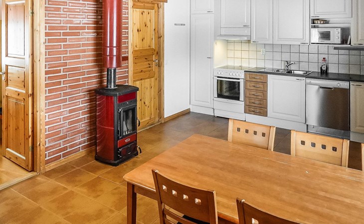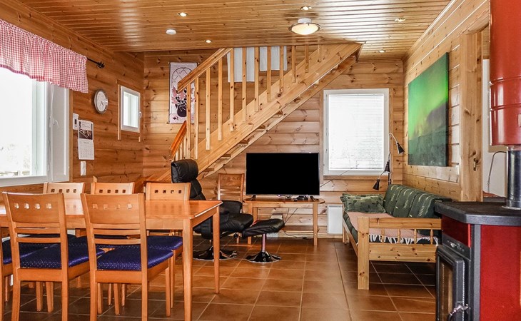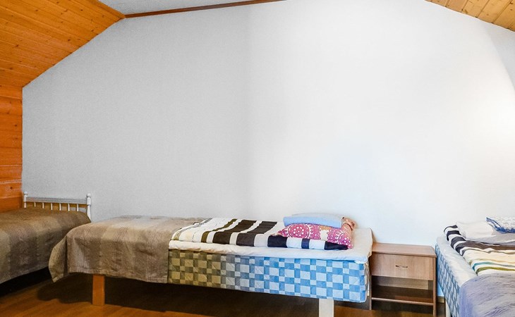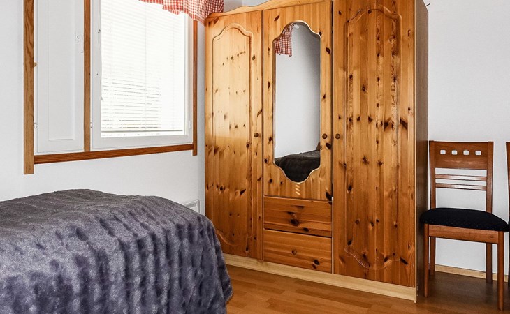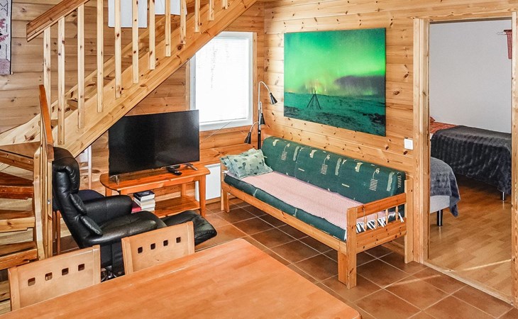 Wooden apartment in the semi-detached house, built in 2002. Living room/kitchen with sofa, on the ground floor bedroom with 2 beds, on the upper floor bedroom with 3 beds, sauna, washroom/WC, WC also on the upper floor, small terrace.