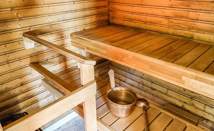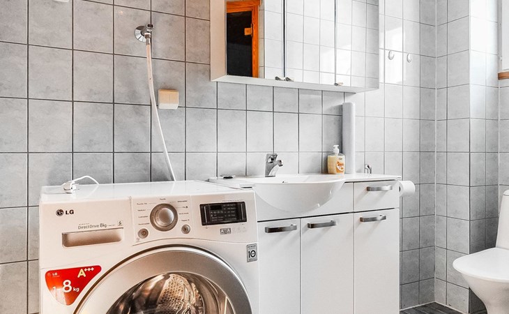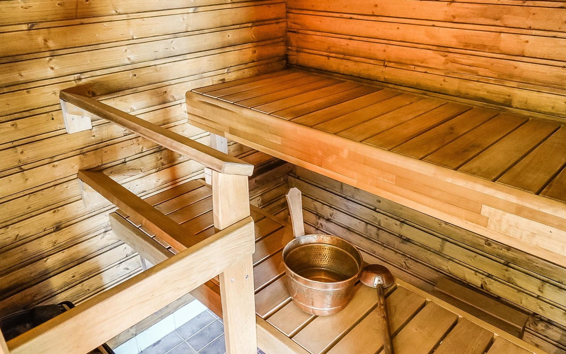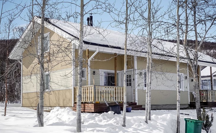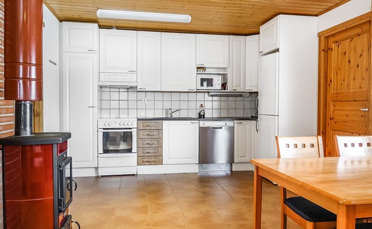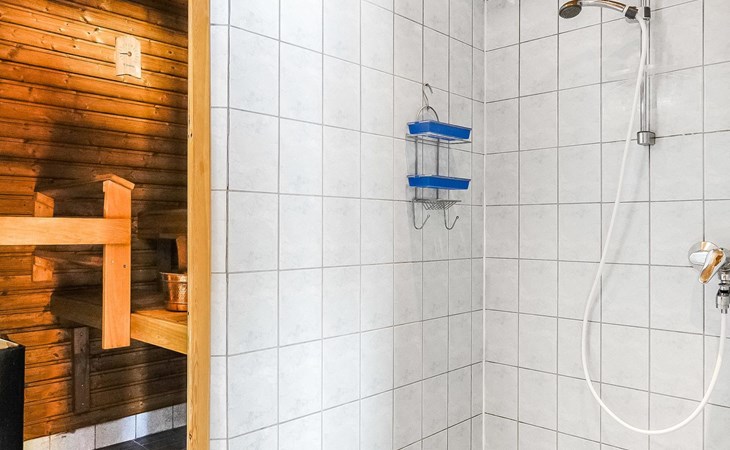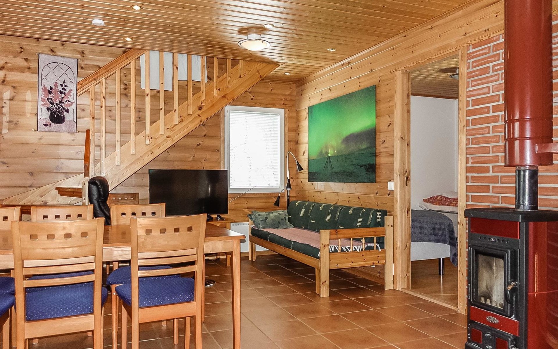 Wooden apartment in the semi-detached house, built in 2002. Living room/kitchen with sofa, on the ground floor bedroom with 2 beds, on the upper floor bedroom with 3 beds, sauna, washroom/WC, WC also on the upper floor, small terrace.
