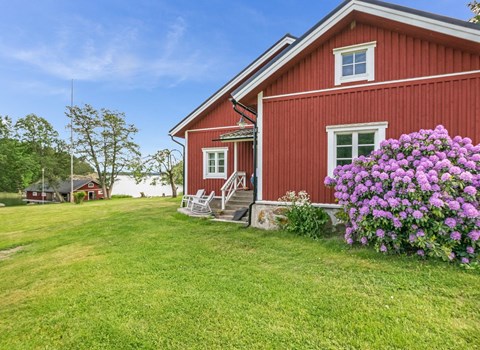 Entrance to sauna via covered porch. Fireplace, baking oven, air source heat pump and video projector with screen in the living room/kitchen.