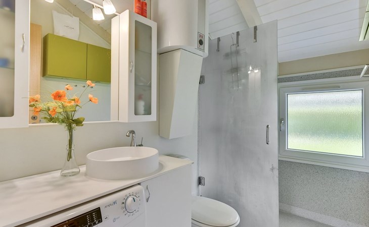 Eengezinswoning, bouwjaar 1980. 350 m van zee. Voor alleengebruik: terrein 720 m2, verzorgde tuin. Terras (90 m2), kinderspeelplaats (schommel). In het huis: wasmachine, droger. Parkeerplaats bij het huis. Levensmiddelenwinkel 3.5 km. De eigenaar accepteert geen jeugdgroepen.