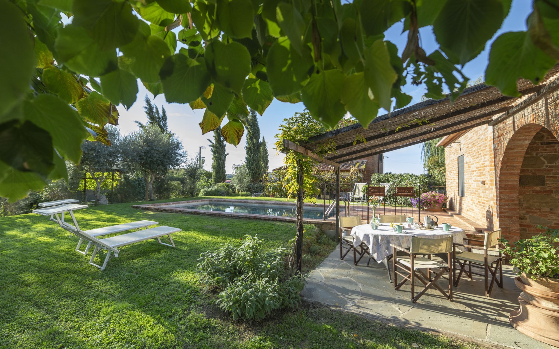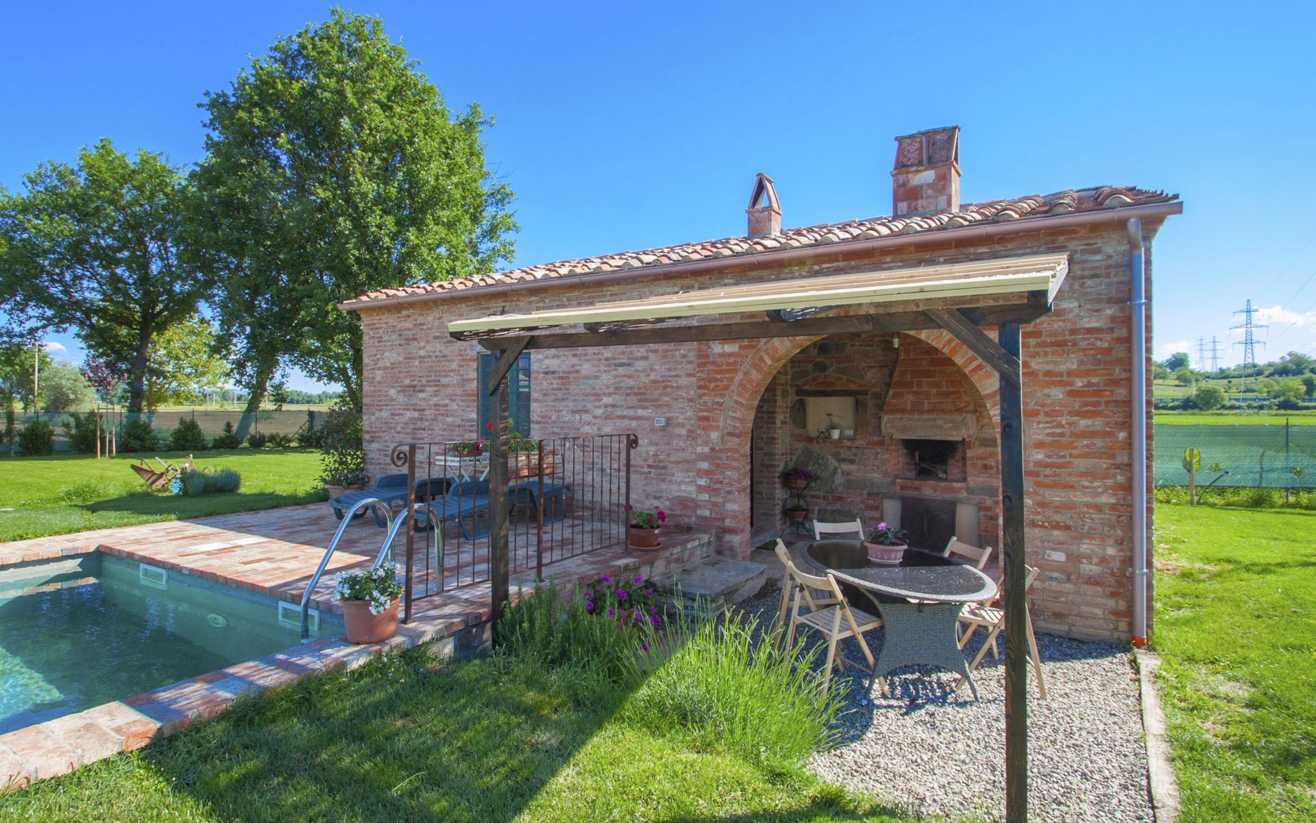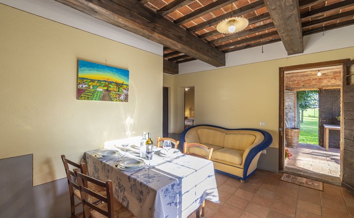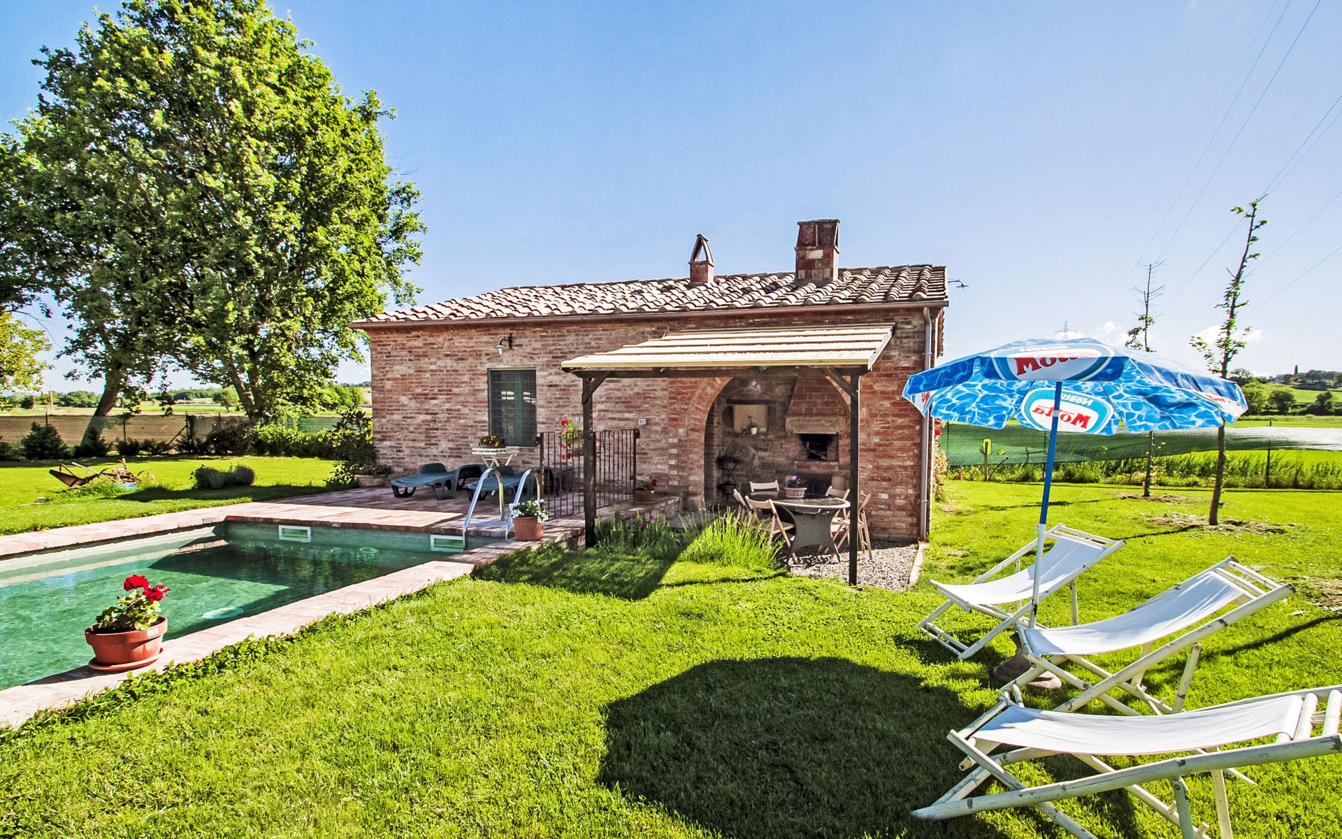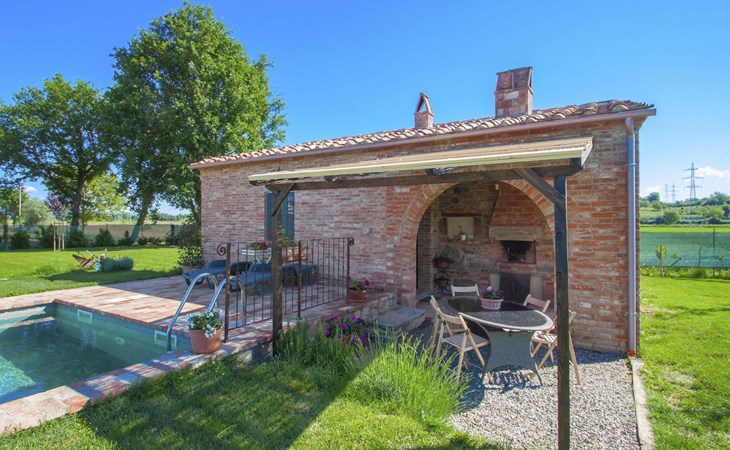 Gezellige eengezinswoning "La Capannina", vrijstaand, gerenoveerd, omgeven door velden. Foiano della Chiana, 6 km van het centrum van Foiano della Chiana, zonnige ligging, 25 km van het meer, te midden van groen. Voor medegebruik: terrein 2.000 m2 (omheind). Voor alleengebruik: tuin 1.000 m2 (omheind), openluchtzwembad (8 x 4 m, 150 cm diepte, seizoensgebonden beschikbaarheid: 01.Mei. - 30.Sep.). Douche/WC bij het zwembad, prieel, tuinmeubelen, barbecue, grill. In het huis: internetaansluiting. Toegangsweg (1.5 km onverharde weg). Parkeerplaats op het terrein. Winkel 2 km, supermarkt 5 km, winkelcentrum 3 km, restaurant 3 km, bushalte 5 km, thermaalbad "Rapolano Terme" 23 km, meer (zwemmen) "Trasimeno" 25 km. Golfterrein (12 holes) 10 km, manege 3 km. Attracties in de buurt: Cortona 20 km, Montepulciano 20 km, Pienza 30 km, Castiglione Del Lago 31 km, Arezzo 32 km, San quirico D'Orcia 38 km. Auto noodzakelijk. Geschikt voor families. Het objekt is geschikt voor 4 volwassenen + 1 kinderen. De eigenaar woont op hetzelfde terrein. De eigenaar heeft een hond.