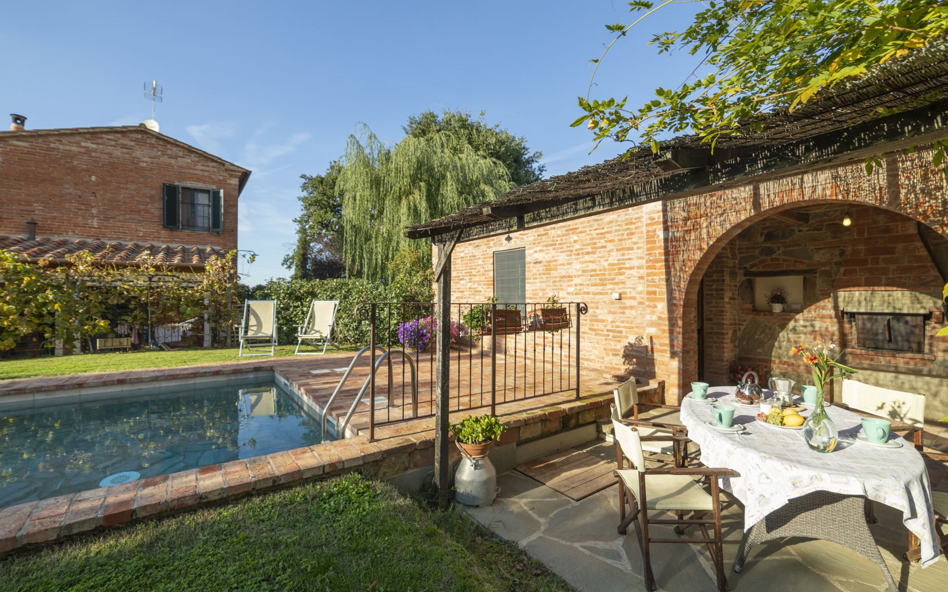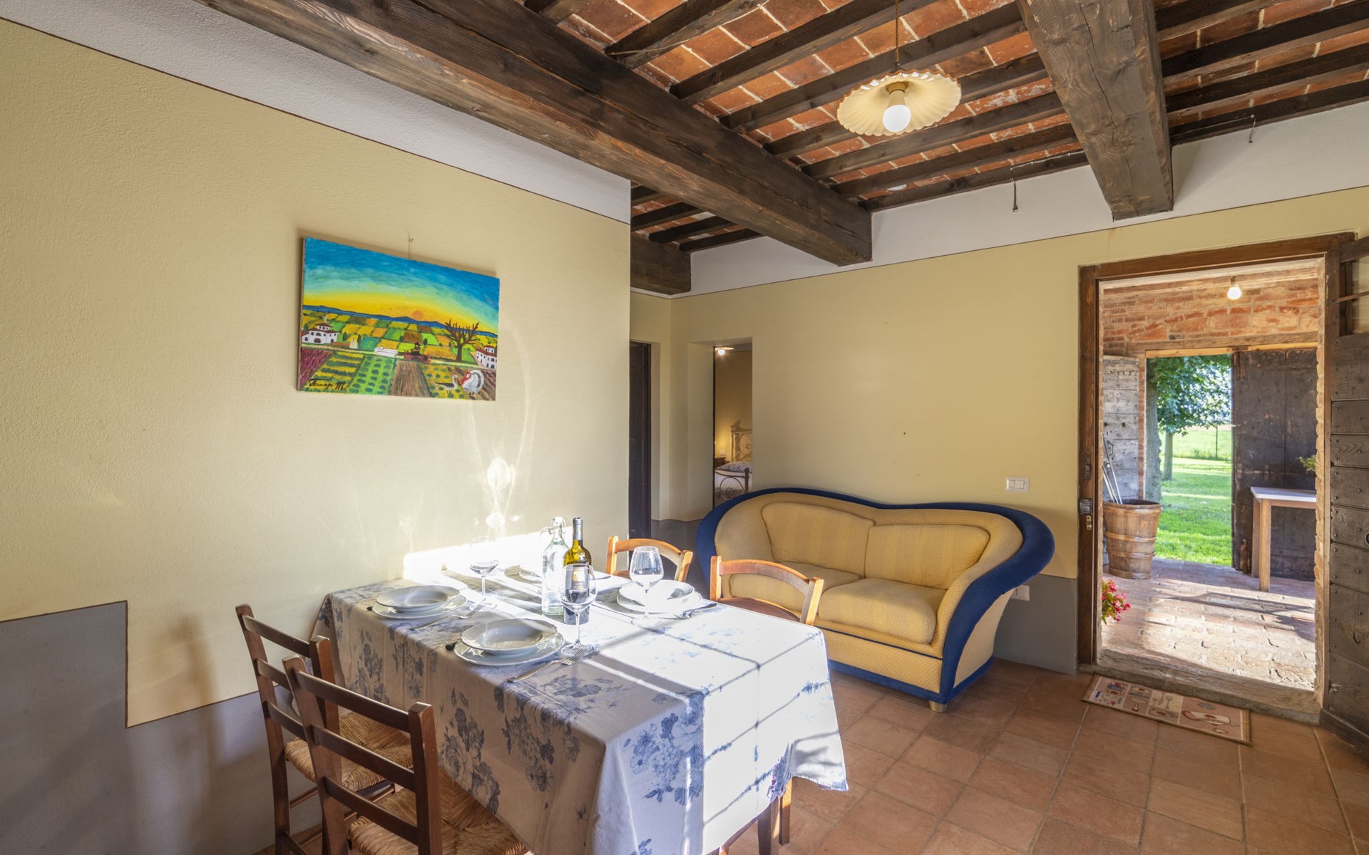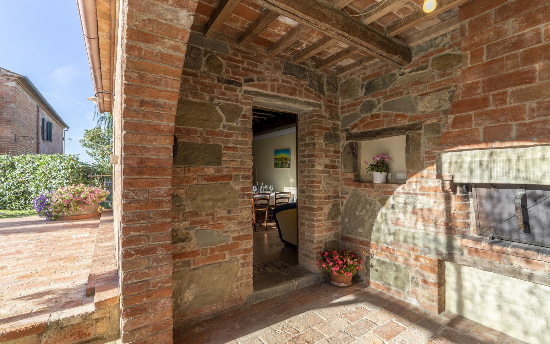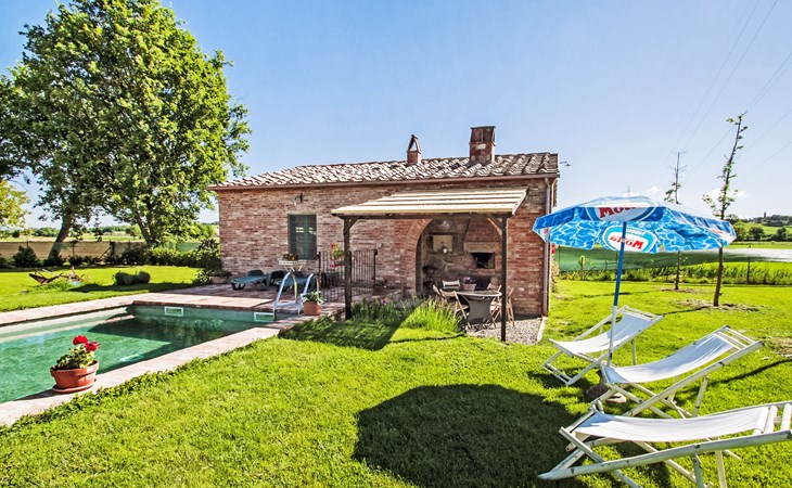 Gezellige eengezinswoning "La Capannina", vrijstaand, gerenoveerd, omgeven door velden. Foiano della Chiana, 6 km van het centrum van Foiano della Chiana, zonnige ligging, 25 km van het meer, te midden van groen. Voor medegebruik: terrein 2.000 m2 (omheind). Voor alleengebruik: tuin 1.000 m2 (omheind), openluchtzwembad (8 x 4 m, 150 cm diepte, seizoensgebonden beschikbaarheid: 01.Mei. - 30.Sep.). Douche/WC bij het zwembad, prieel, tuinmeubelen, barbecue, grill. In het huis: internetaansluiting. Toegangsweg (1.5 km onverharde weg). Parkeerplaats op het terrein. Winkel 2 km, supermarkt 5 km, winkelcentrum 3 km, restaurant 3 km, bushalte 5 km, thermaalbad "Rapolano Terme" 23 km, meer (zwemmen) "Trasimeno" 25 km. Golfterrein (12 holes) 10 km, manege 3 km. Attracties in de buurt: Cortona 20 km, Montepulciano 20 km, Pienza 30 km, Castiglione Del Lago 31 km, Arezzo 32 km, San quirico D'Orcia 38 km. Auto noodzakelijk. Geschikt voor families. Het objekt is geschikt voor 4 volwassenen + 1 kinderen. De eigenaar woont op hetzelfde terrein. De eigenaar heeft een hond.