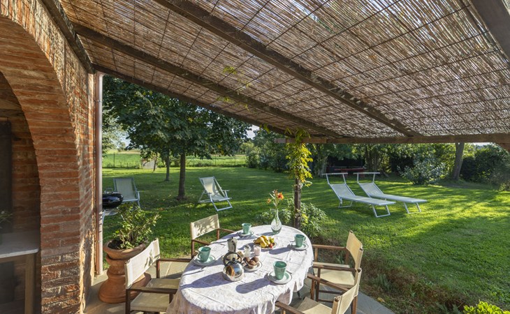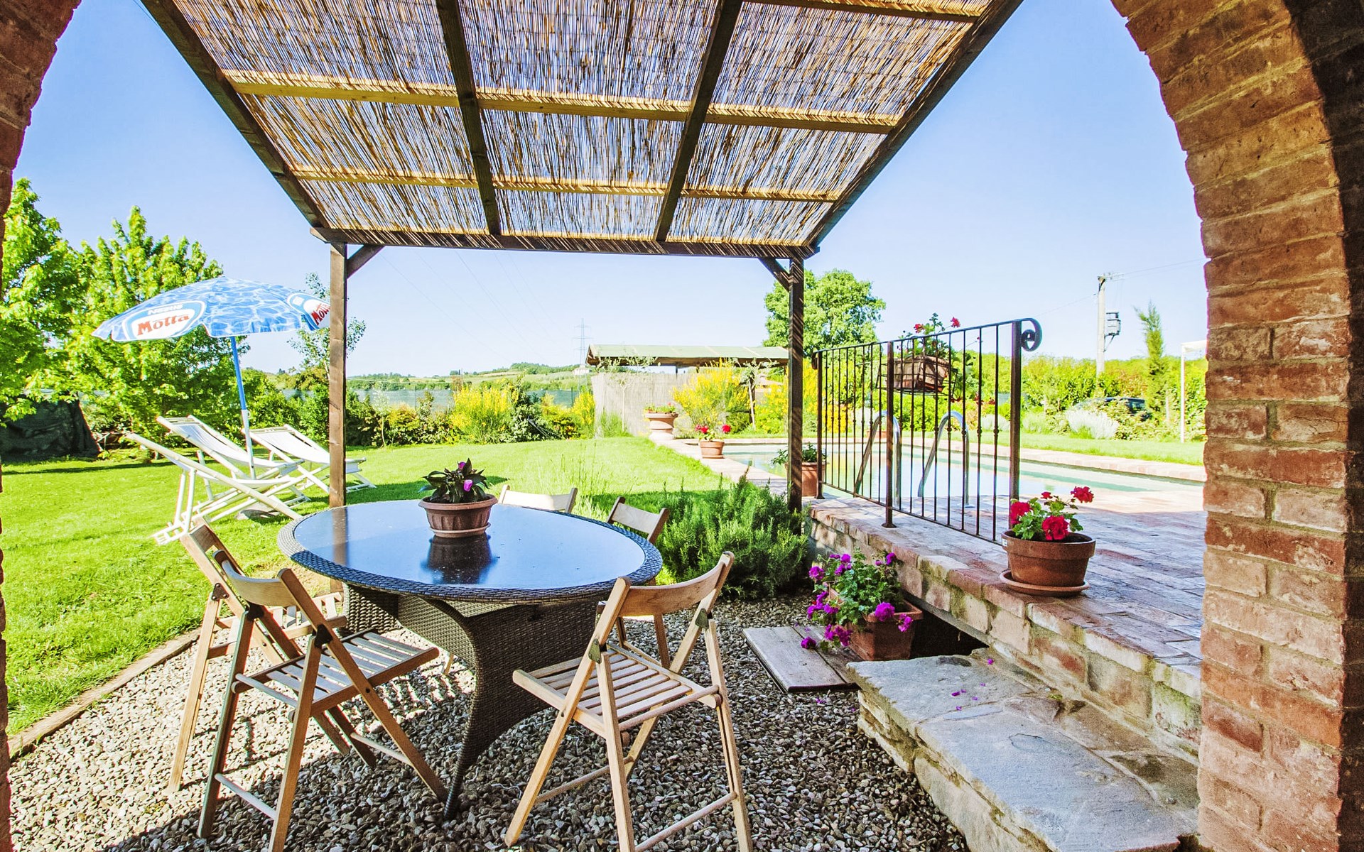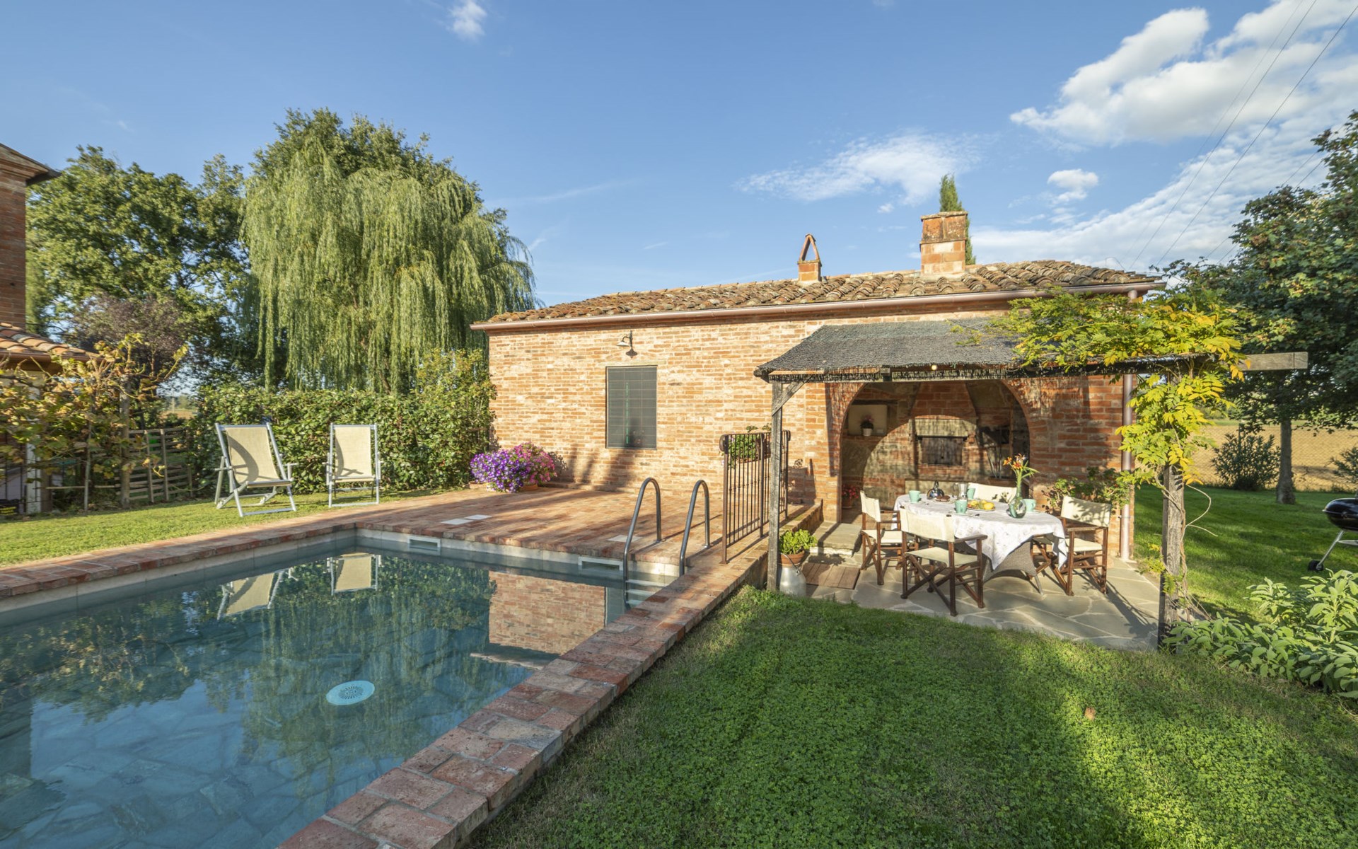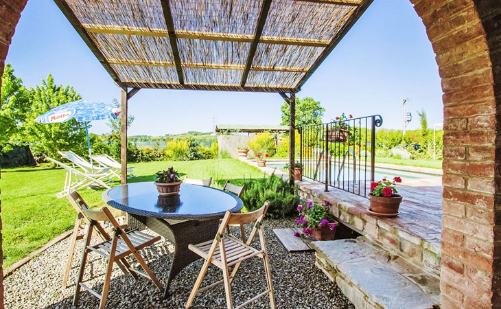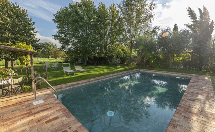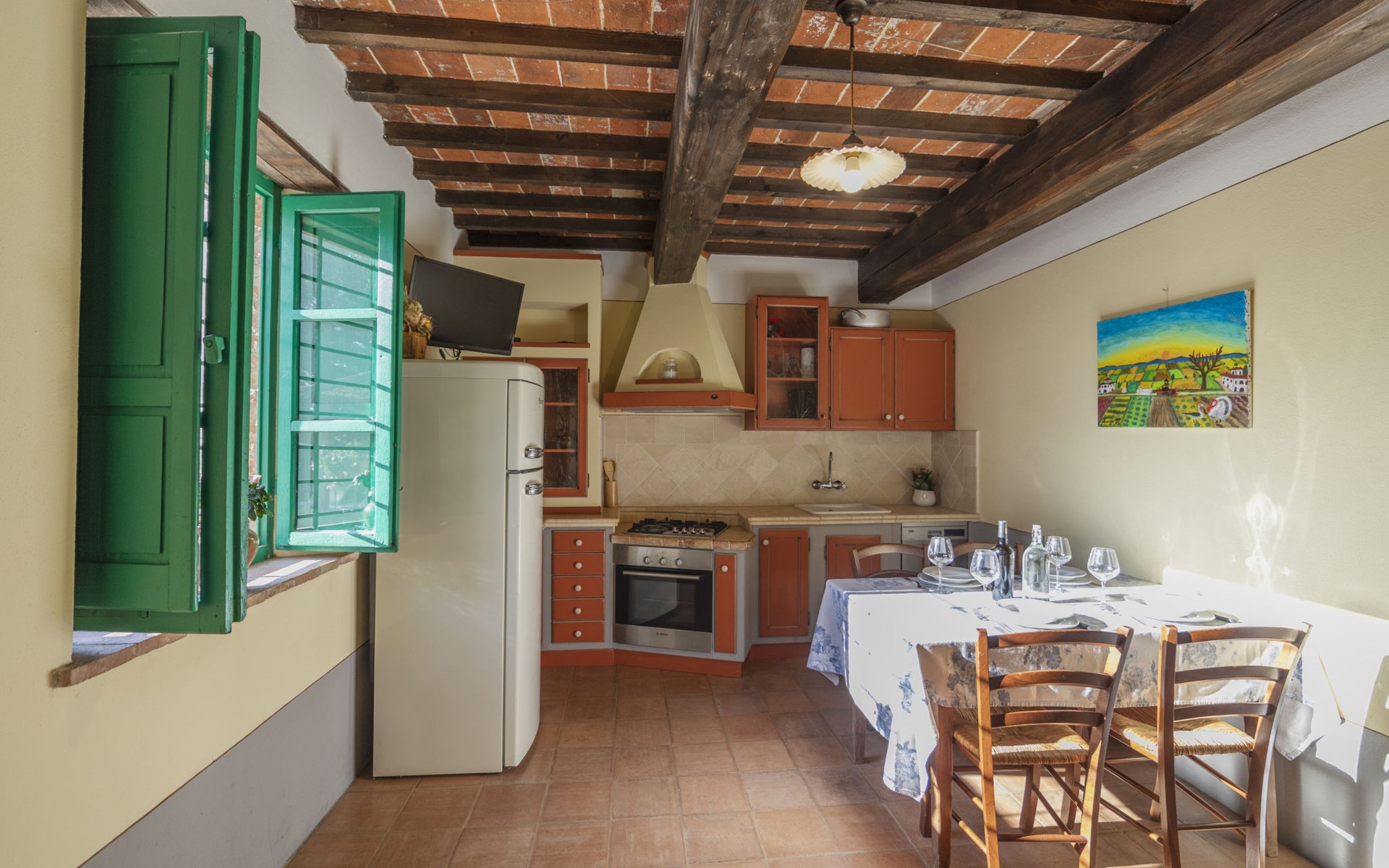 Gezellige eengezinswoning "La Capannina", vrijstaand, gerenoveerd, omgeven door velden. Foiano della Chiana, 6 km van het centrum van Foiano della Chiana, zonnige ligging, 25 km van het meer, te midden van groen. Voor medegebruik: terrein 2.000 m2 (omheind). Voor alleengebruik: tuin 1.000 m2 (omheind), openluchtzwembad (8 x 4 m, 150 cm diepte, seizoensgebonden beschikbaarheid: 01.Mei. - 30.Sep.). Douche/WC bij het zwembad, prieel, tuinmeubelen, barbecue, grill. In het huis: internetaansluiting. Toegangsweg (1.5 km onverharde weg). Parkeerplaats op het terrein. Winkel 2 km, supermarkt 5 km, winkelcentrum 3 km, restaurant 3 km, bushalte 5 km, thermaalbad "Rapolano Terme" 23 km, meer (zwemmen) "Trasimeno" 25 km. Golfterrein (12 holes) 10 km, manege 3 km. Attracties in de buurt: Cortona 20 km, Montepulciano 20 km, Pienza 30 km, Castiglione Del Lago 31 km, Arezzo 32 km, San quirico D'Orcia 38 km. Auto noodzakelijk. Geschikt voor families. Het objekt is geschikt voor 4 volwassenen + 1 kinderen. De eigenaar woont op hetzelfde terrein. De eigenaar heeft een hond.