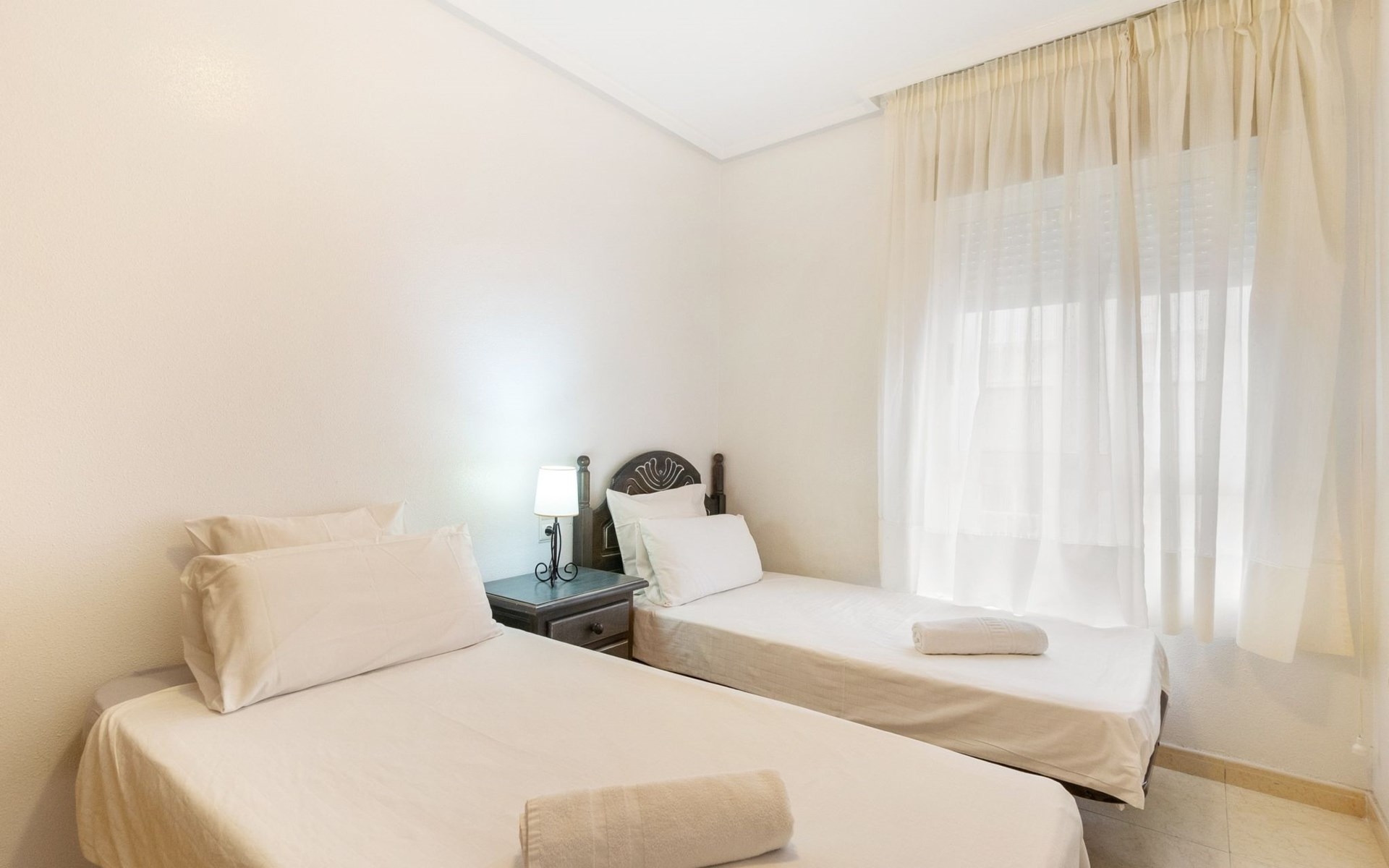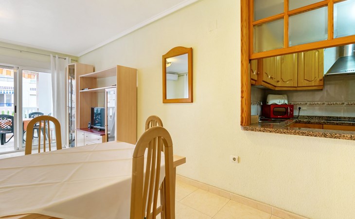 Guardamar del Segura: Groot, gezellig, comfortabel flatgebouw "Edificio Las Americas". In de plaats, 500 m van het centrum van Guardamar del Segura, rustige ligging, 650 m van zee, 600 m van het strand. In het huis: lift. Supermarkt, restaurant 300 m, bushalte "Guardamar – Restautant Xinés" 600 m, treinstation "Orihuela" 28 km, zandstrand "playa de Guardamar del Segura" 600 m.