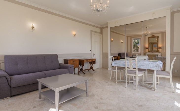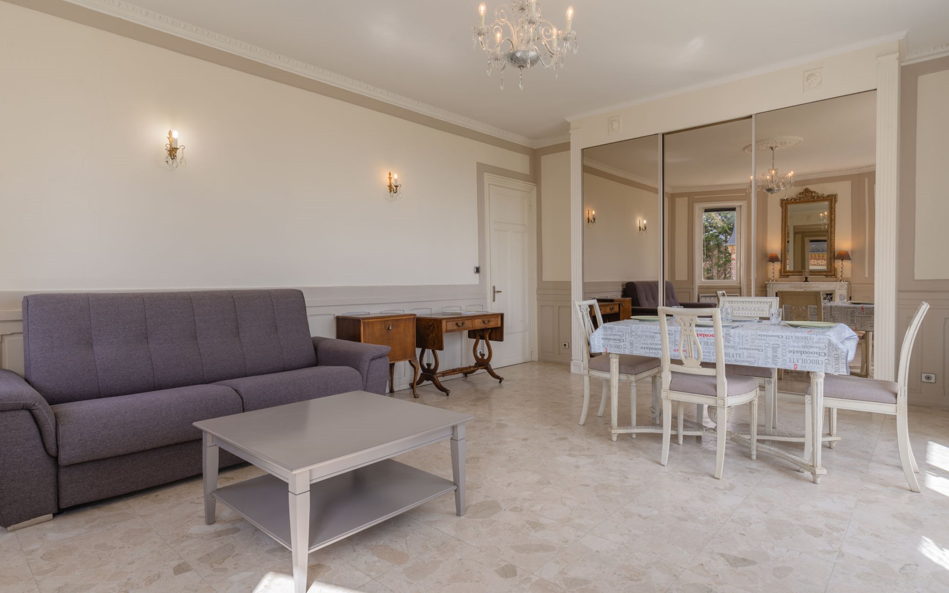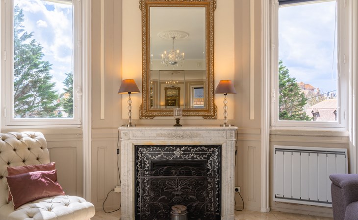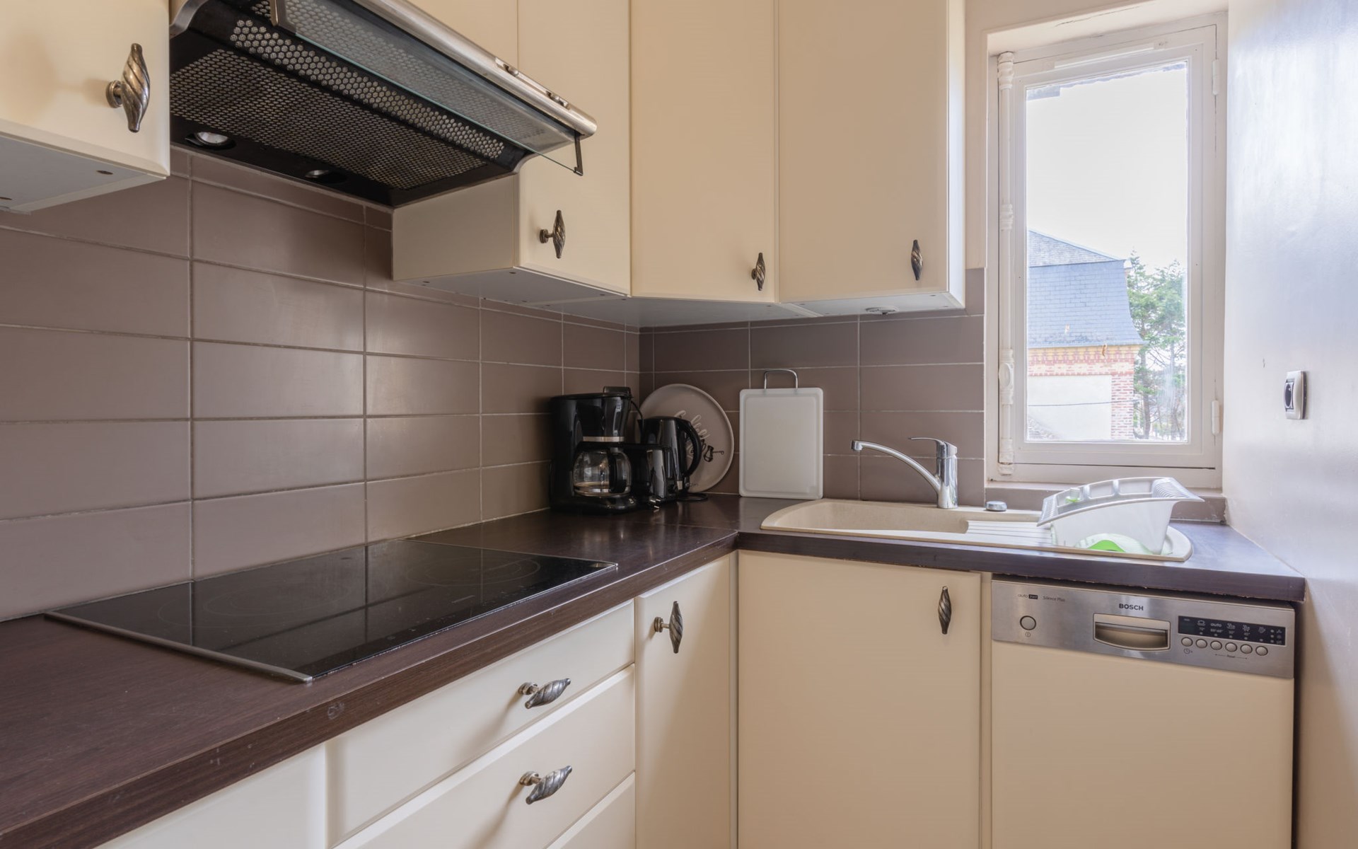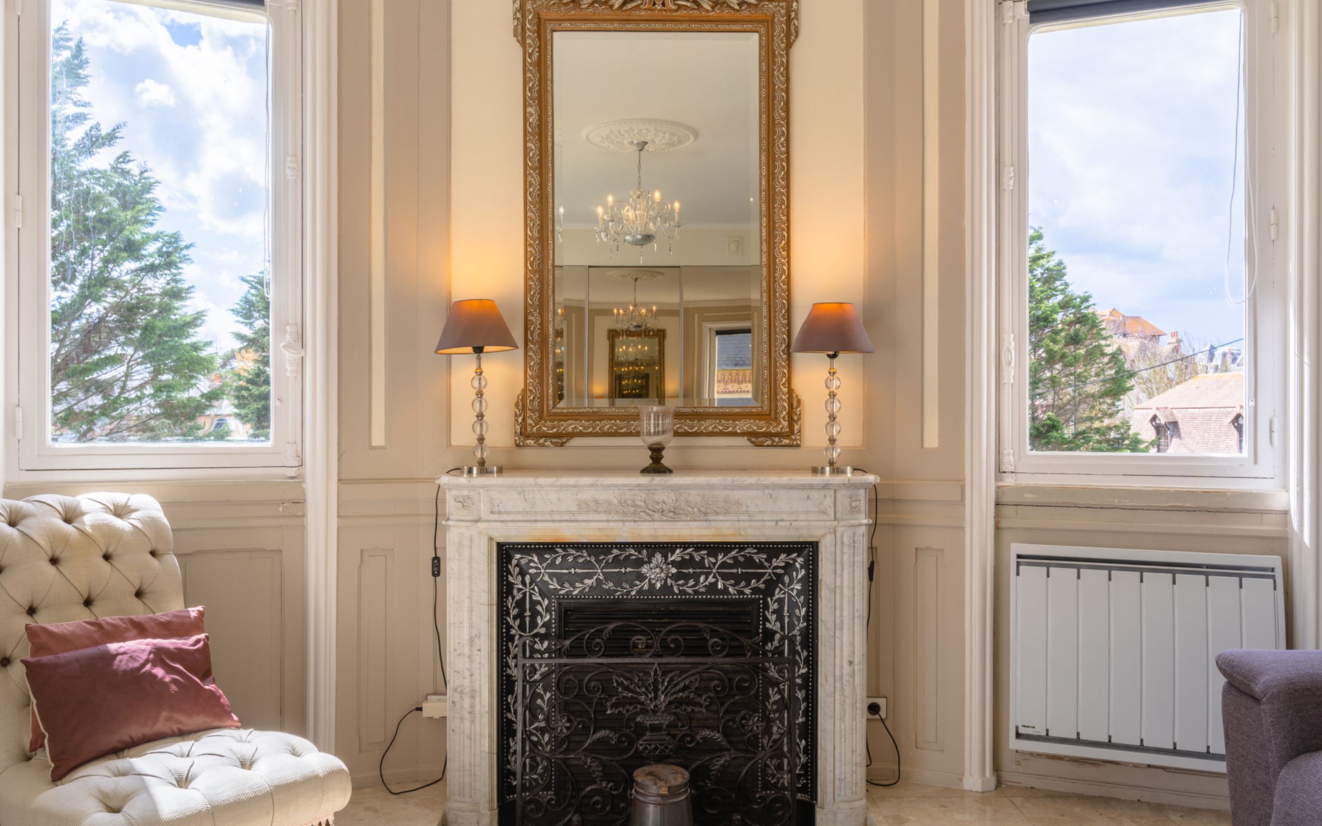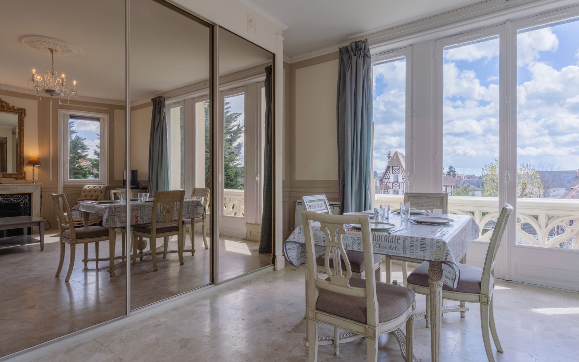 Residentie "Marie Antoinette", van 2 verdiepingen. In het centrum van Cabourg, in de plaats, 200 m van zee, 200 m van het strand. Openbare parkeerplaatsen in de straat. Winkel 200 m, supermarkt 1.7 km, restaurant 200 m, bushalte "Hôtel de Ville" 900 m, thermaalbad "Thalazur" 900 m. Golfterrein (9 holes) 1.8 km. Geen lift.