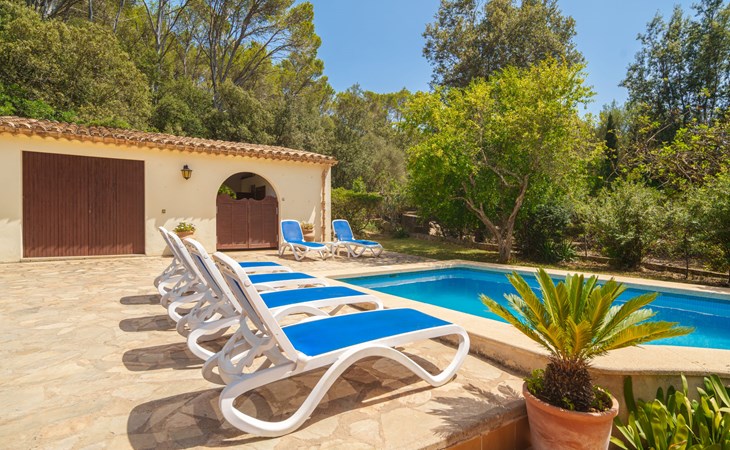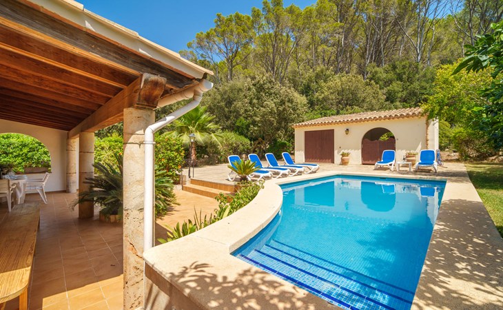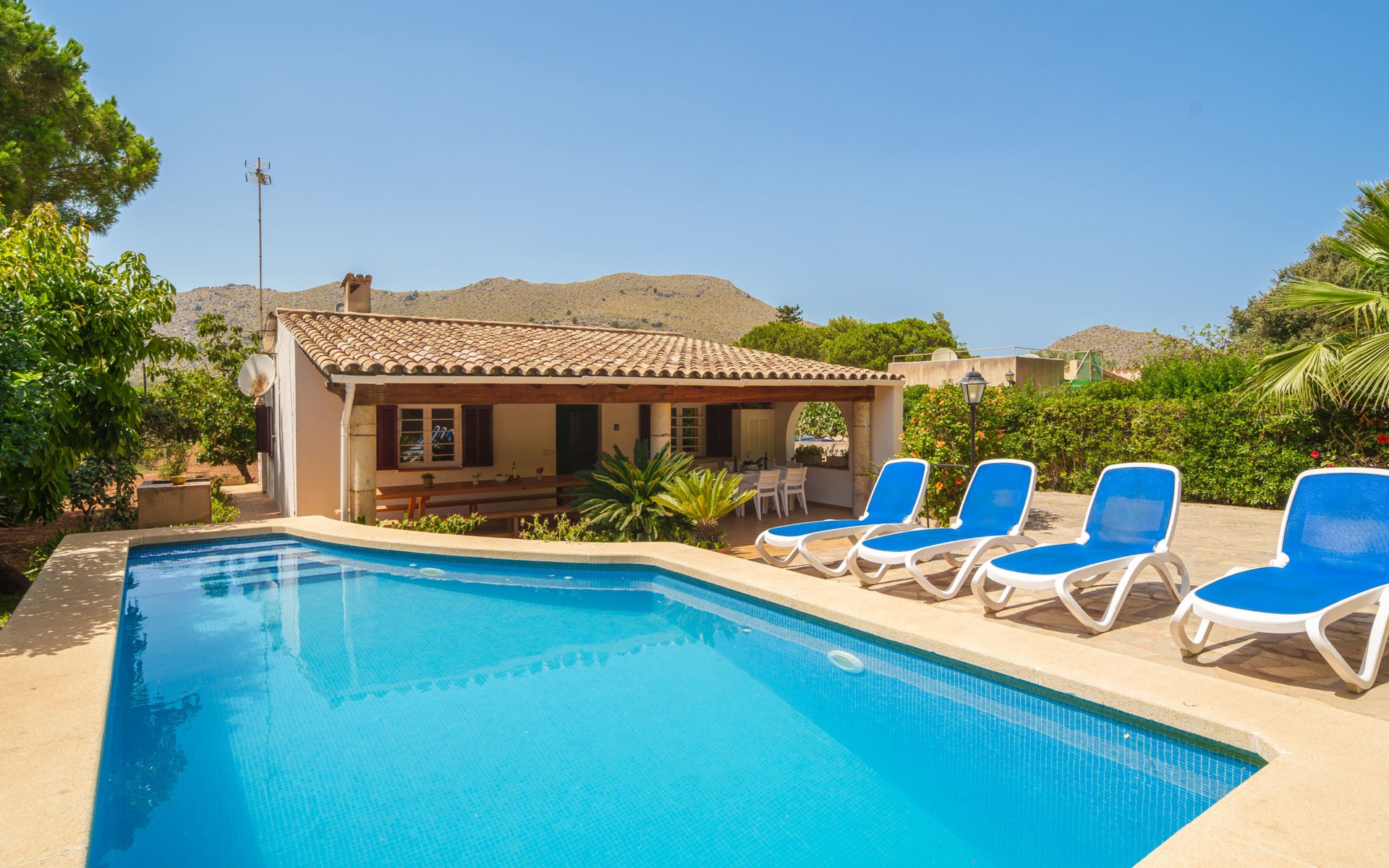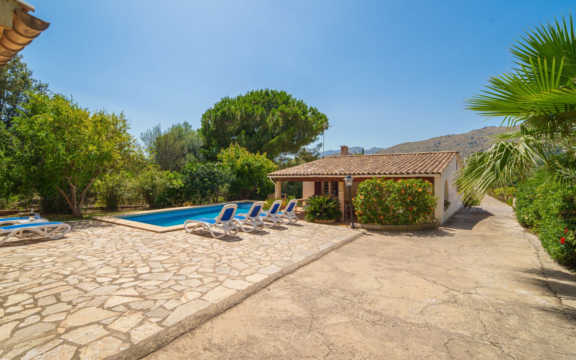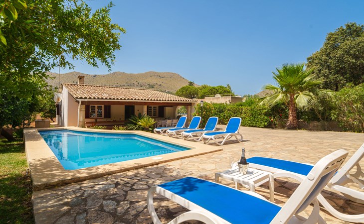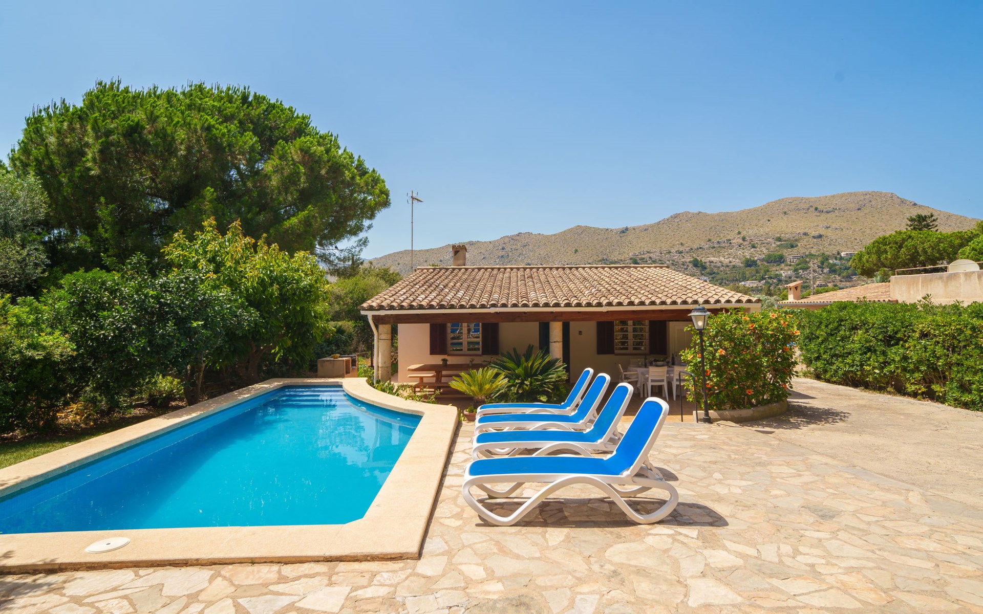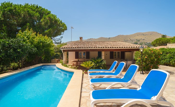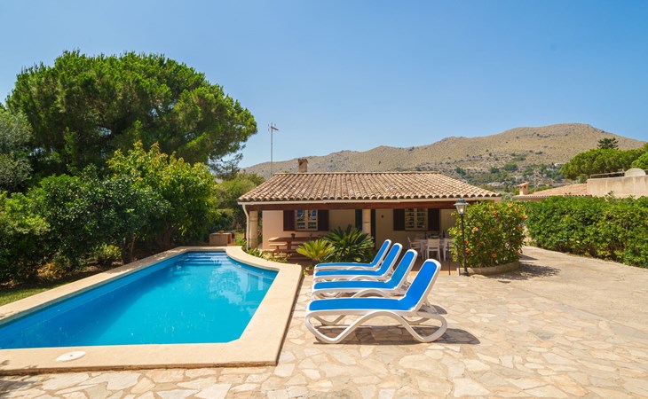 Cottage "Ullastro Pollença", vrijstaand, omgeven door bomen. 5 km van het centrum van Pollensa, 10 km van het centrum van Alcúdia, 2.5 km van het centrum van Puerto Pollensa, 2.8 km van zee. Voor alleengebruik: terrein 2.500 m2 (omheind) met gazon en planten, boomgaard, openluchtzwembad niervormig (6 x 3 m, seizoensgebonden beschikbaarheid: 01.Jan. - 31.Dec.). Douche/WC bij het zwembad, patio, prieel, prieel, tuinmeubelen, barbecue, onderhoud zwembad door de eigenaar/tuinman. Parkeerplaats op het terrein. Winkel 1 km, supermarkt 2.2 km, restaurant 2.5 km, centrum te voet bereikbaar in 25 minuten, bushalte "Gotmar - Las Palmeras 2 (42014)" 1.5 km, zandstrand "Puerto Pollença" 2.8 km kiezelstrand 2.8 km. Jachthaven 3 km, golfterrein (18 holes) 9.1 km, zeilschool 4 km, tennis 1.8 km, manege 12 km, wandelroutes 2 km vanaf het huis, fietspad 100 m. Attracties in de buurt: Pollença,Port de Pollença,Sa Pobla,Búger, Playa de Muro, Faro de Formentor, Cala Sant Vicenç, Santuari de Lluc. Wandelgebied Serra de Tramuntana. Puig de María, Pollença. S'Atalaia d'Alcúdia. Auto noodzakelijk. Groepen jongeren uitsluitend op aanvraag.