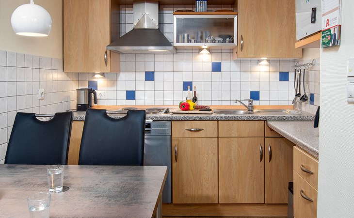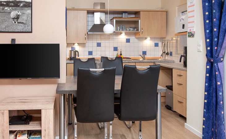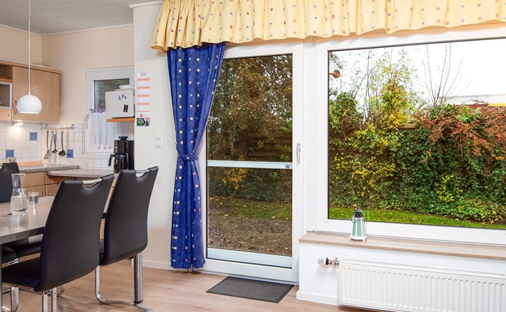 Rijtjeshuis. In de plaats, centrale ligging, van zee, 450 m van het strand, aan een doodlopende weg. In het huis: bergruimte voor fietsen, centrale verwarming. Parkeerplaats op 10 m. Supermarkt 1.5 km, restaurant 100 m, bakkerij 200 m, café, bushalte 500 m, station 1.5 km, veerboot 1.5 km, zandstrand 450 m, openluchtzwembad 14 km, overdekt zwembad 500 m. Golfterrein (18 holes) 8 km, surfschool, midgetgolf 500 m.