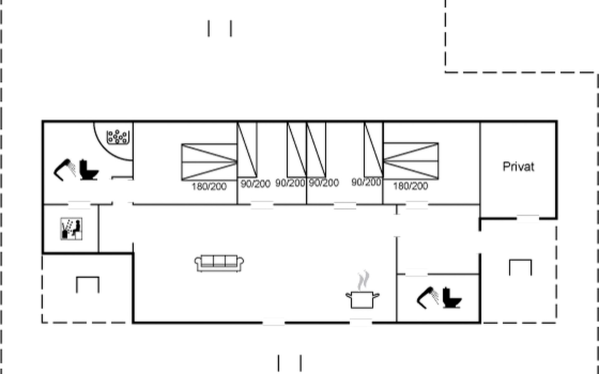 Eengezinswoning, bouwjaar 1964. 1.3 km van zee. Voor alleengebruik: wild terrein 1.375 m2, parkeerplaats bij het huis. Levensmiddelenwinkel 1.1 km. De eigenaar accepteert geen jeugdgroepen.