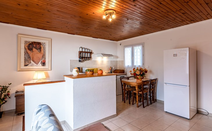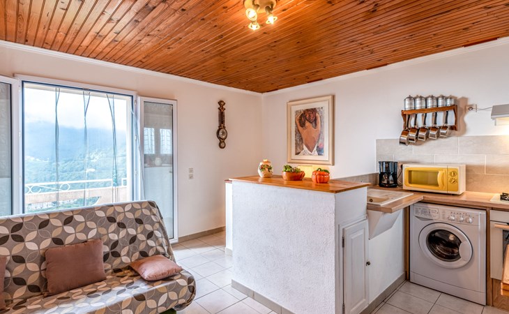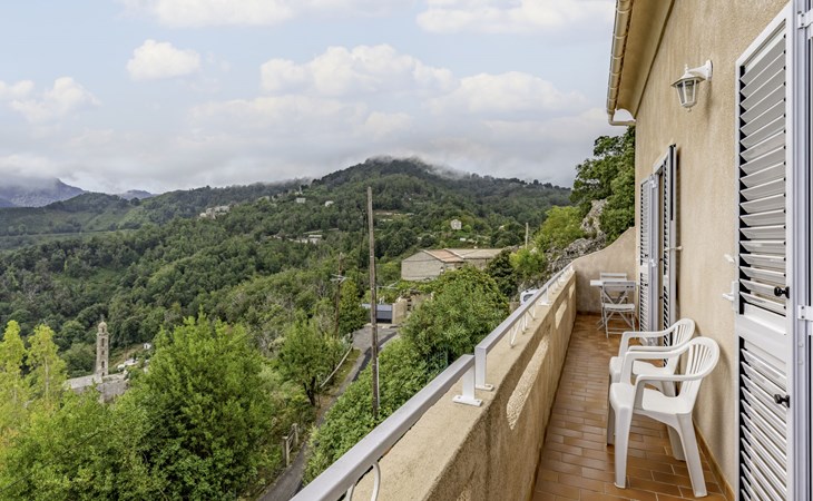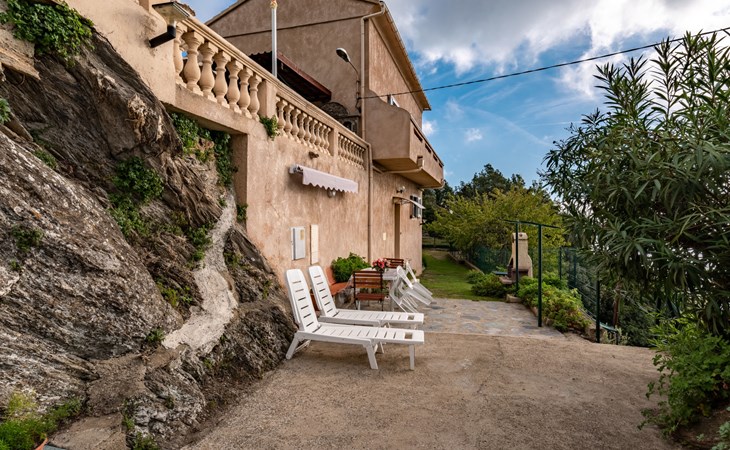 Huis "Filippi", eenzijdig aangebouwd, omgeven door bomen. In de plaats, 50 m van het centrum van San Giovanni di Moriani, 7 km van het centrum van Moriani-Plage, 47 km van het centrum van Bastia, verhoogde ligging tegen een helling, 7 km van zee, 4 km van de rivier, te midden van groen, in het bos. Voor alleengebruik: kleine tuin op verschillende niveaus, 25 m2 met wilde tuin, parkeerplaats (voor 2 auto's) op het terrein. Supermarkt 7 km, restaurant 100 m, bushalte 9 km, zandstrand 7 km. Wandelgebied Sentier Botanique S Giovanni di Moriani 650 m. Auto noodzakelijk.
