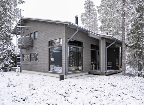 Log cabin 2006, living room, kitchen, bedroom 1: double bed 160 x 200 cm, bedroom 2: bunk bed where upper bed is 75 x 190 cm and lower bed is 140 x 190 cm (when spread), bedroom 3: spreadable sofa bed 140 x 200 cm, WC with shower, two glazed terraces, air source heat pump.