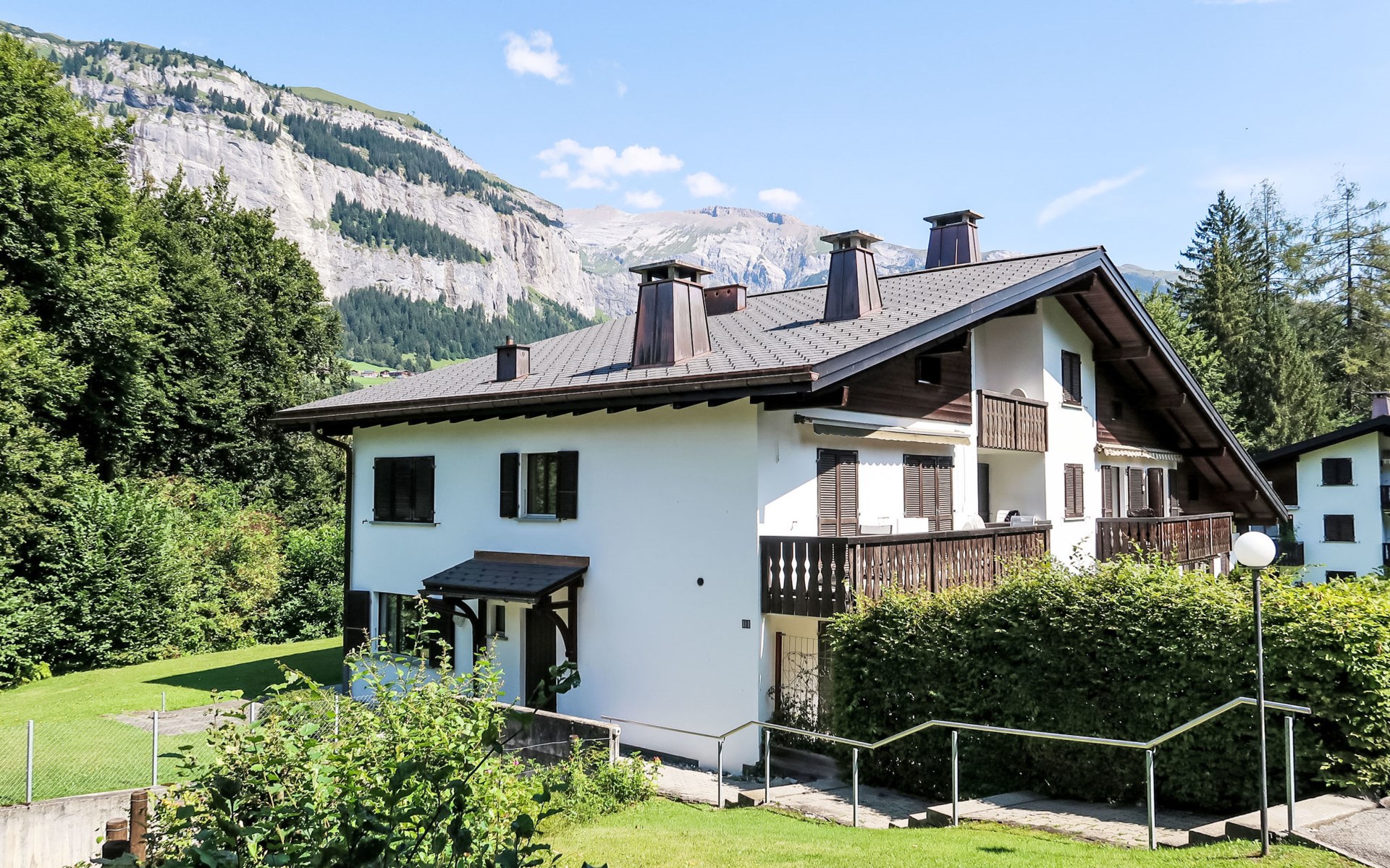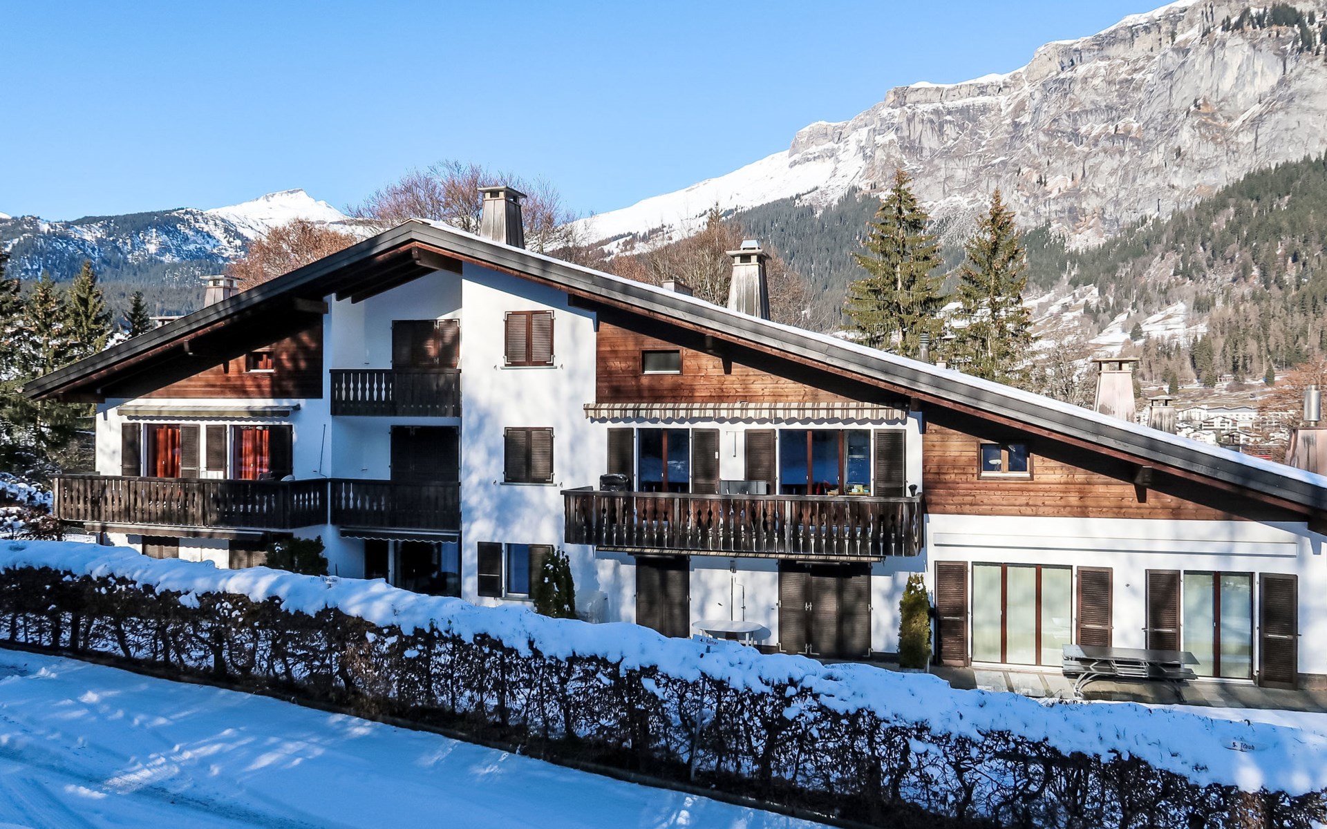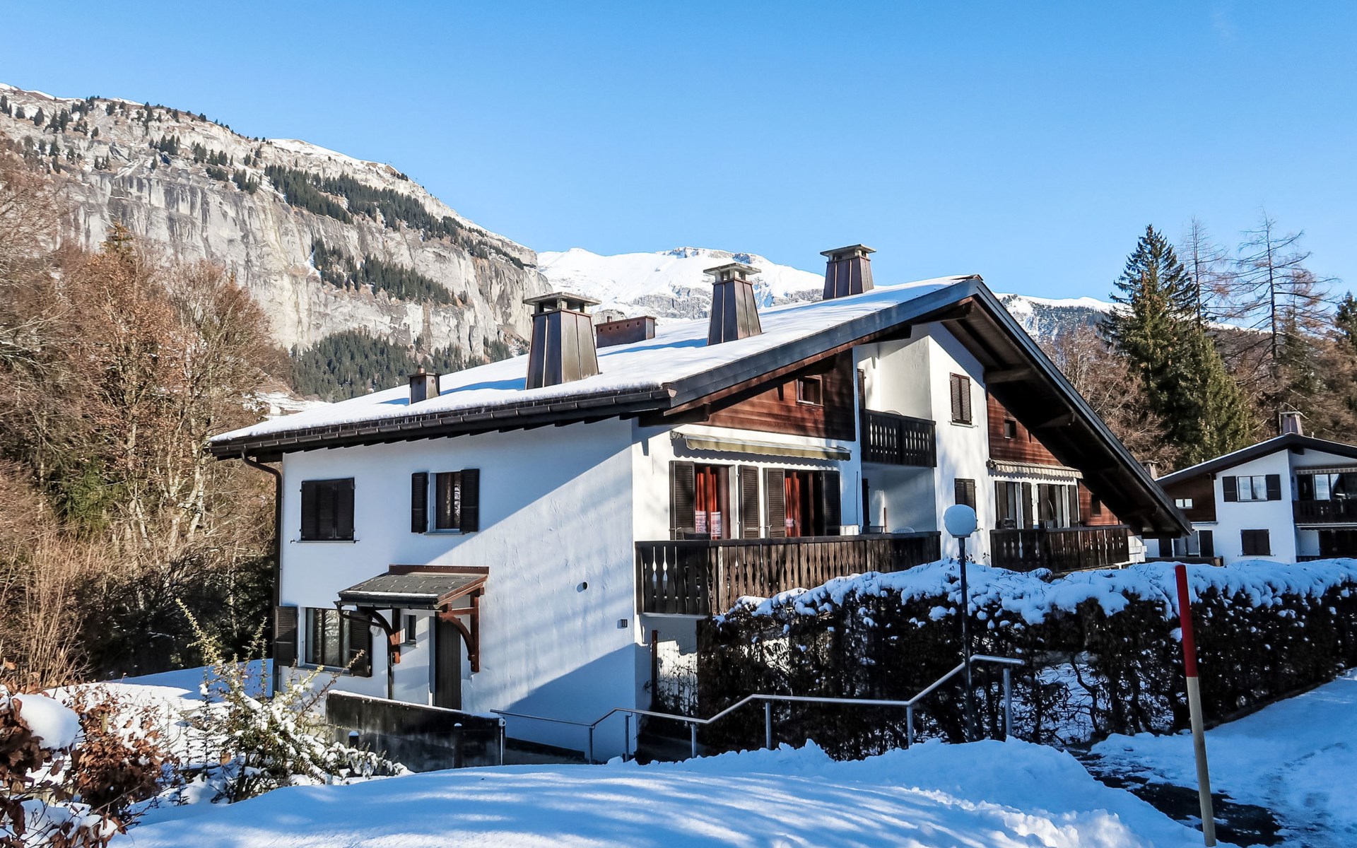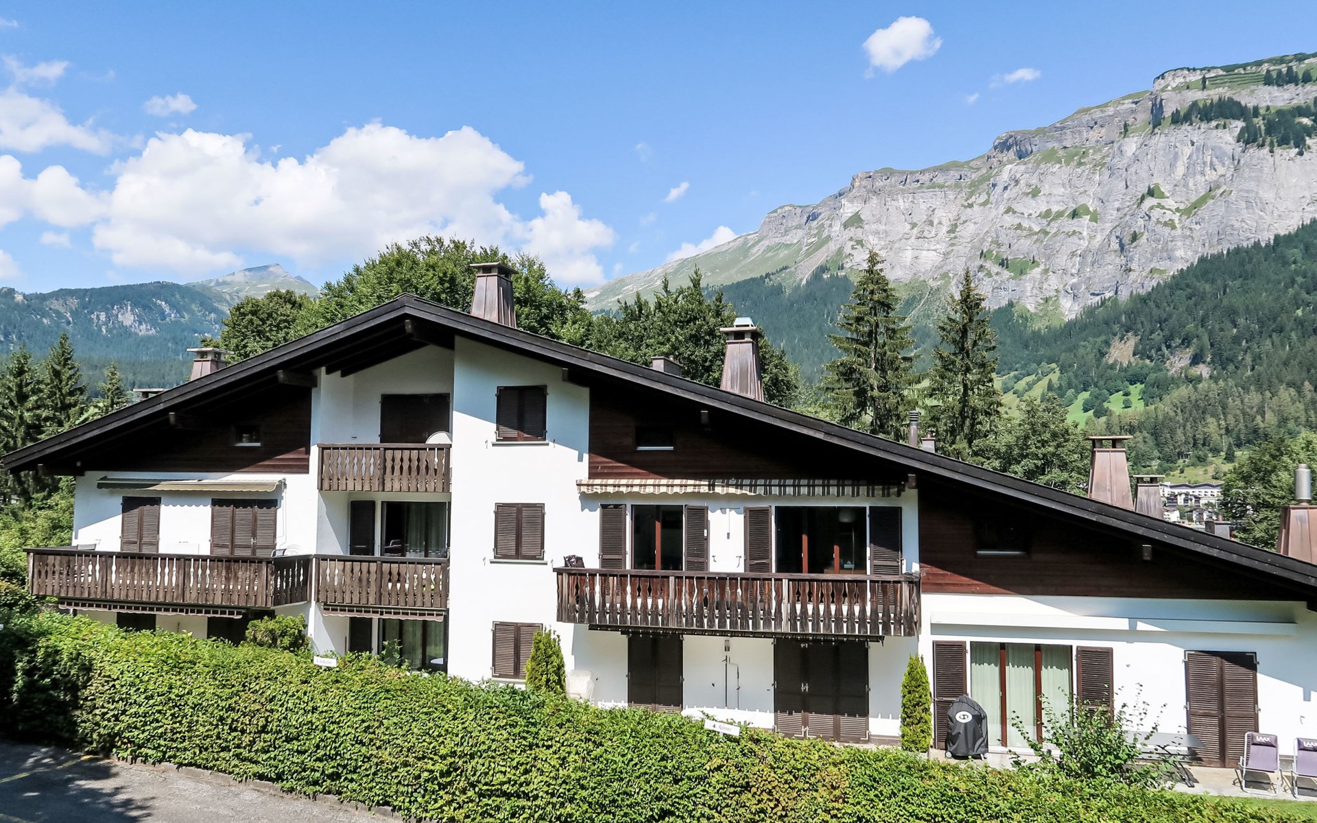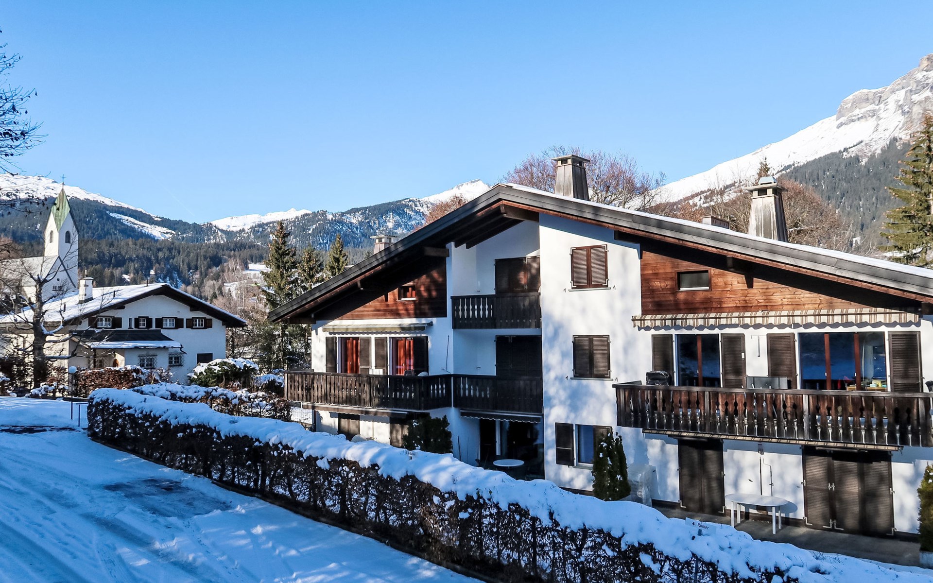 Gezellig, comfortabel appartementencomplex "Villa Waldpark", 1.000 m boven zeeniveau, van 3 verdiepingen. In de wijk Flims Waldhaus, aan de rand van de plaats, 1 km van het centrum, rustige, zonnige ligging, 1.5 km van het skigebied, aan een doodlopende weg, te midden van groen. Voor medegebruik: terrein, tuin, ligweide. In het huis: sauna (extra). Tafeltennis, speelkamer, tafelvoetbal, berging voor ski's, centrale verwarming. Toegangsweg tot aan het huis. Gemeenschappelijke garage bij het huis, openbare parkeerplaatsen 200 m. Levensmiddelenwinkel 800 m, restaurant 500 m, bushalte "Flims Waldhaus, Caumasee" 1 km, meer Caumasee 1 km. Golfterrein (9 holes) 8 km, kabelbaan 4 km, skilift 1.5 km, kabelbaan op 1.5 km, ski faciliteiten 1.5 km, skipisten 1.5 km, skiverhuur 1.5 km, skibushalte 400 m, skischool 1.5 km, rodelbaan 1.5 km, langlaufloipe 1.5 km, ijsbaan 1 km, kinderspeelplaats 400 m. Attracties in de buurt: Ruinaulta/Rheinschlucht 2 km. Bekende skigebieden kunnen gemakkelijk worden bereikt: Weisse Arena Flims/Laax 1.5 km. Bekende meren kunnen gemakkelijk worden bereikt: Caumasee 1 km, Crestasee 3 km. Wandelgebied Unesco Welterbe Sardona.