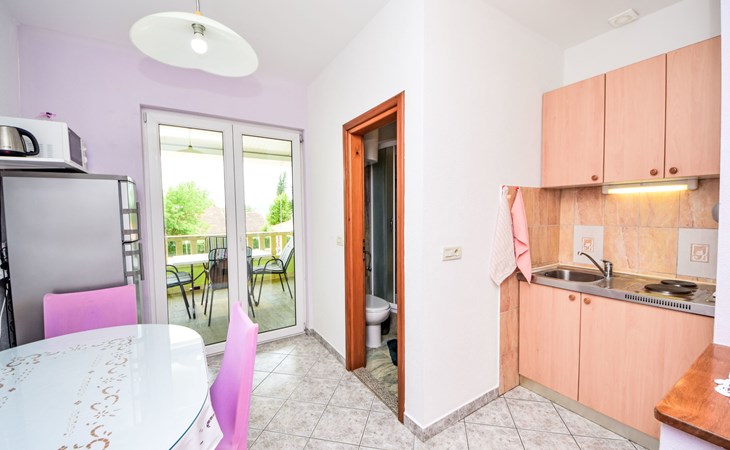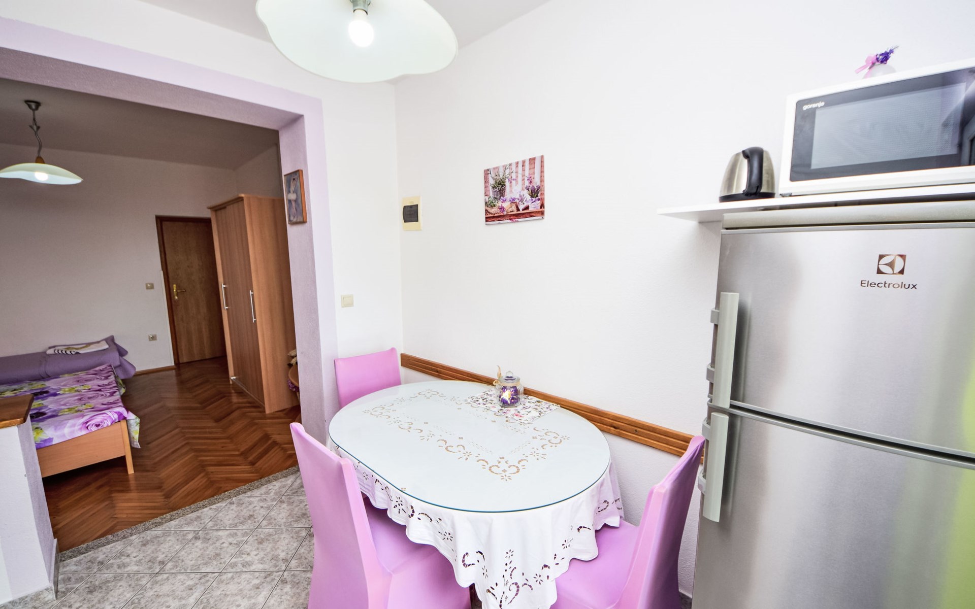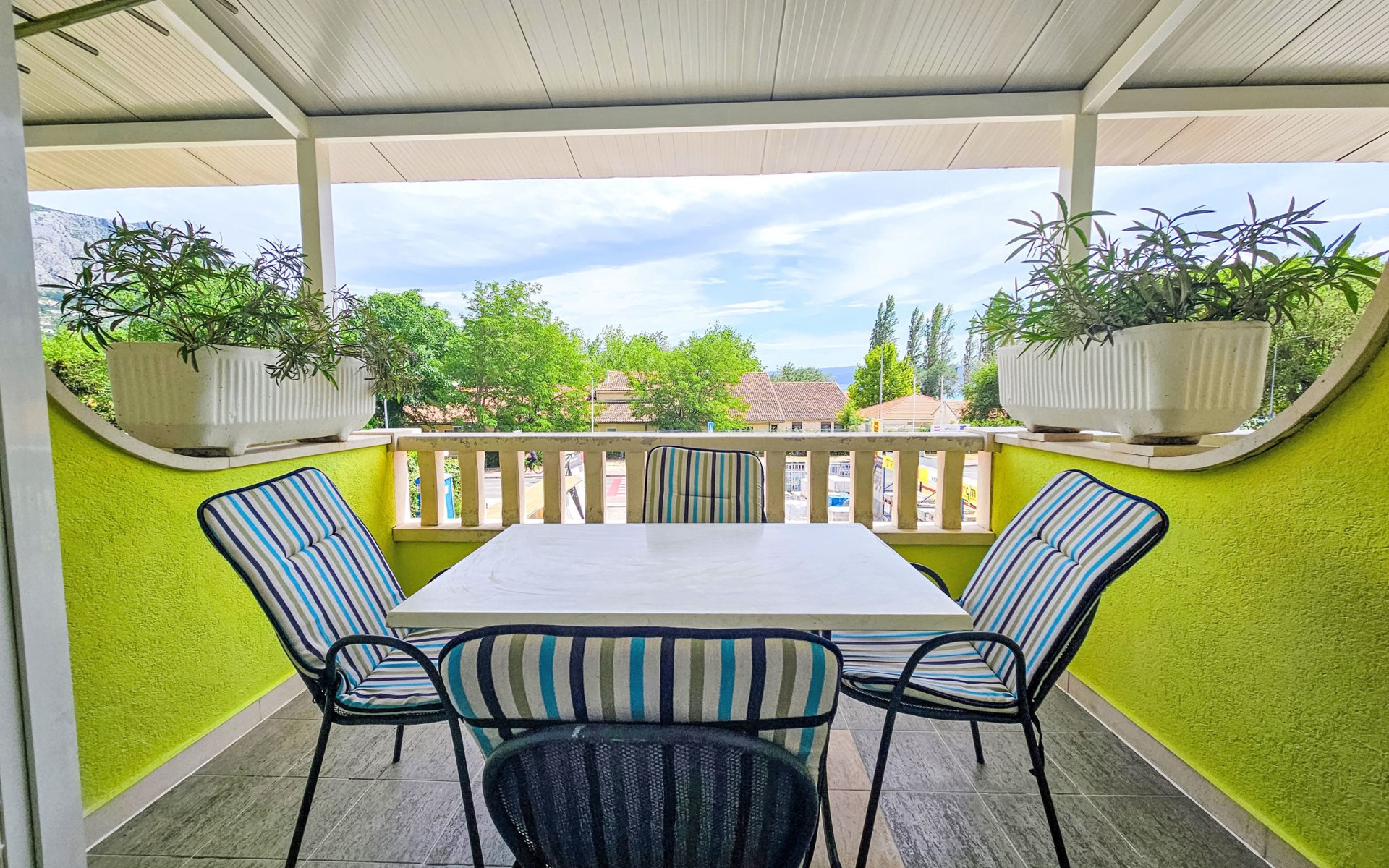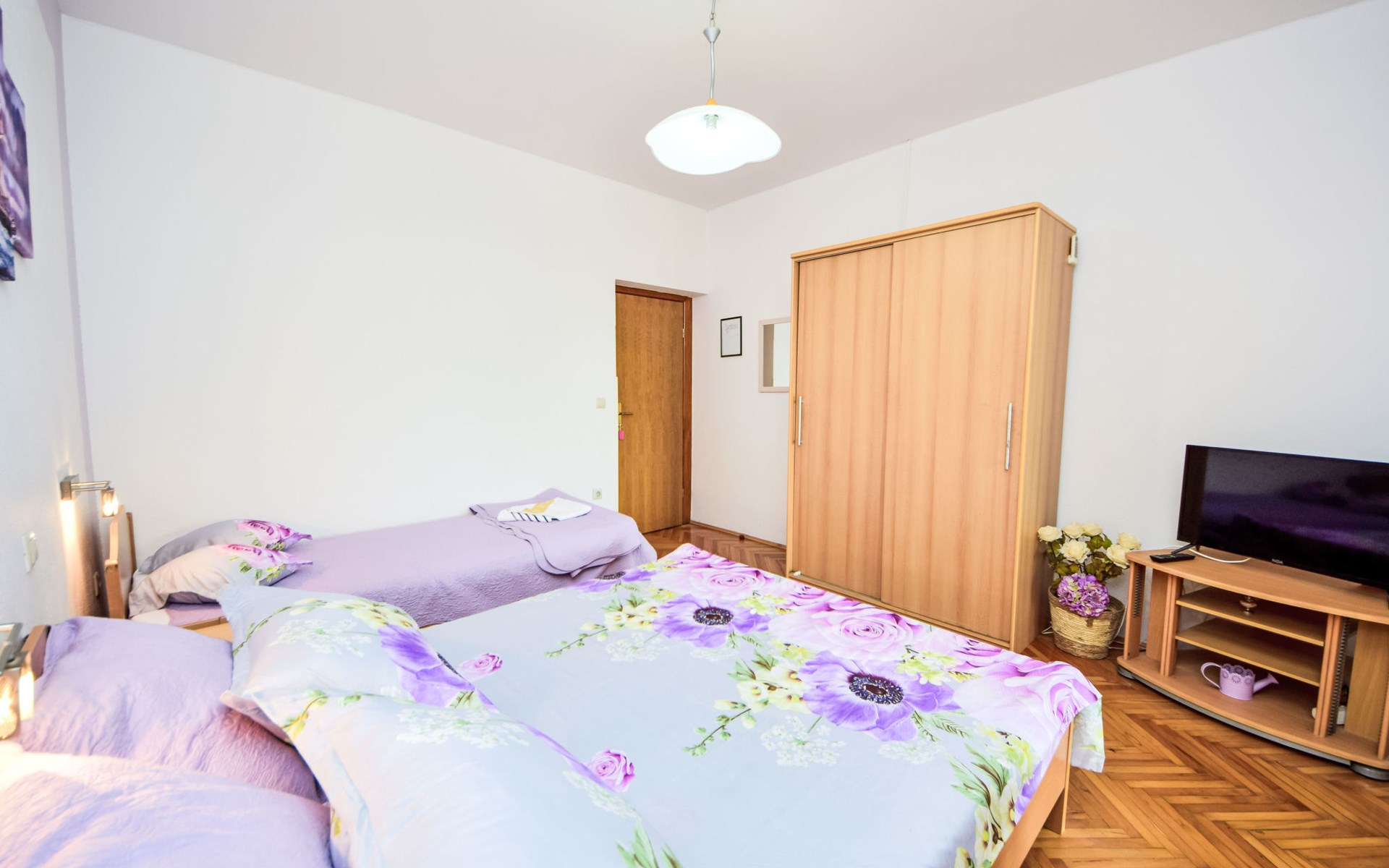 Flatgebouw "Dajak". 1.2 km van het centrum van Omiš, van zee, 300 m van het strand, aan een hoofdweg. Voor medegebruik: grill, parkeerplaats bij het huis op het terrein. Supermarkt 300 m, bushalte 55 m, zandstrand 300 m. Op aanvraag kan een transfer vanaf de luchthaven naar de vakantiewoning geregeld worden. De eigenaar woont in hetzelfde huis. Vliegveld 40 km van het huis.