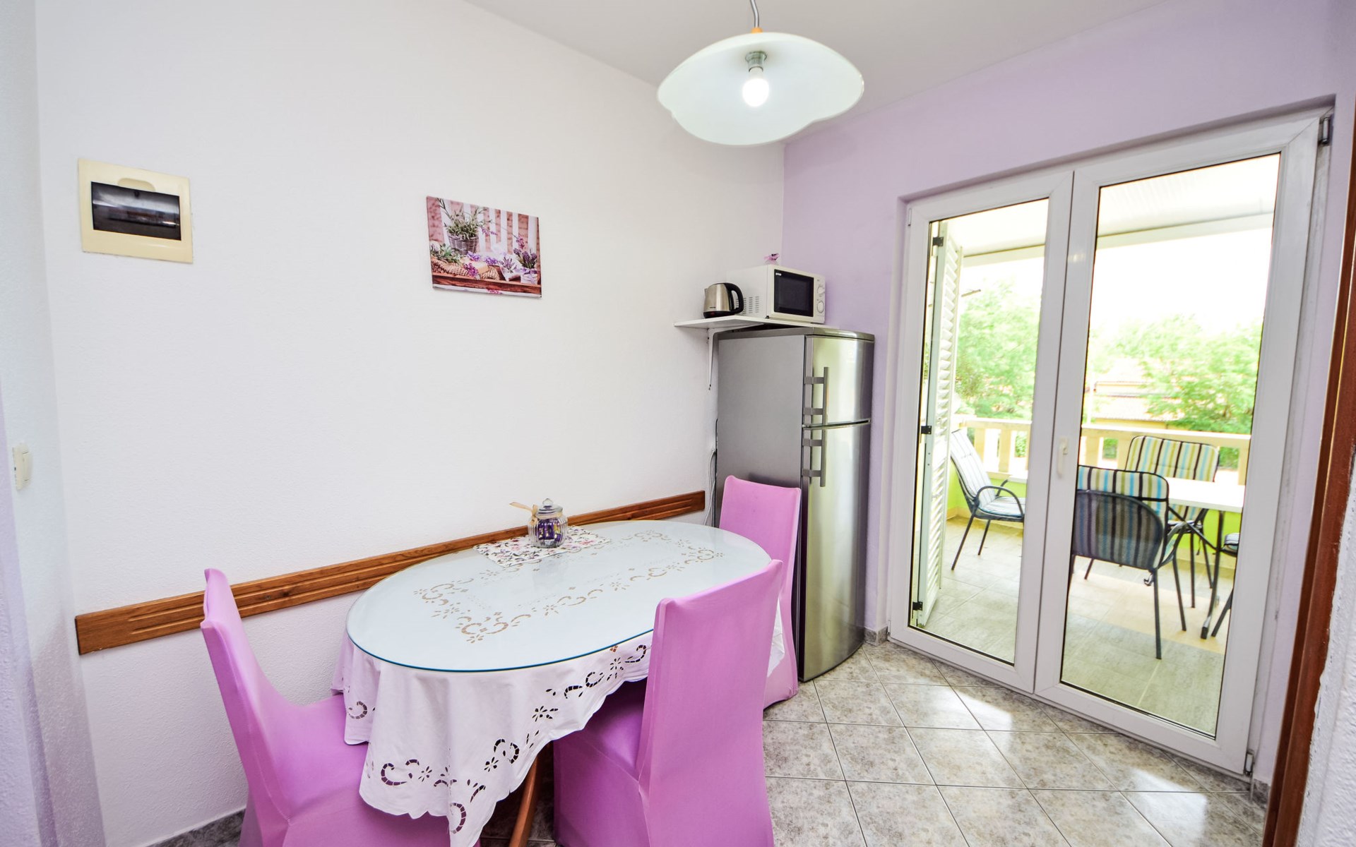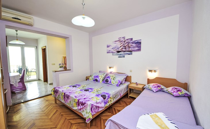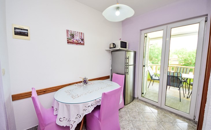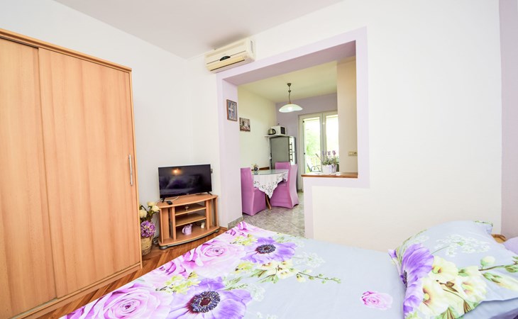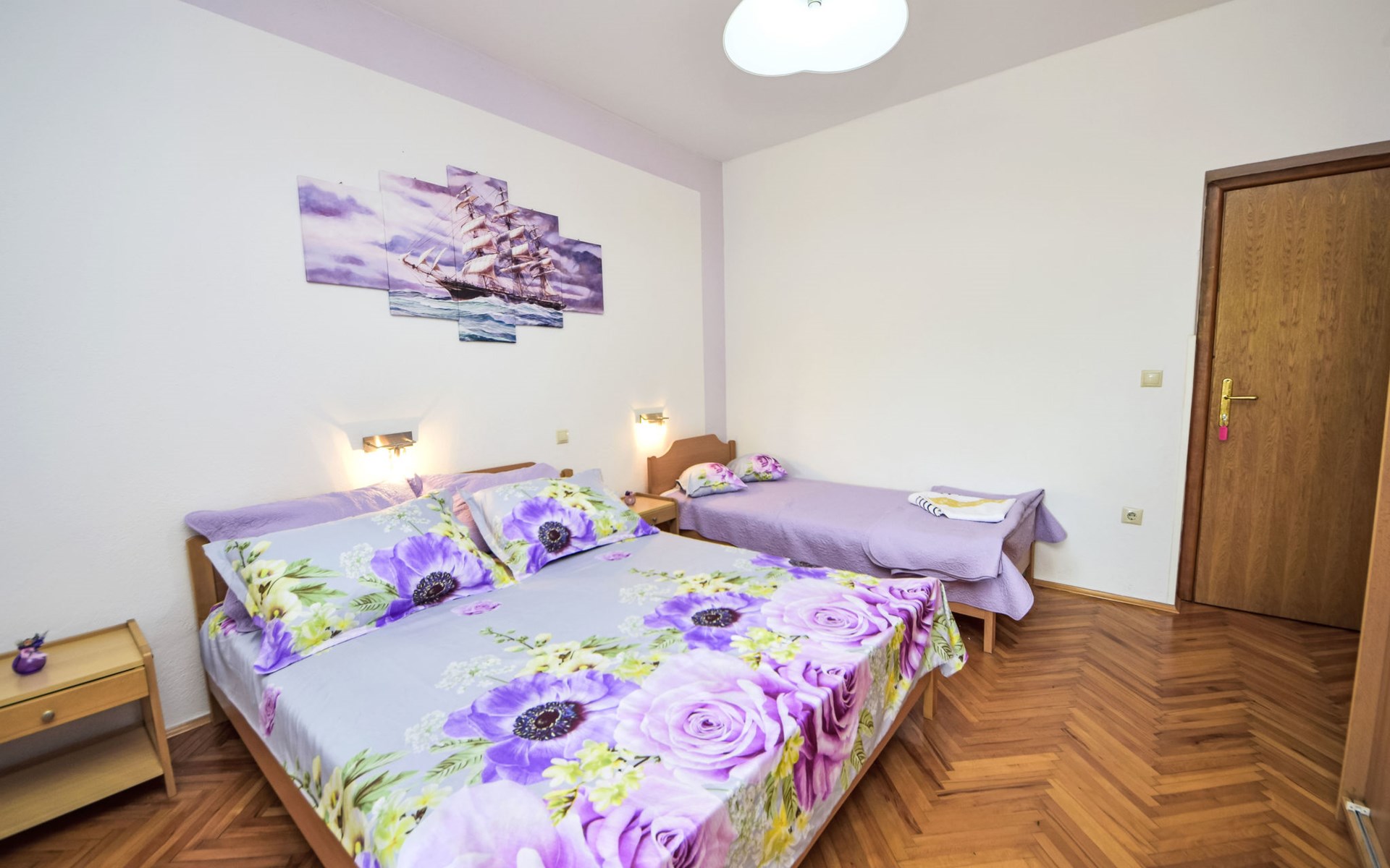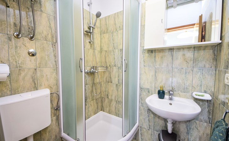 Flatgebouw "Dajak". 1.2 km van het centrum van Omiš, van zee, 300 m van het strand, aan een hoofdweg. Voor medegebruik: grill, parkeerplaats bij het huis op het terrein. Supermarkt 300 m, bushalte 55 m, zandstrand 300 m. Op aanvraag kan een transfer vanaf de luchthaven naar de vakantiewoning geregeld worden. De eigenaar woont in hetzelfde huis. Vliegveld 40 km van het huis.