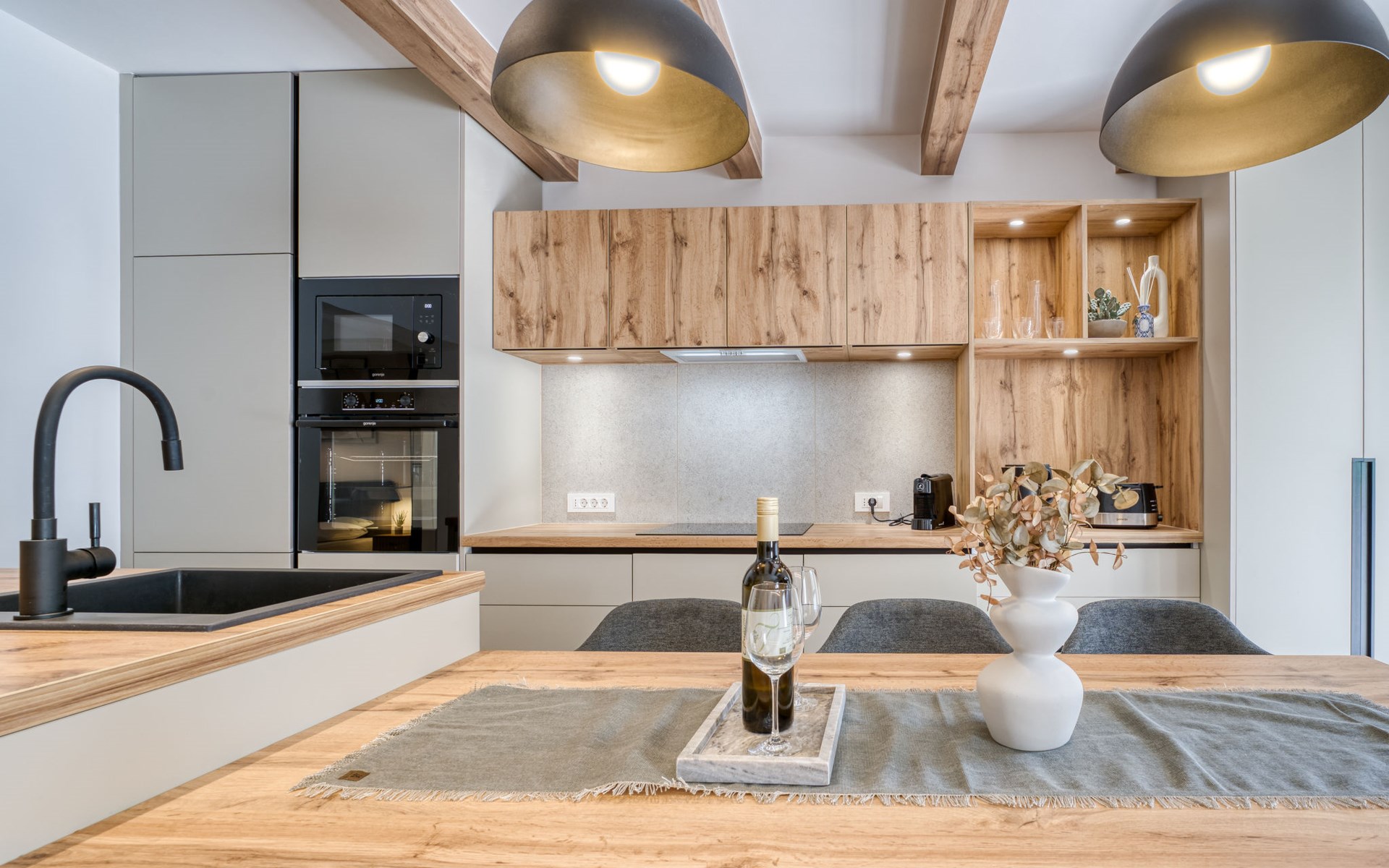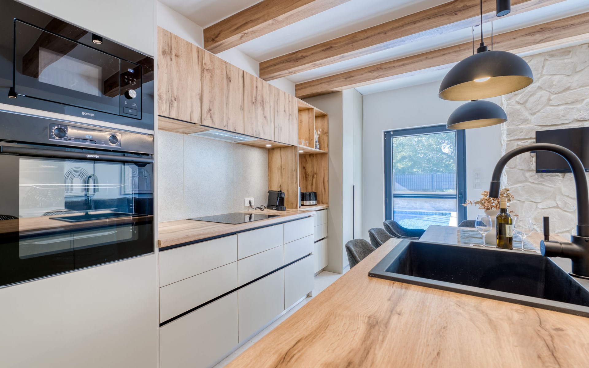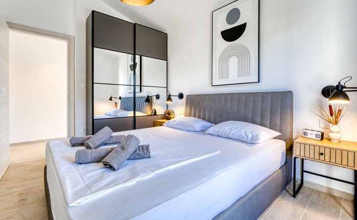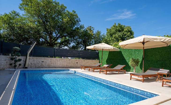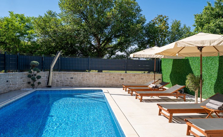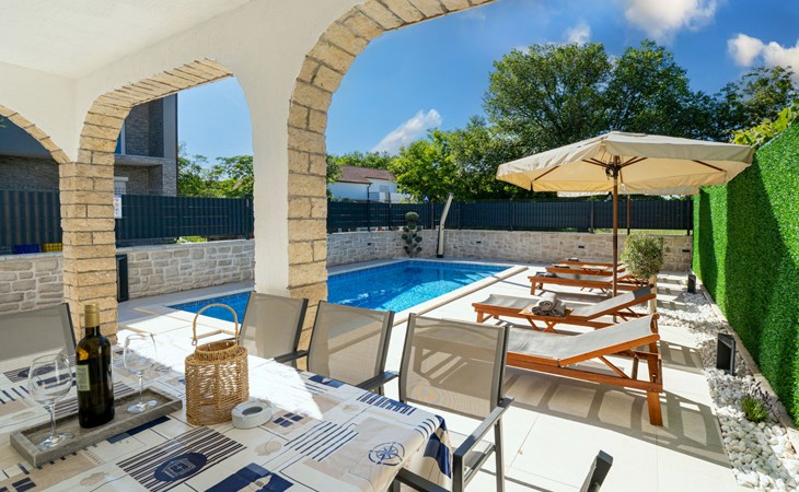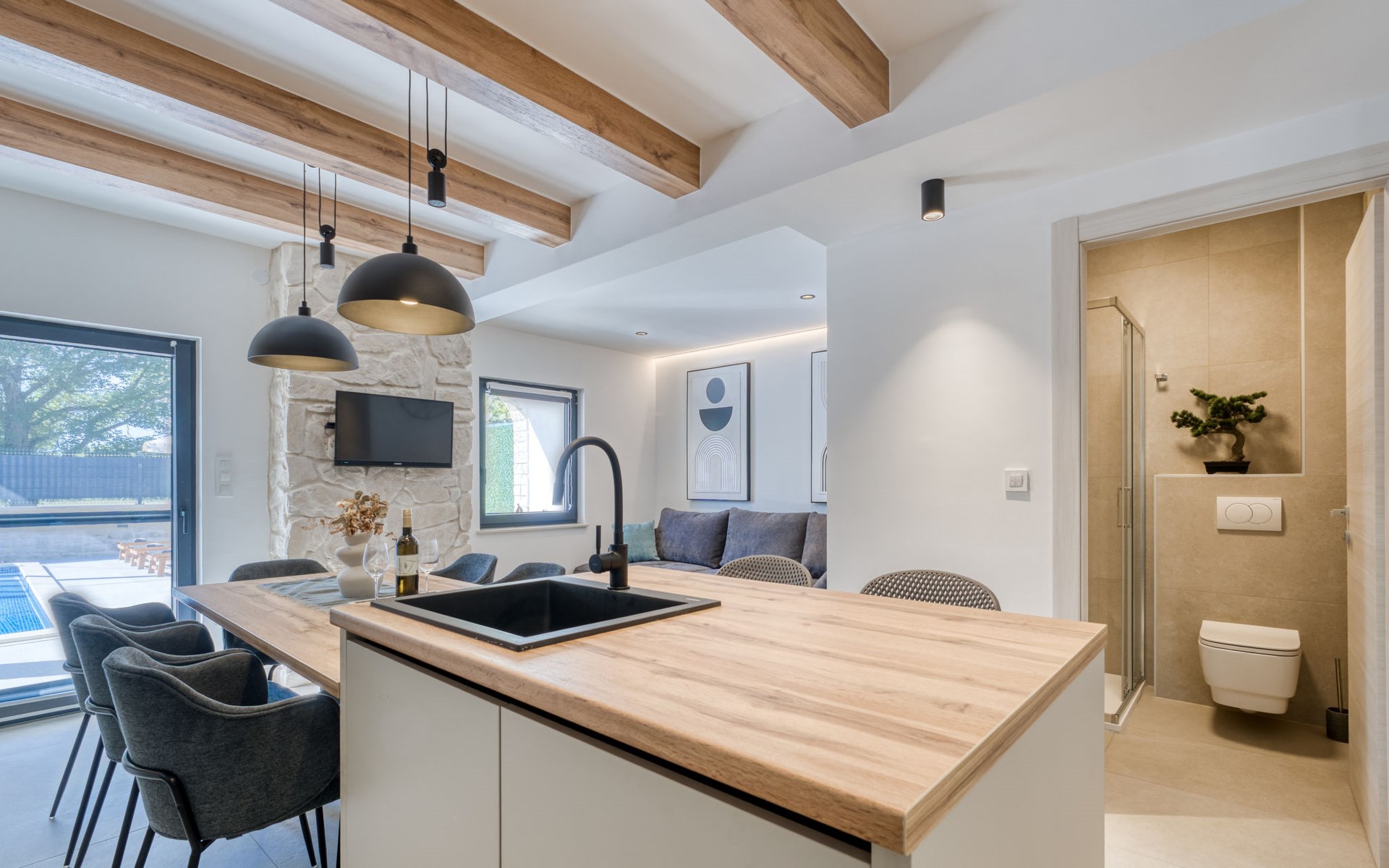 Twee onder één kap woning "Domagoj". In het gehucht Sveti Anton, 2.5 km van het centrum van Malinska, 11 km van het centrum van Krk, 20.5 km van het centrum van Vrbnik, 1.8 km van zee. Voor alleengebruik: terrein 200 m2 (omheind) met bomen, openluchtzwembad verwarmd (7 x 3 m, 24 m2, 120 - 150 cm diepte, seizoensgebonden beschikbaarheid: 15.Mrt. - 15.Nov.) met zout-elektrolyse. Buitendouche, onderhoud zwembad door de eigenaar/tuinman. In het huis: wasmachine (voor medegebruik, extra). Parkeerplaats (voor 2 auto's) op het terrein. Winkel 1 km, bushalte 350 m, kiezelstrand 1.8 km. De eigenaar woont in hetzelfde huis. Vliegveld 17 km van het huis.