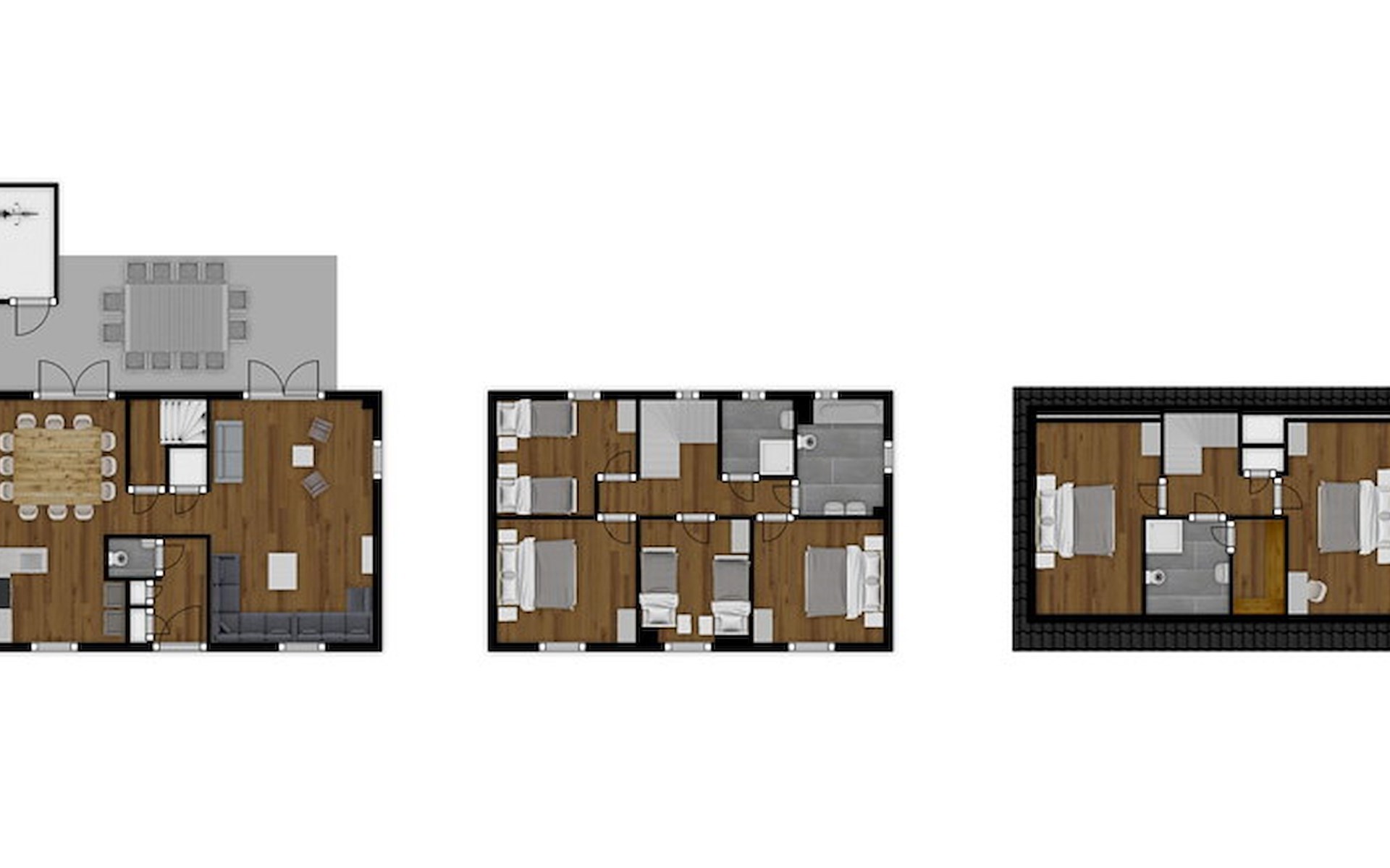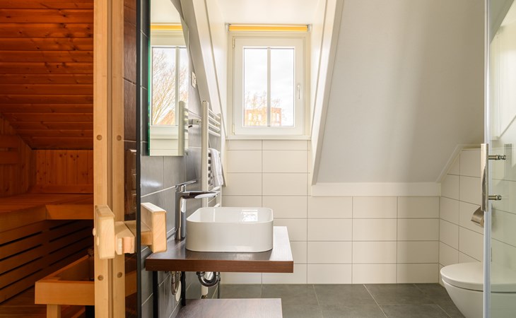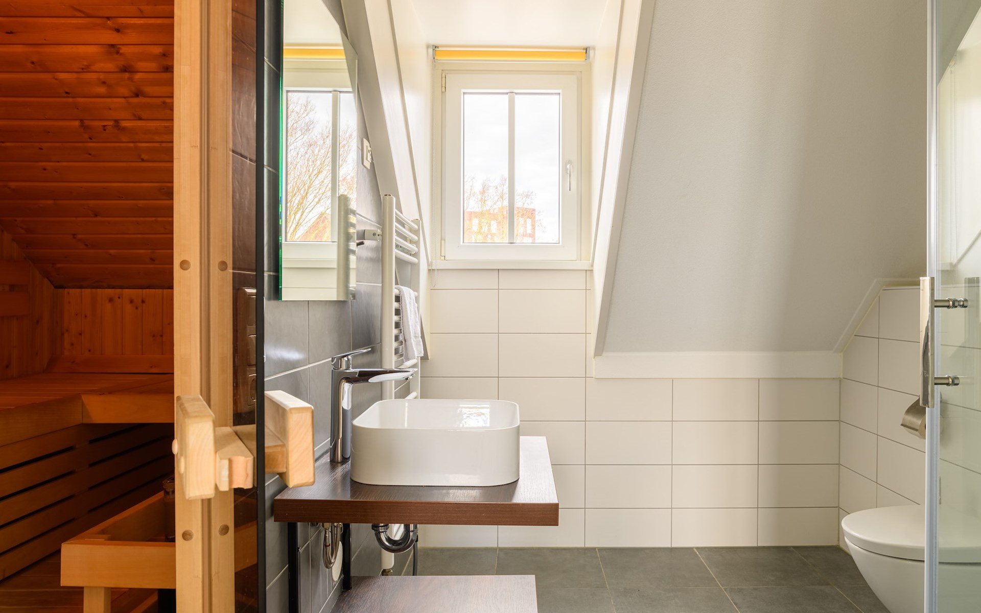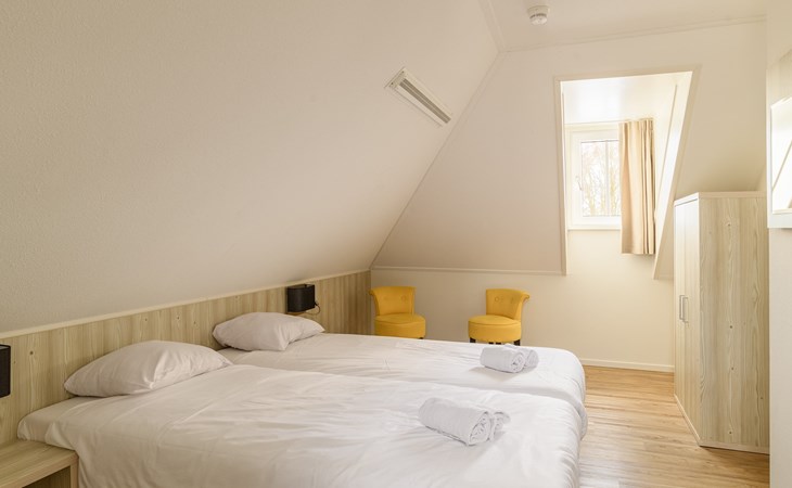 Je hebt de beschikking over 6 slaapkamers met 2 éénpersoonsbedden. Vier slaapkamers bevinden zich op de eerste verdieping en twee slaapkamers op de tweede verdieping. Er zijn in totaal 3 badkamers waarvan één met douche en wastafel, één met bubbelbad, dubbele wastafel en toilet en één met een sauna, douche, wastafel en toilet. Er is op de begane grond ook een separaat toilet aanwezig.