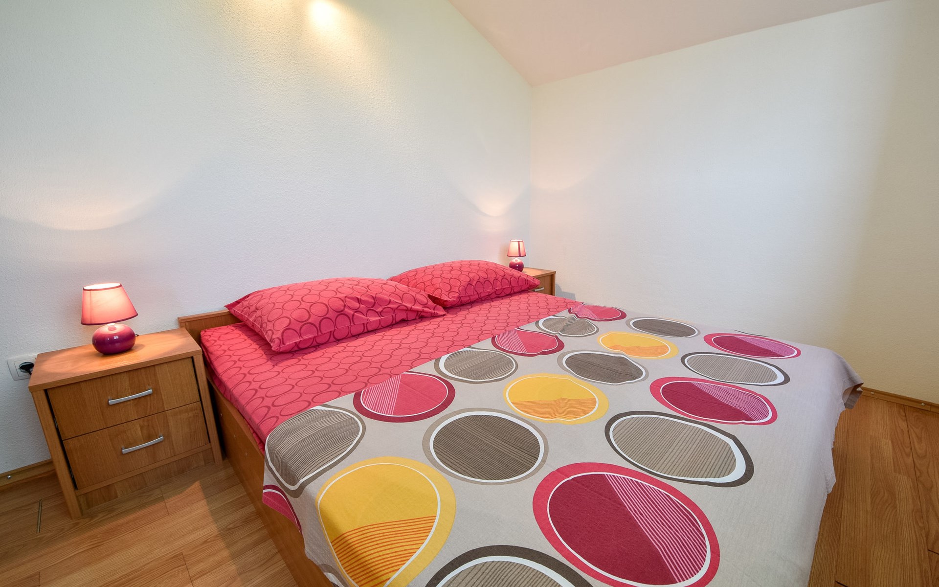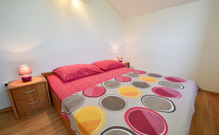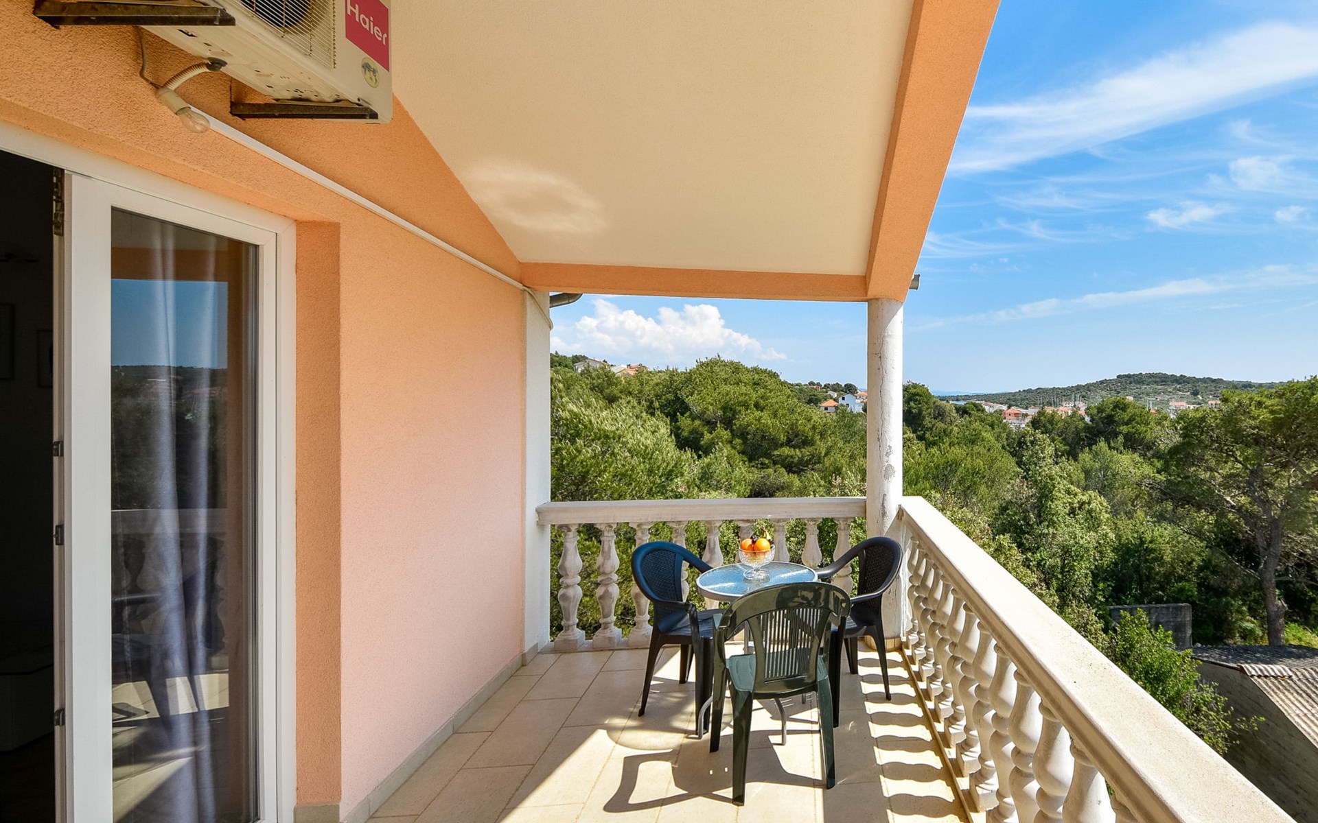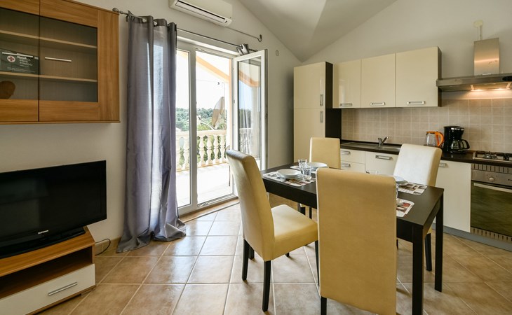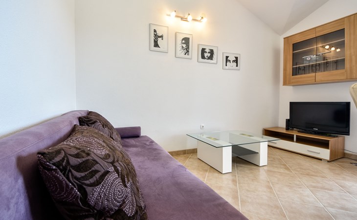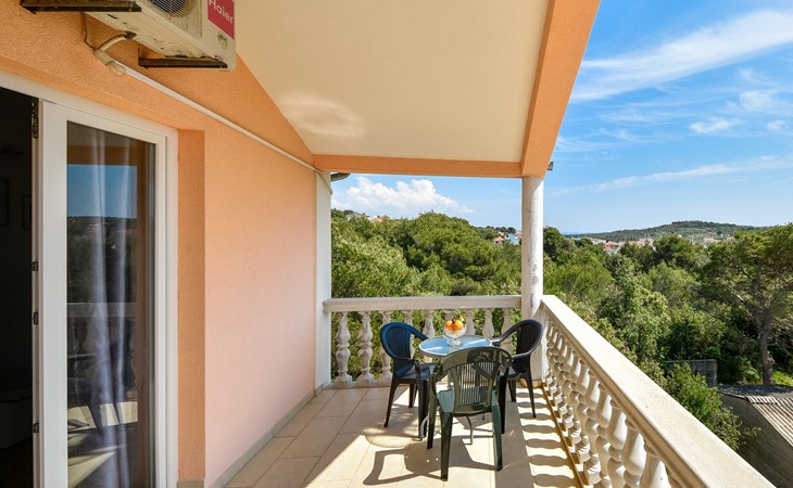 Appartementencomplex "Milin". 500 m van het centrum van Jezera, 2.4 km van het centrum van Tisno, rustige, zonnige, verhoogde ligging, 600 m van zee, 850 m van het strand. Voor medegebruik: terrein 2.000 m2. Barbecue. In het huis: internetaansluiting. Toegangsweg tot aan het huis (50 m onverharde weg). Parkeerplaats bij het huis op het terrein. Winkel 200 m, restaurant 500 m, bushalte 8.5 km, kiezelstrand 850 m, duikschool 800 m. Manege 2 km. De eigenaar accepteert geen jeugdgroepen. De omgeving is gevoelig voor geluidsoverlast. Gelieve geen lawaai te maken en de rust te bewaren.
